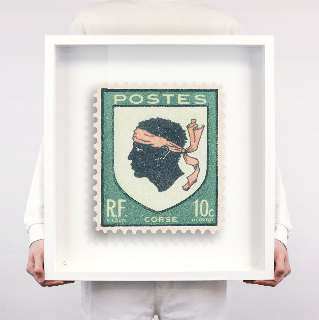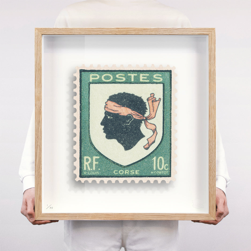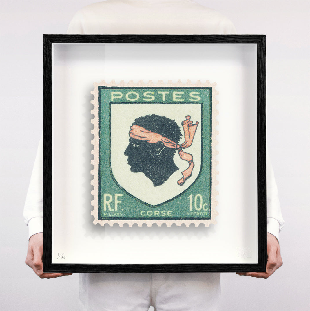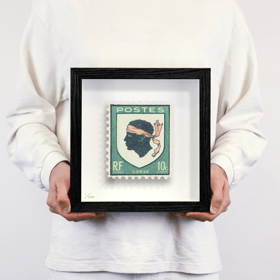 Each artwork by Guy Gee has been digitally reimagined from an original postage stamp. Printed on archival mount board, the artwork is then float mounted and editioned. Finally the stamp is housed in one of the studio’s bespoke made box frames by the team.
