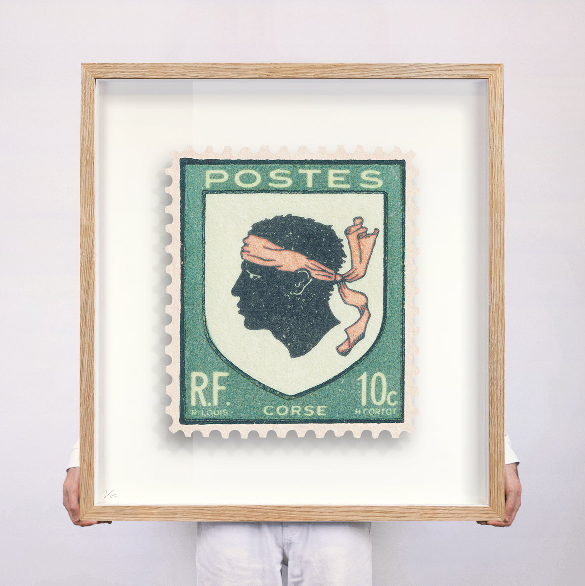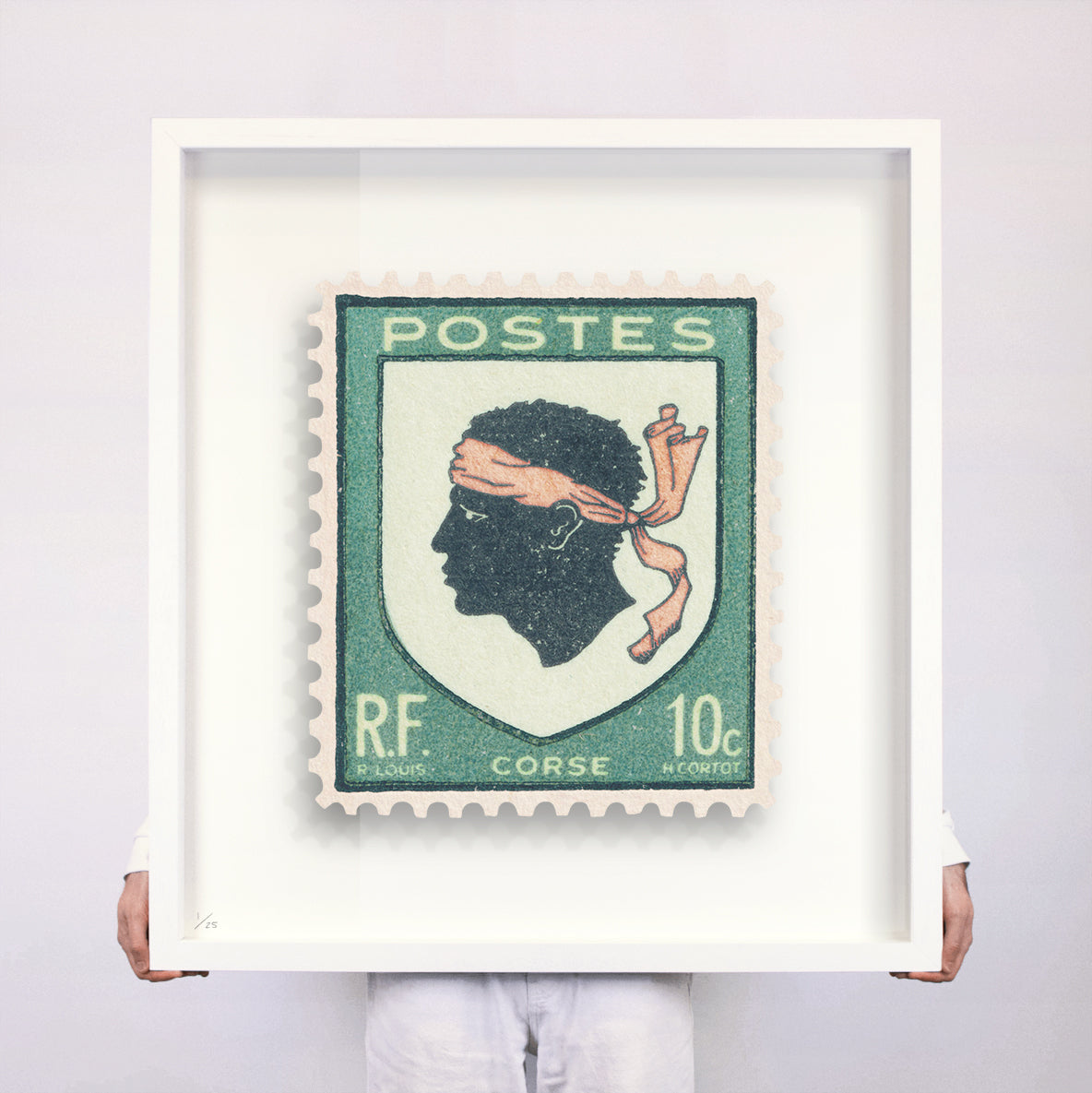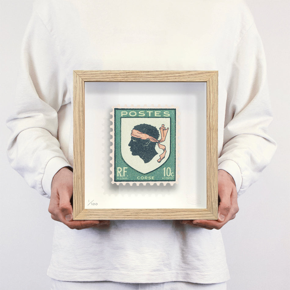 Each artwork by Guy Gee has been digitally reimagined from an original postage stamp. Printed on archival mount board, the artwork is then float mounted and editioned. Finally the stamp is housed in one of the studio’s bespoke made box frames by the team.