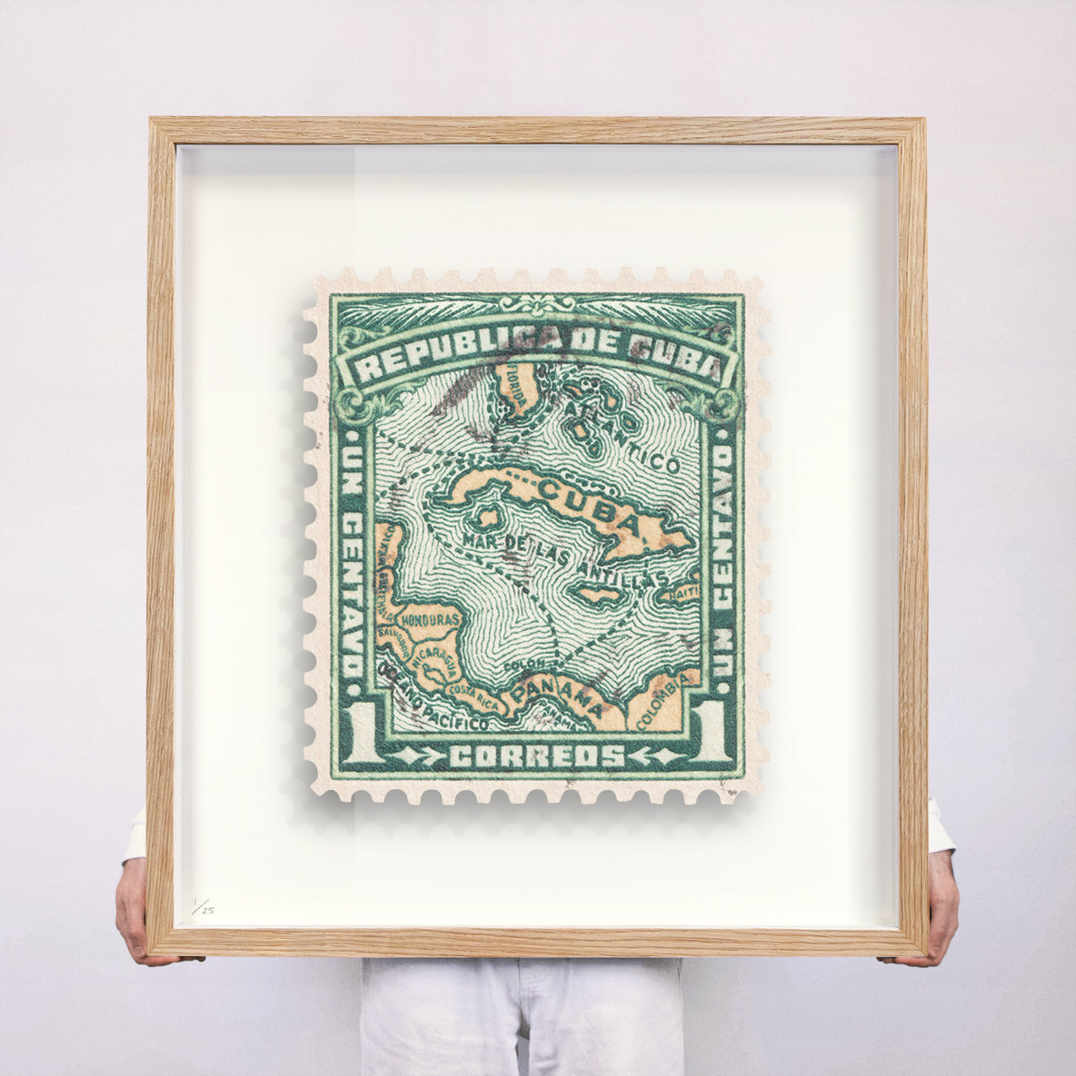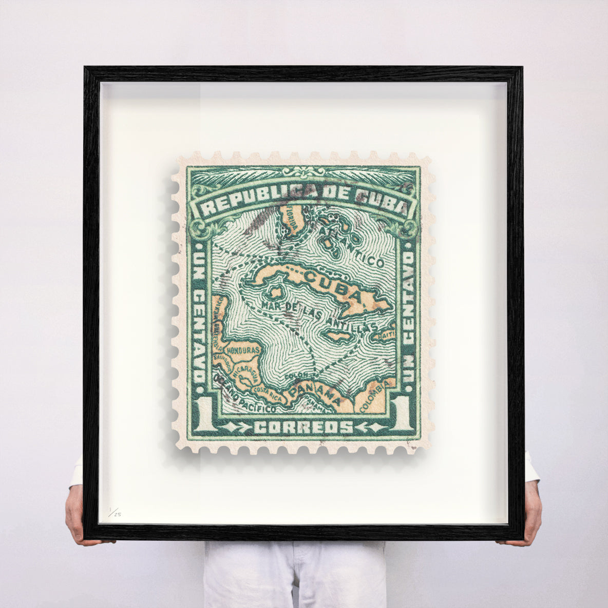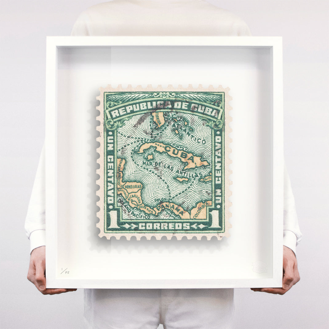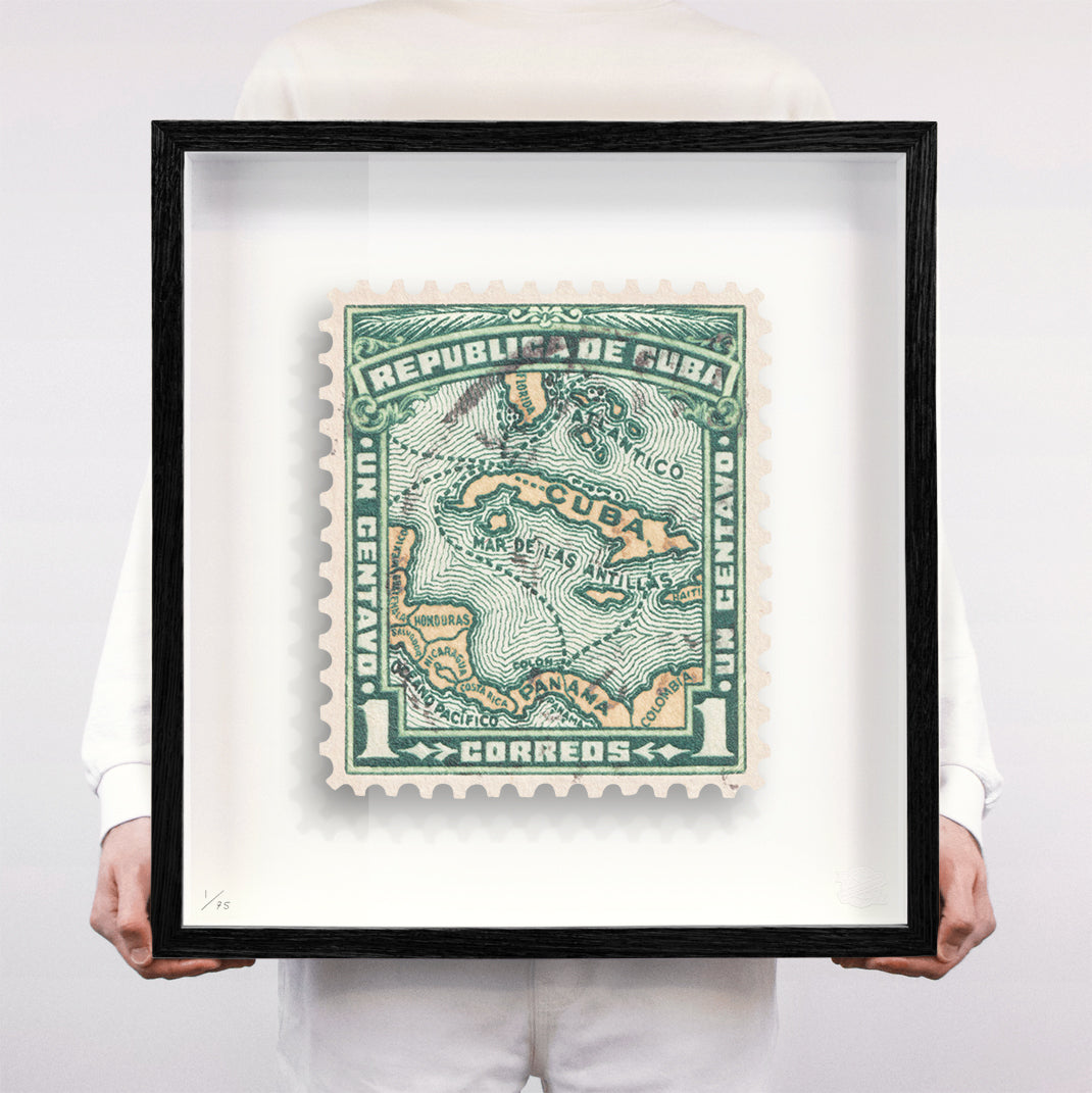 Each artwork by Guy Gee has been digitally reimagined from an original postage stamp. Printed on archival mount board, the artwork is then float mounted and editioned. Finally the stamp is housed in one of the studio’s bespoke made box frames by the team.