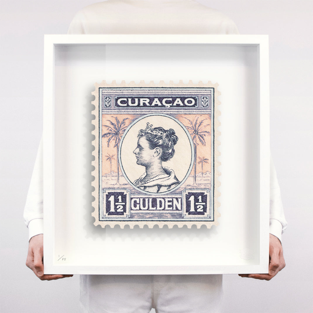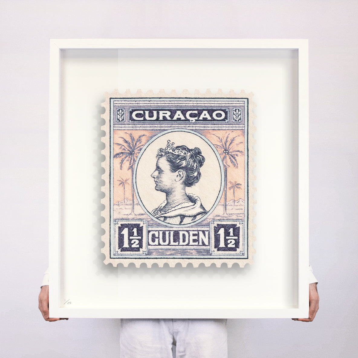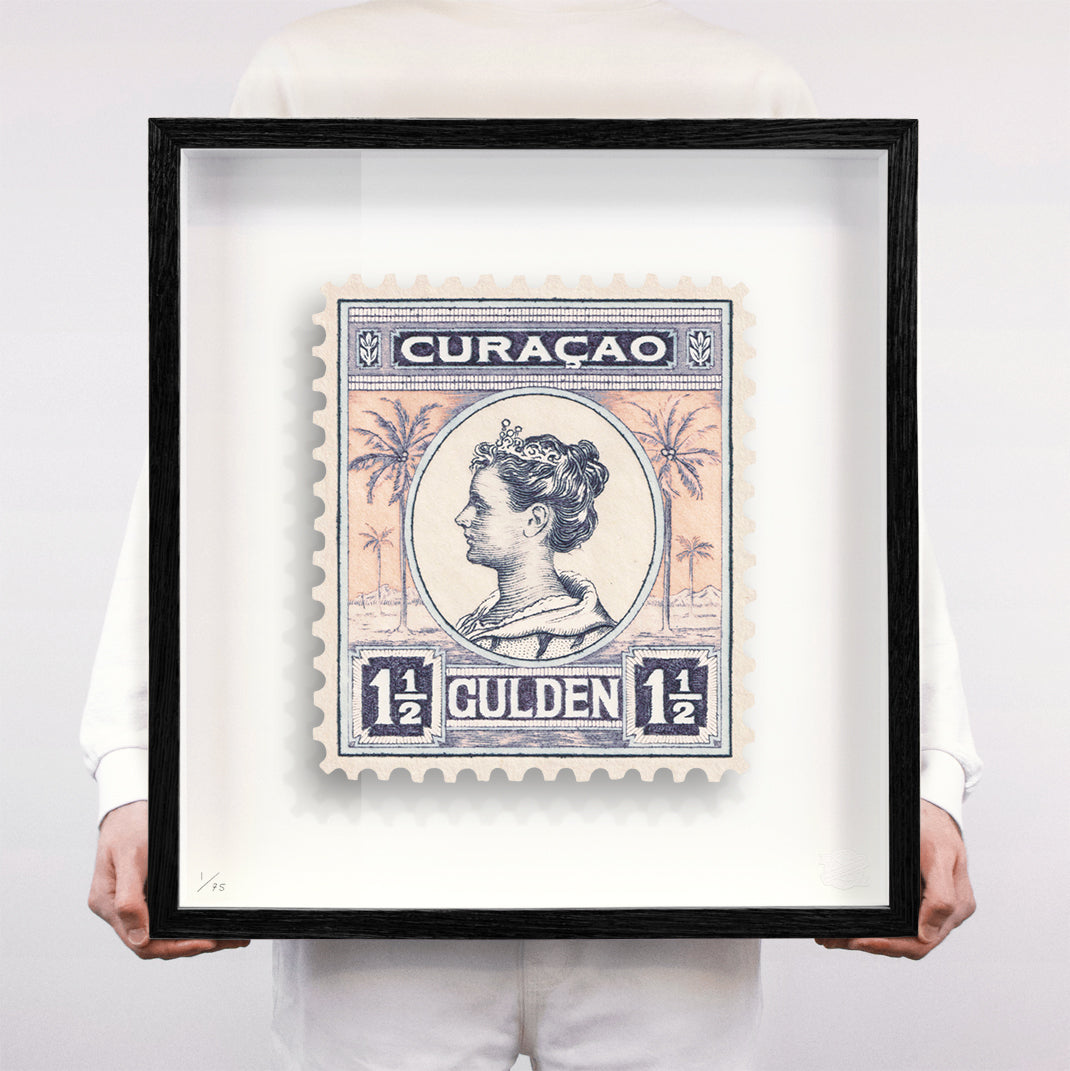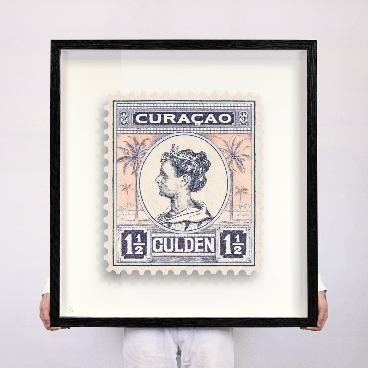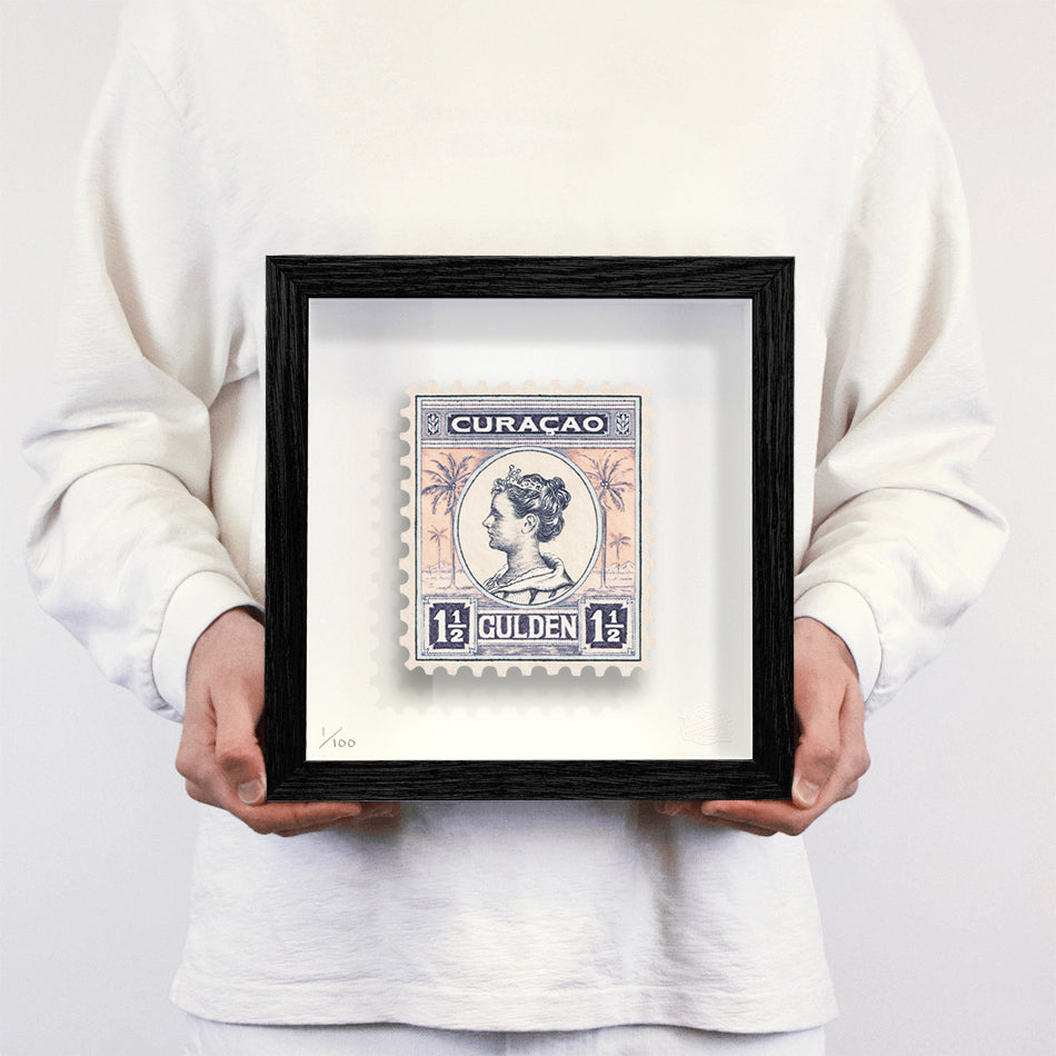 Each artwork by Guy Gee has been digitally reimagined from an original postage stamp. Printed on archival mount board, the artwork is then float mounted and editioned. Finally the stamp is housed in one of the studio’s bespoke made box frames by the team.