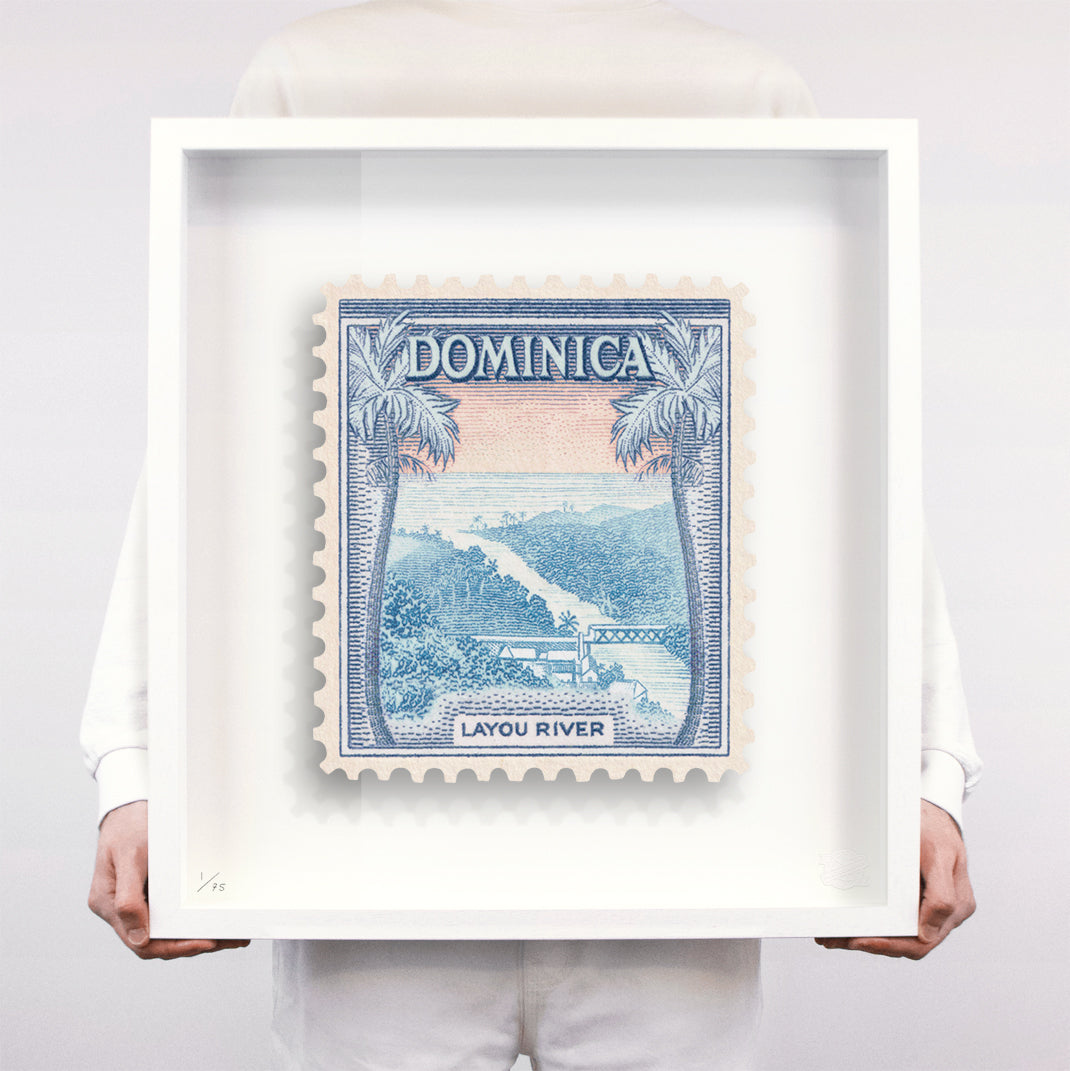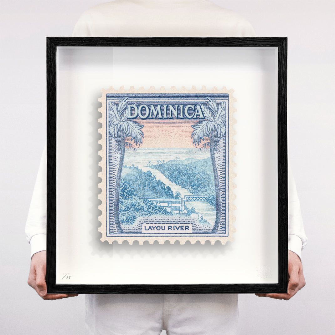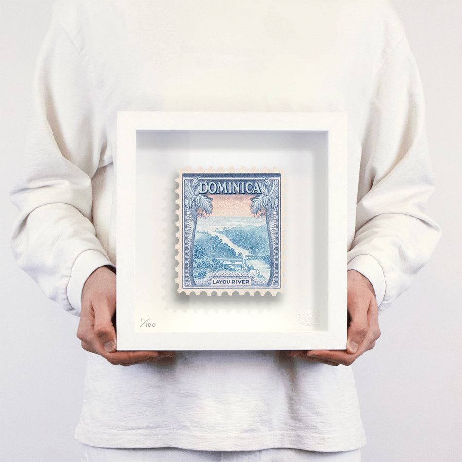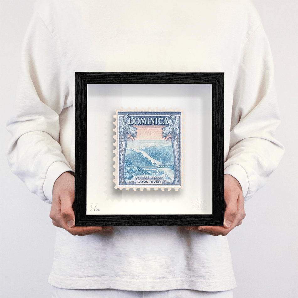Each artwork by Guy Gee has been digitally reimagined from an original postage stamp. Printed on archival mount board, the artwork is then float mounted and editioned. Finally the stamp is housed in one of the studio’s bespoke made box frames by the team.