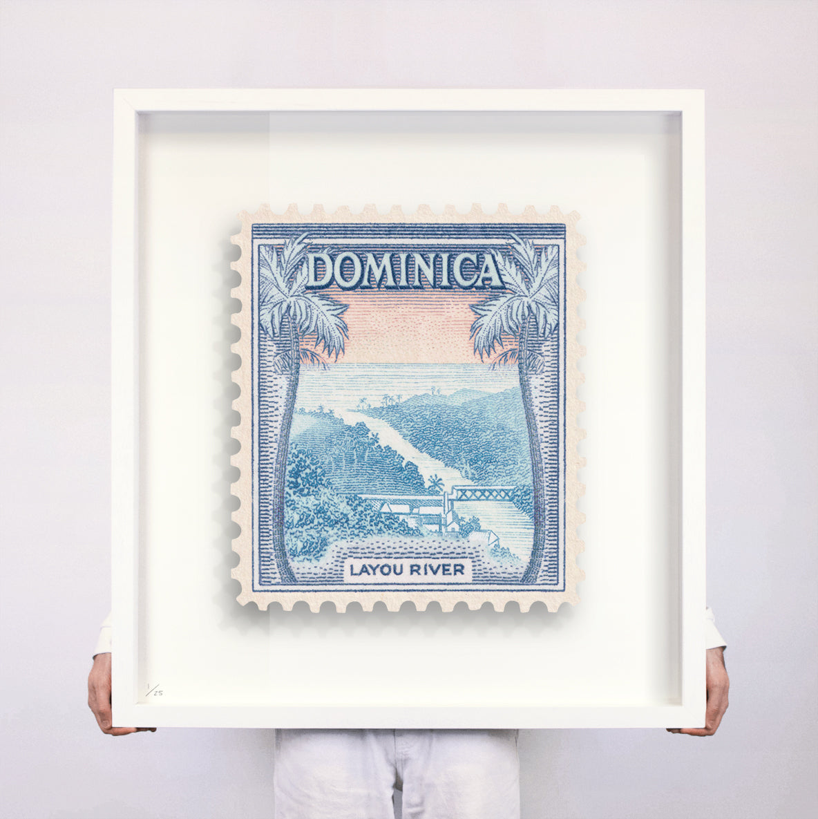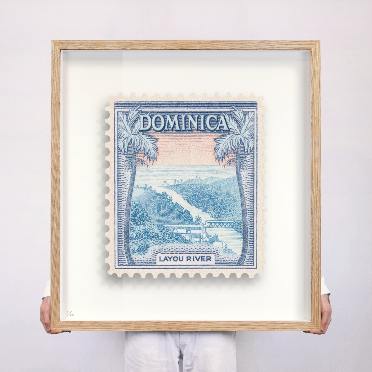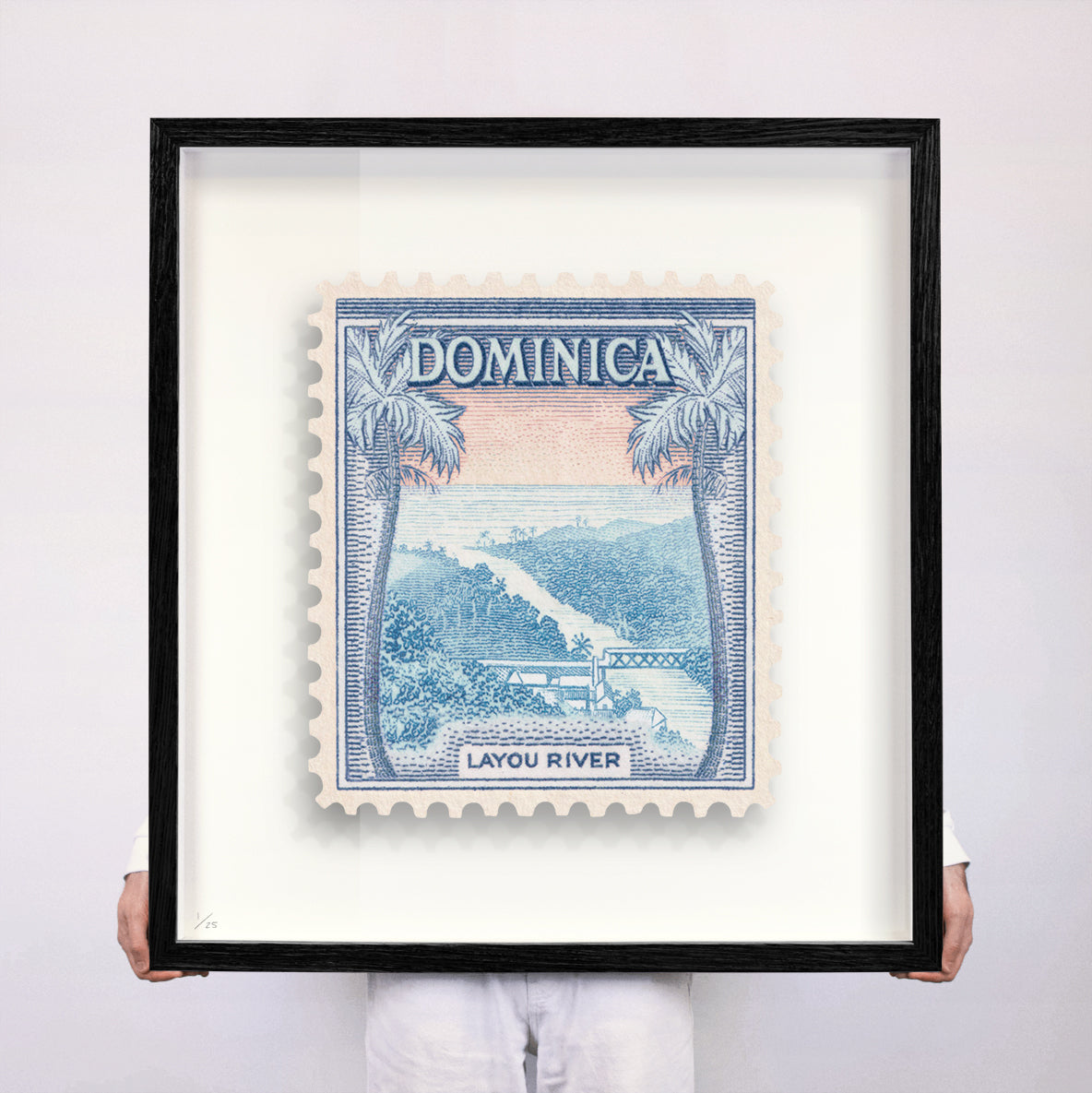 Each artwork by Guy Gee has been digitally reimagined from an original postage stamp. Printed on archival mount board, the artwork is then float mounted and editioned. Finally the stamp is housed in one of the studio’s bespoke made box frames by the team.