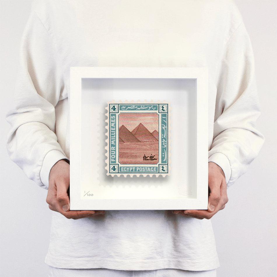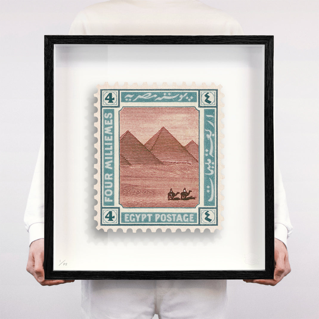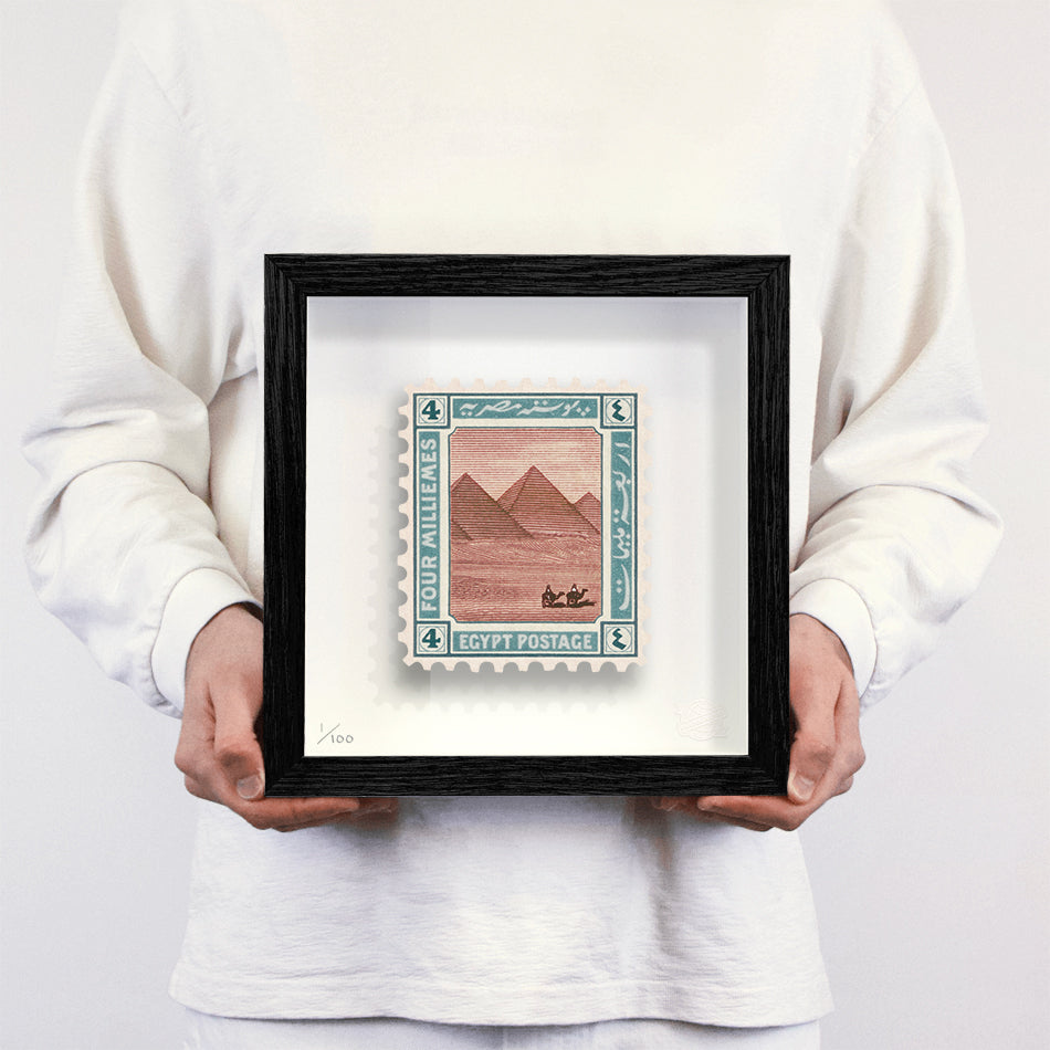Each artwork by Guy Gee has been digitally reimagined from an original postage stamp. Printed on archival mount board, the artwork is then float-mounted and editioned. Finally the stamp is housed in a bespoke box frame, handcrafted by the studio's team.