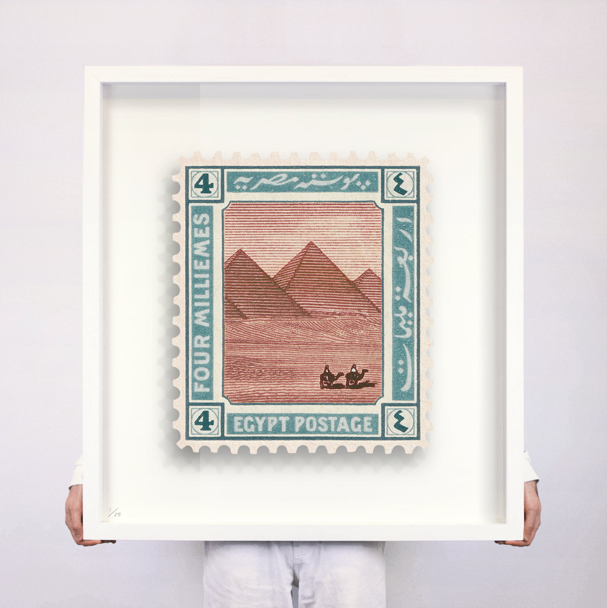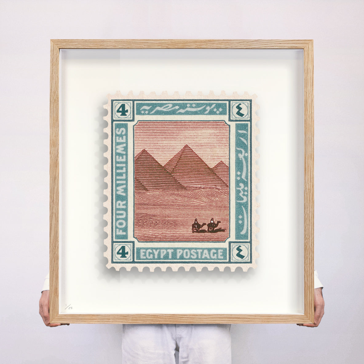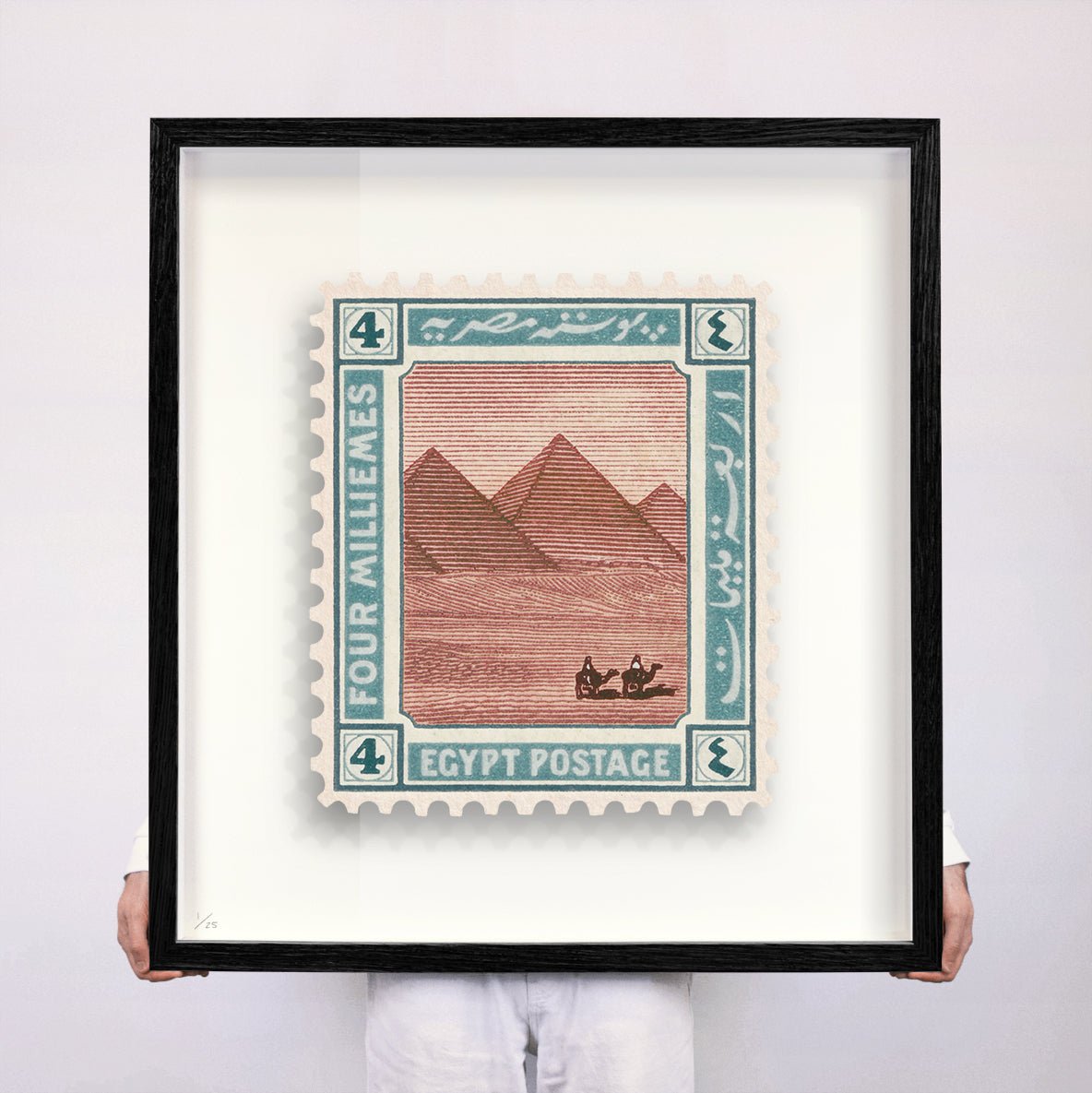 Each artwork by Guy Gee has been digitally reimagined from an original postage stamp. Printed on archival mount board, the artwork is then float-mounted and editioned. Finally the stamp is housed in a bespoke box frame, handcrafted by the studio's team.