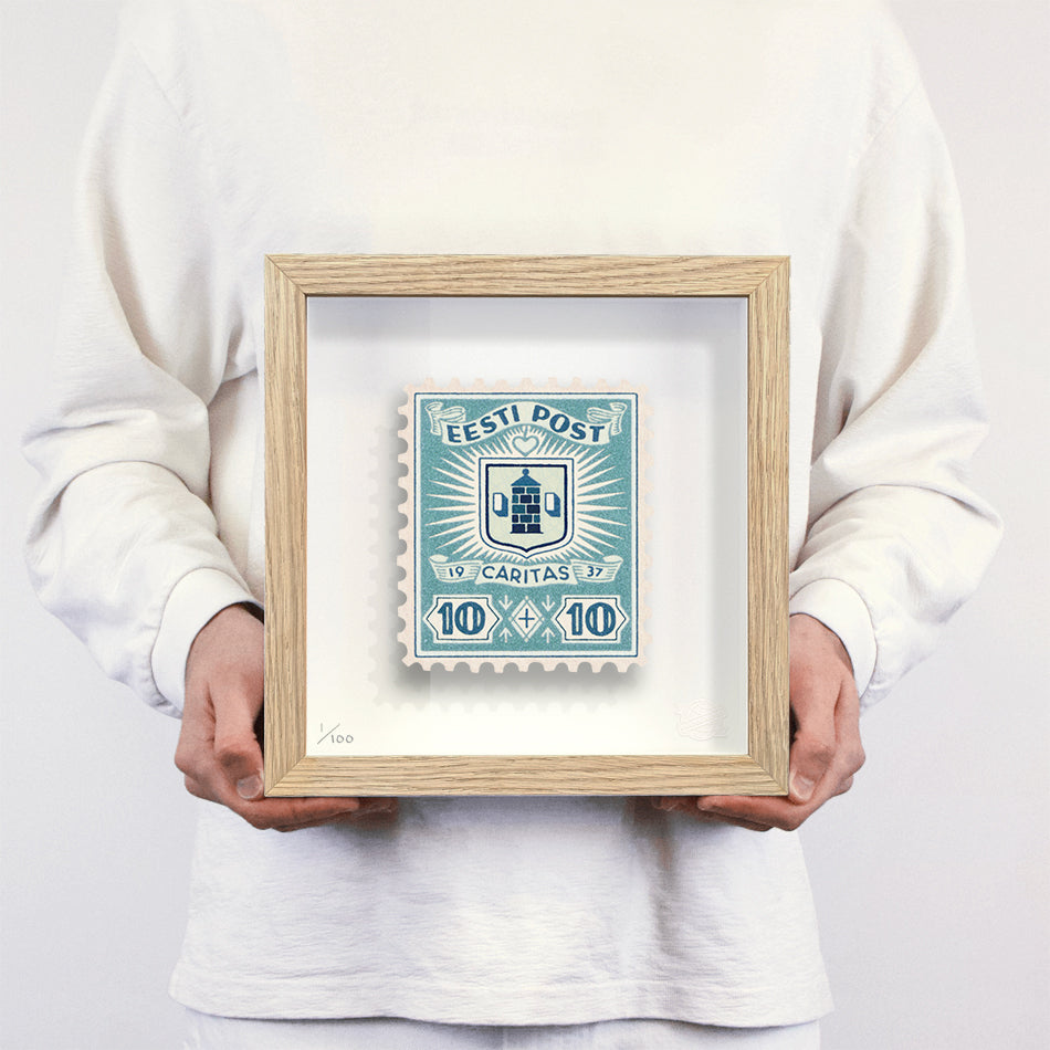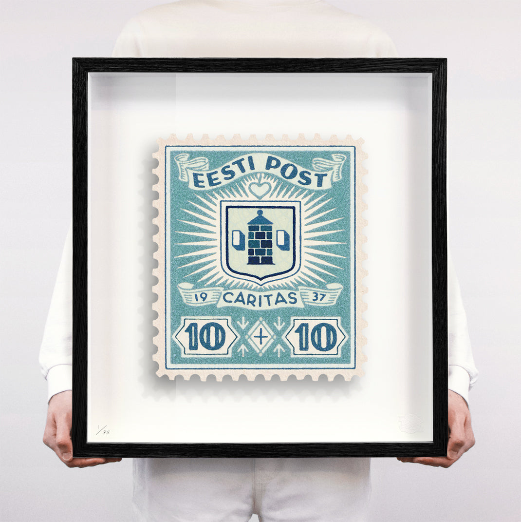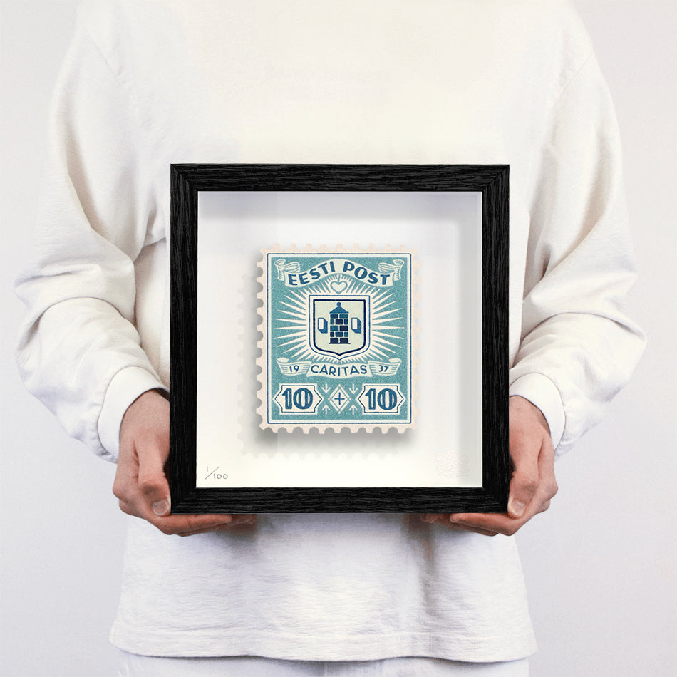 Each artwork by Guy Gee has been digitally reimagined from an original postage stamp. Printed on archival mount board, the artwork is then float mounted and editioned. Finally the stamp is housed in one of the studio’s bespoke made box frames by the team.
