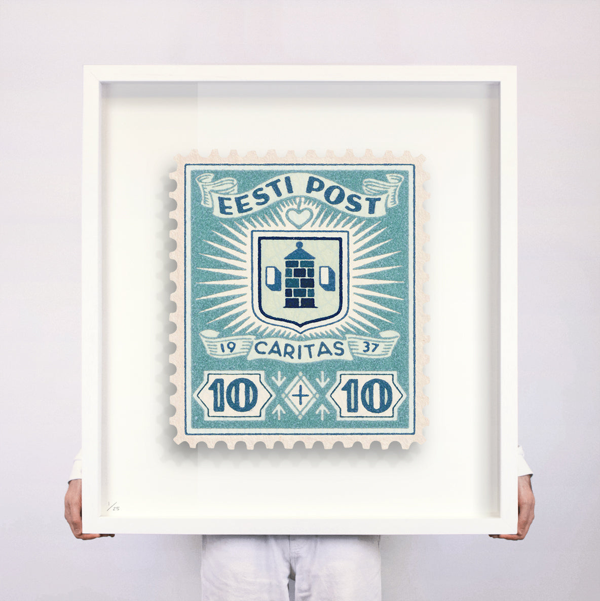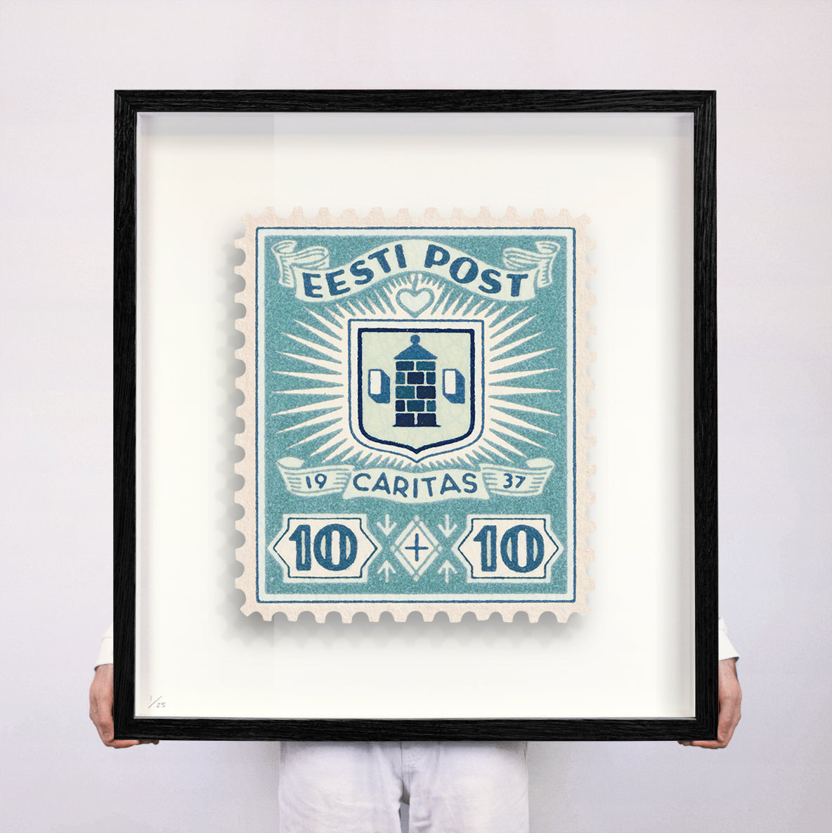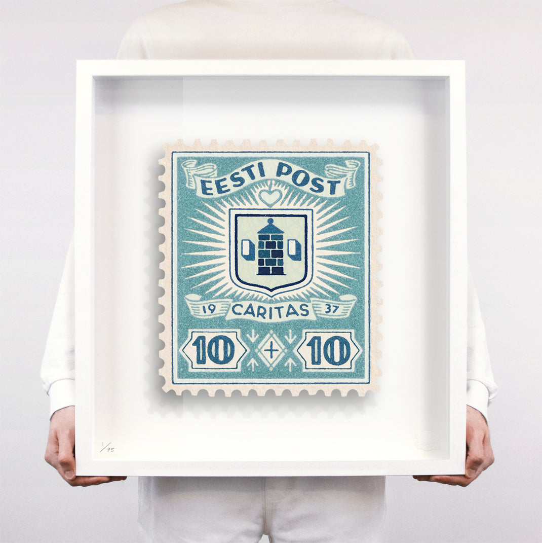 Each artwork by Guy Gee has been digitally reimagined from an original postage stamp. Printed on archival mount board, the artwork is then float mounted and editioned. Finally the stamp is housed in one of the studio’s bespoke made box frames by the team.