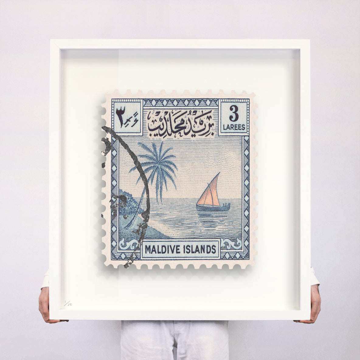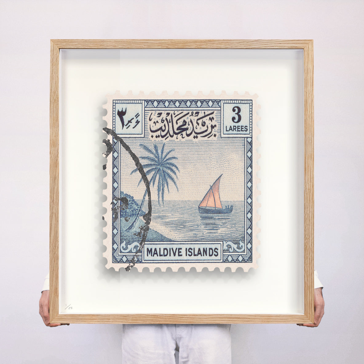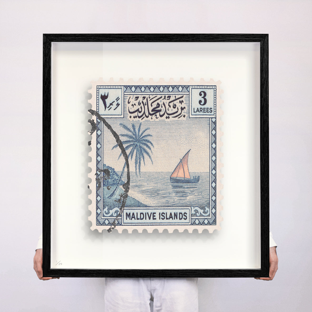 Each artwork by Guy Gee has been digitally reimagined from an original postage stamp. Printed on archival mount board, the artwork is then float mounted and editioned. Finally the stamp is housed in one of the studio’s bespoke made box frames by the team.