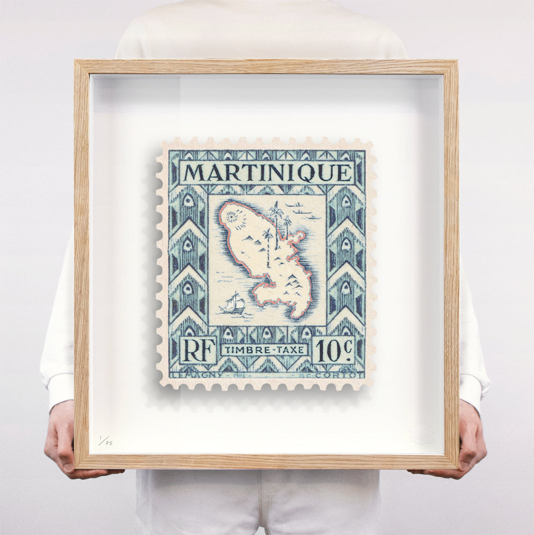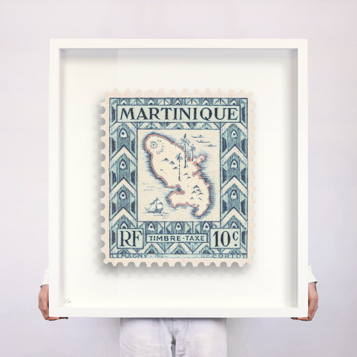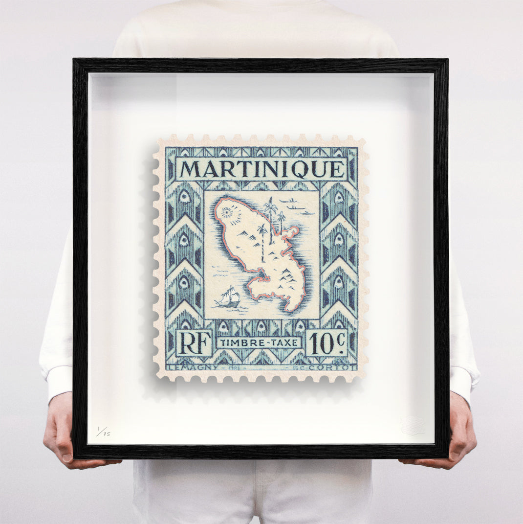 Each artwork by Guy Gee has been digitally reimagined from an original postage stamp. Printed on archival mount board, the artwork is then float mounted and editioned. Finally the stamp is housed in one of the studio’s bespoke made box frames by the team.
