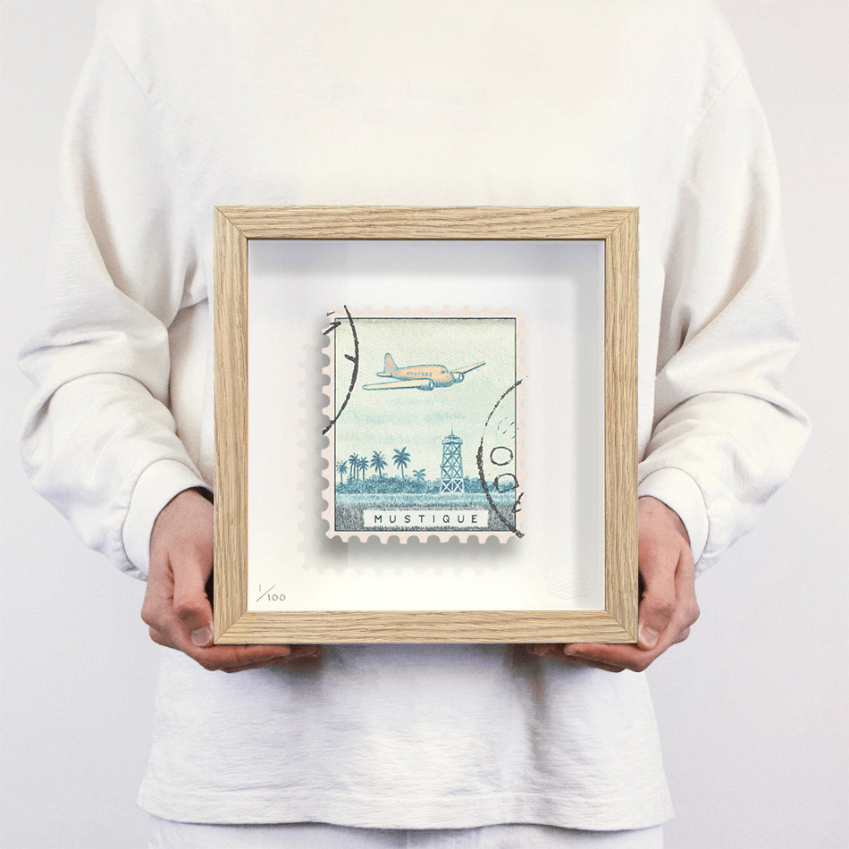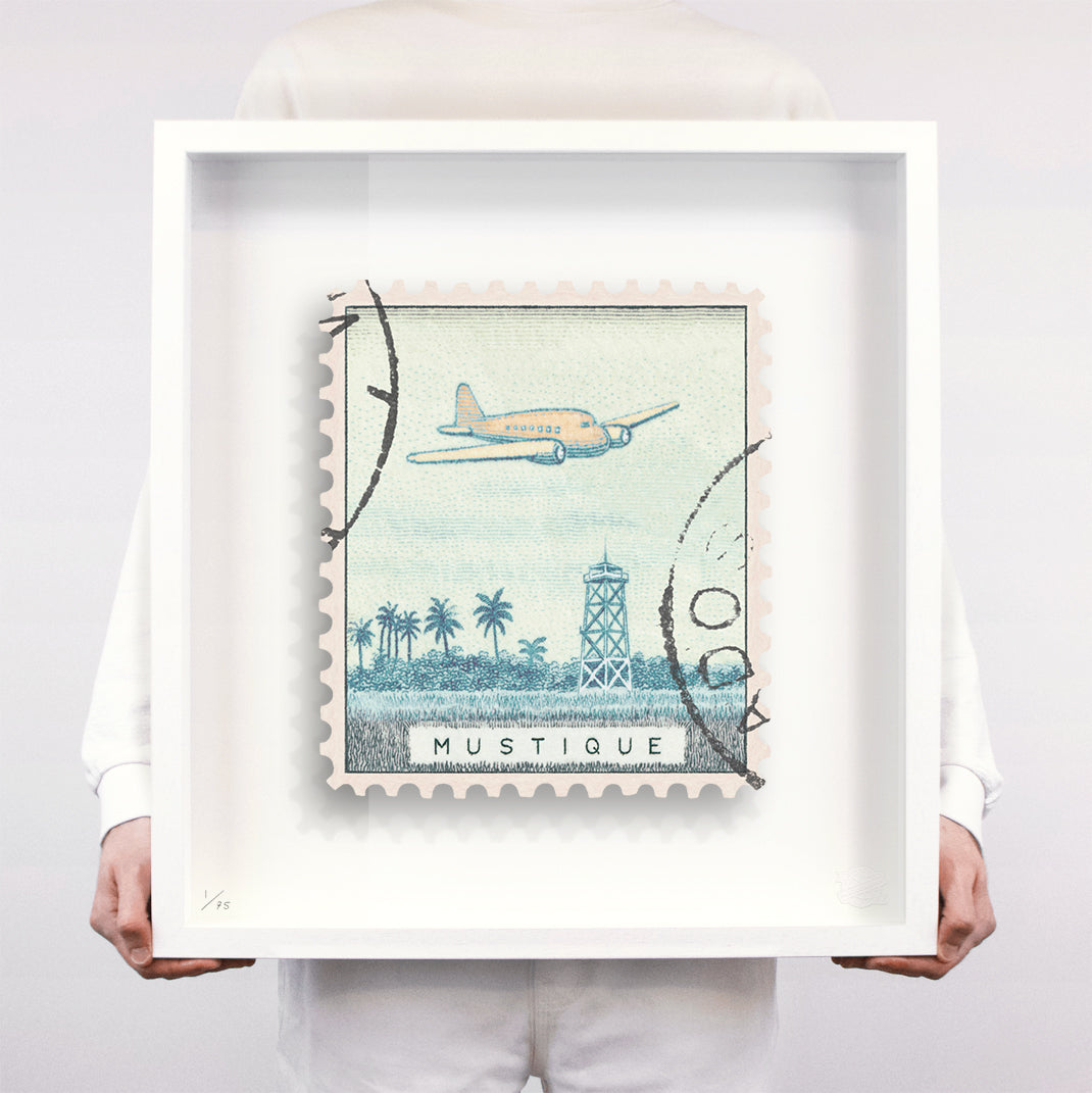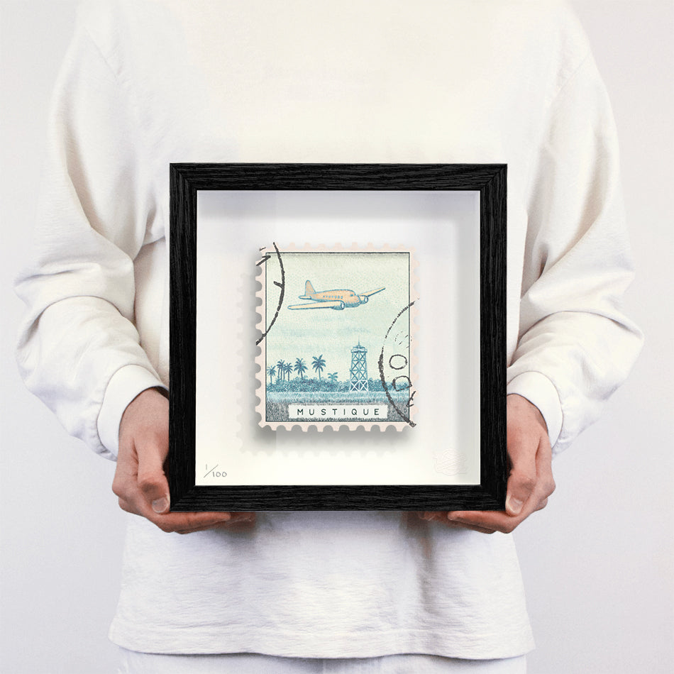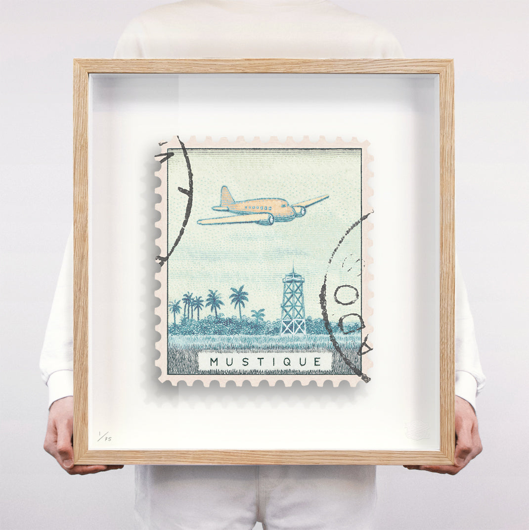 Each artwork by Guy Gee has been digitally reimagined from an original postage stamp. Printed on archival mount board, the artwork is then float mounted and editioned. Finally the stamp is housed in one of the studio’s bespoke made box frames by the team.