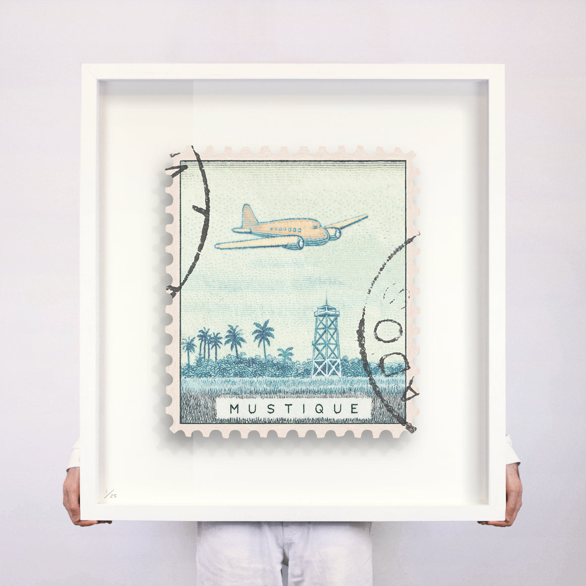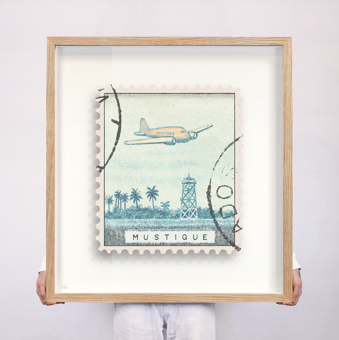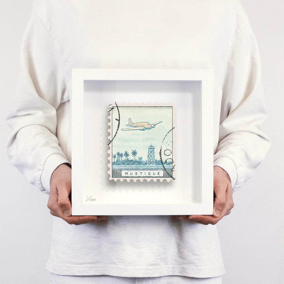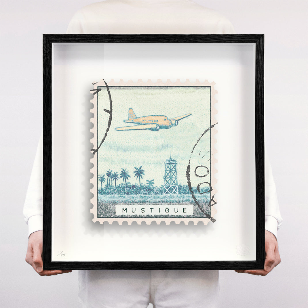 Each artwork by Guy Gee has been digitally reimagined from an original postage stamp. Printed on archival mount board, the artwork is then float mounted and editioned. Finally the stamp is housed in one of the studio’s bespoke made box frames by the team.