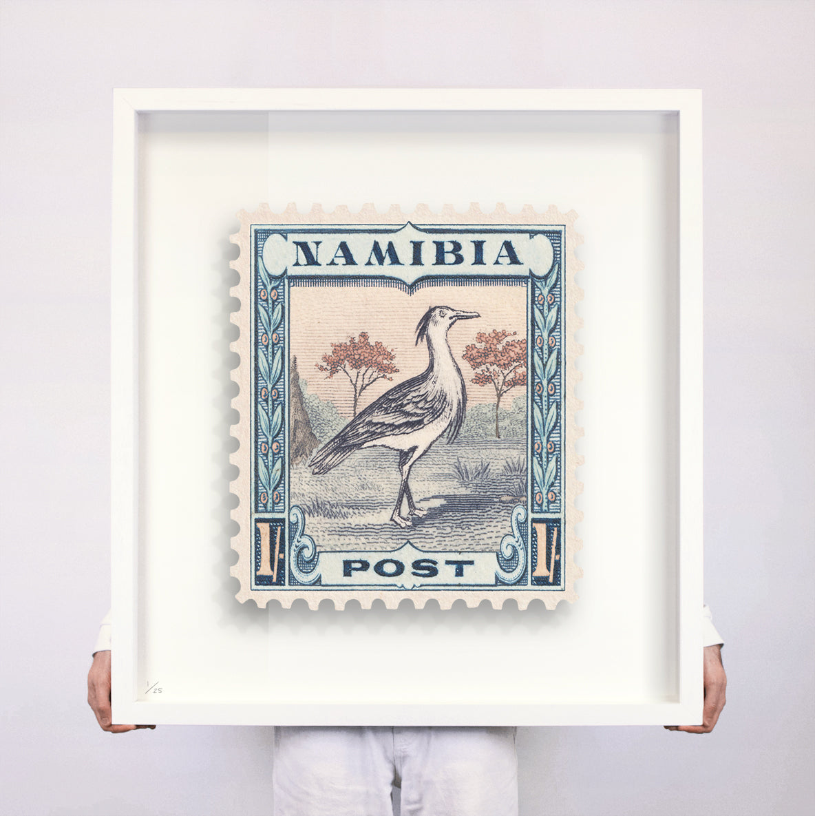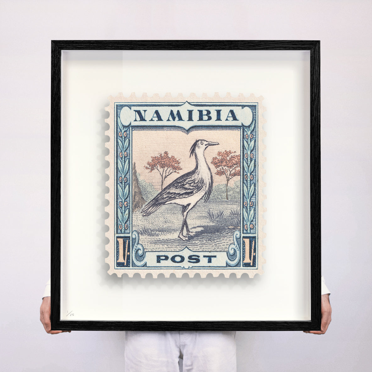 Each artwork by Guy Gee has been digitally reimagined from an original postage stamp. Printed on archival mount board, the artwork is then float mounted and editioned. Finally the stamp is housed in one of the studio’s bespoke made box frames by the team.