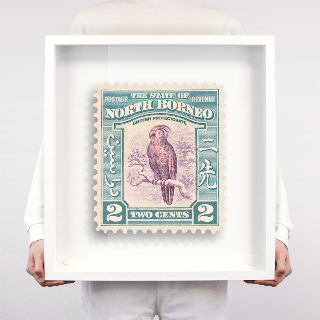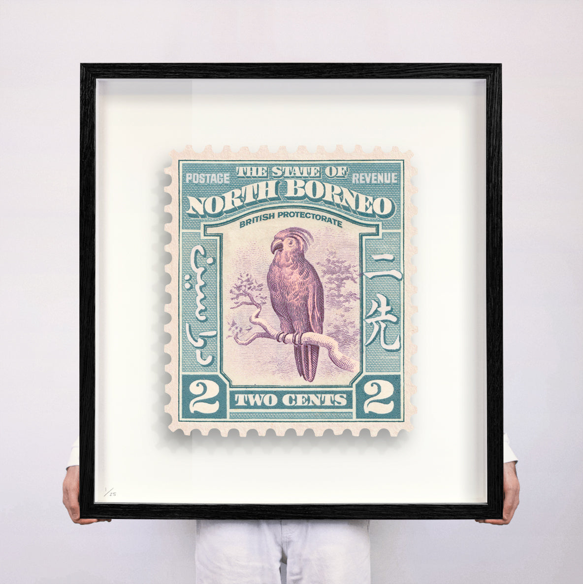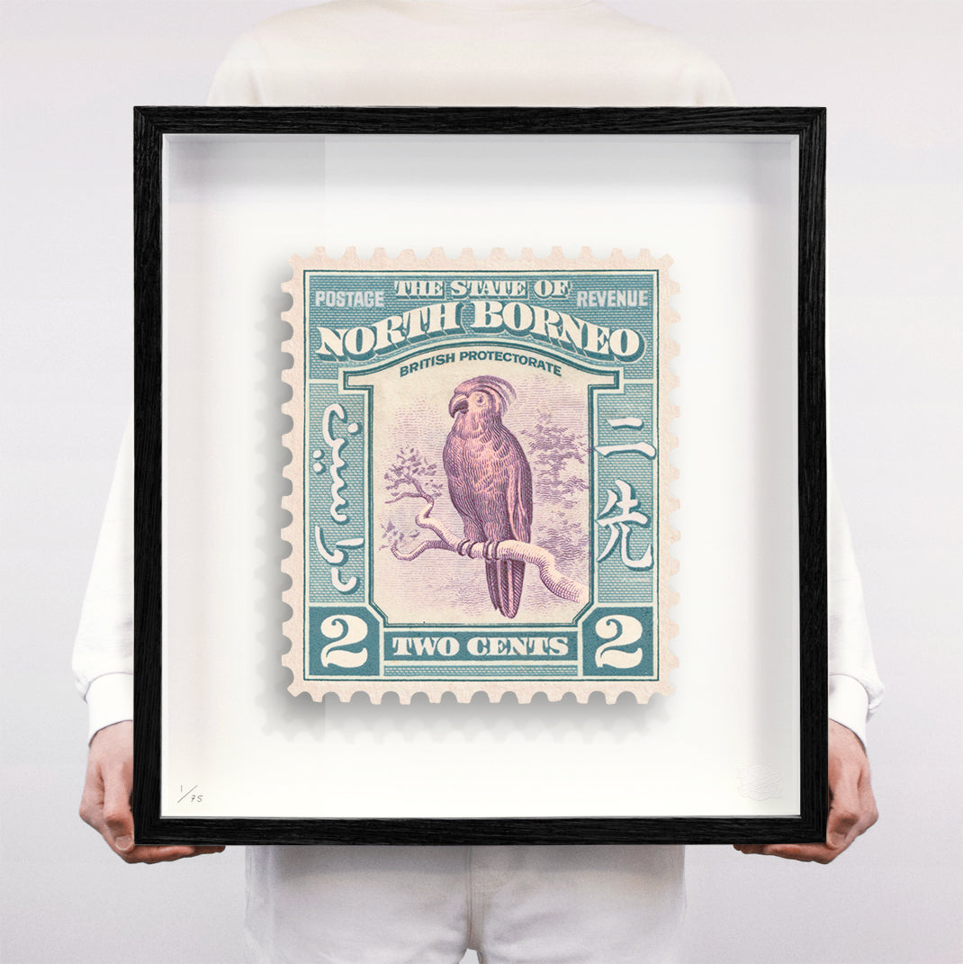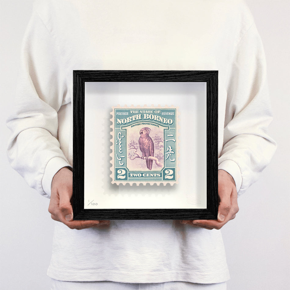 Each artwork by Guy Gee has been digitally reimagined from an original postage stamp. Printed on archival mount board, the artwork is then float mounted and editioned. Finally the stamp is housed in one of the studio’s bespoke made box frames by the team.