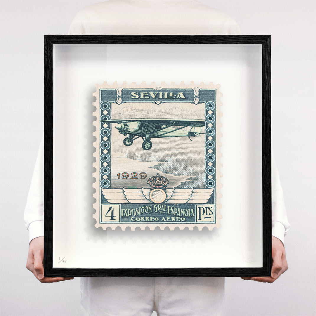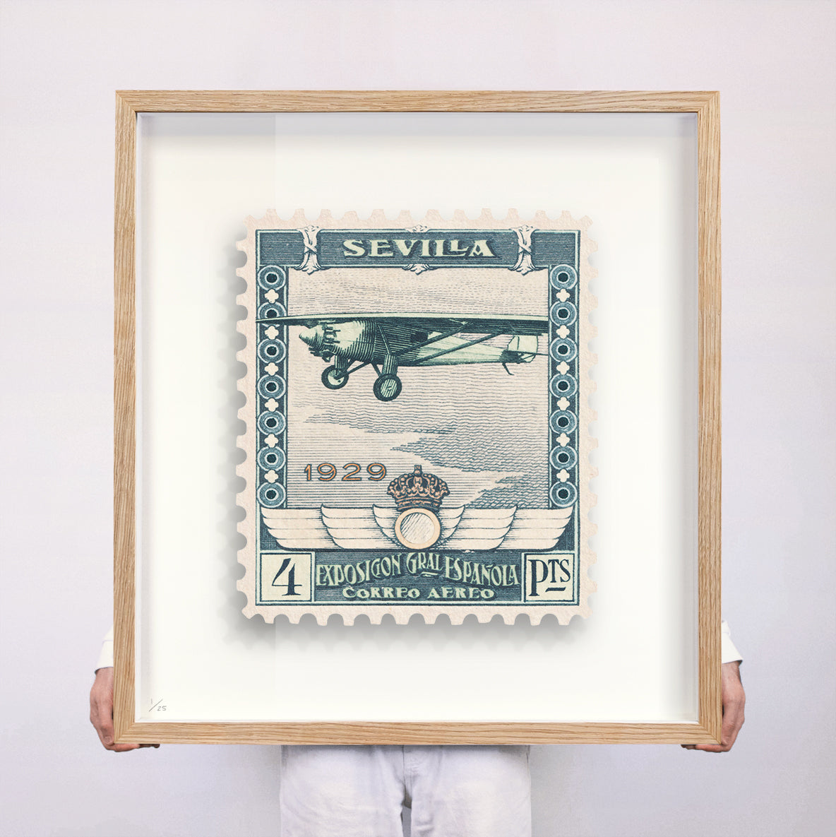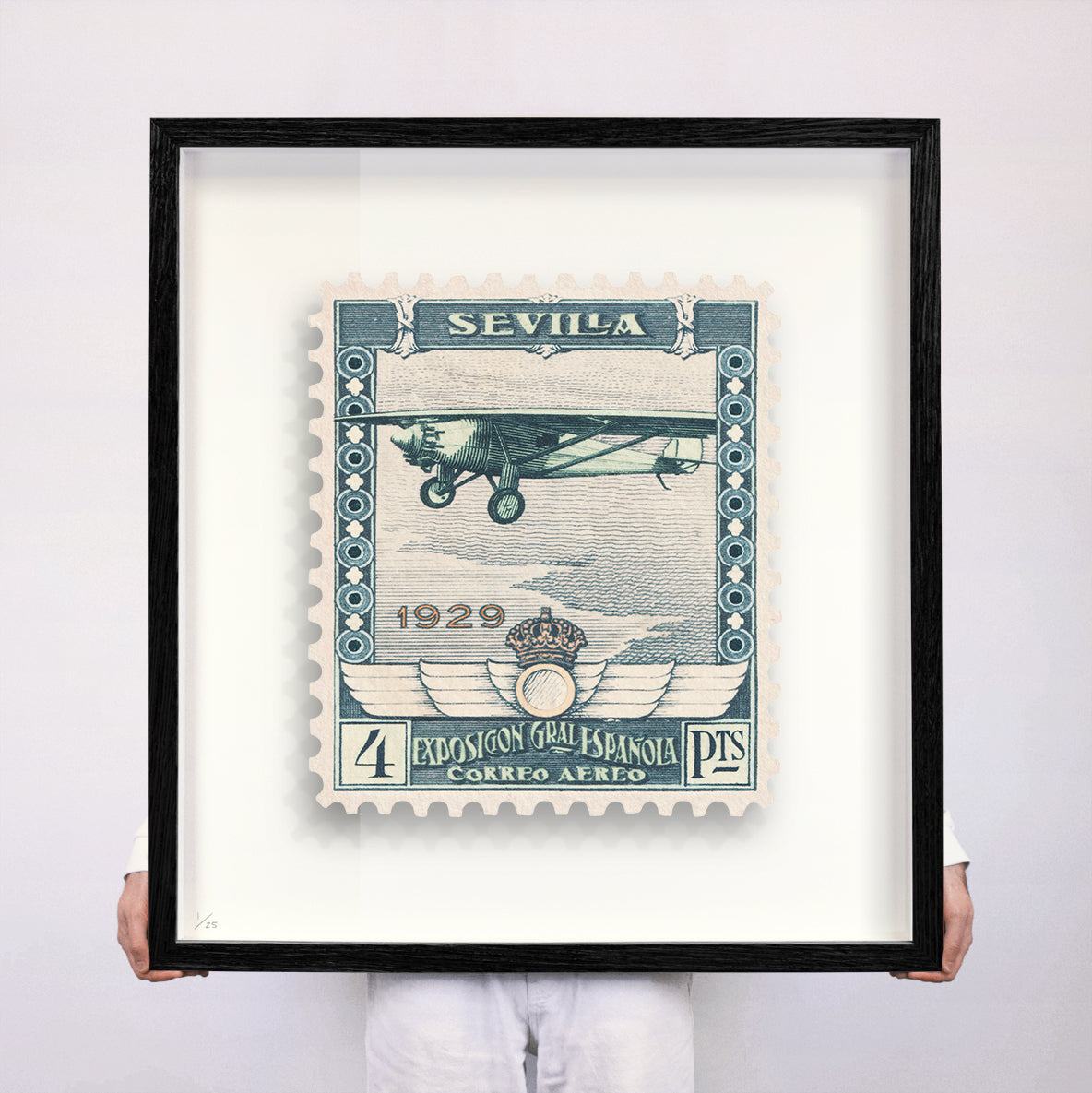 Each artwork by Guy Gee has been digitally reimagined from an original postage stamp. Printed on archival mount board, the artwork is then float mounted and editioned. Finally the stamp is housed in one of the studio’s bespoke made box frames by the team.