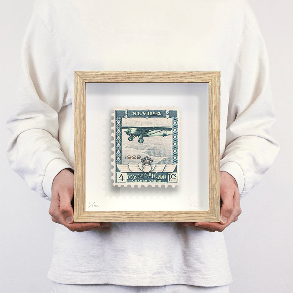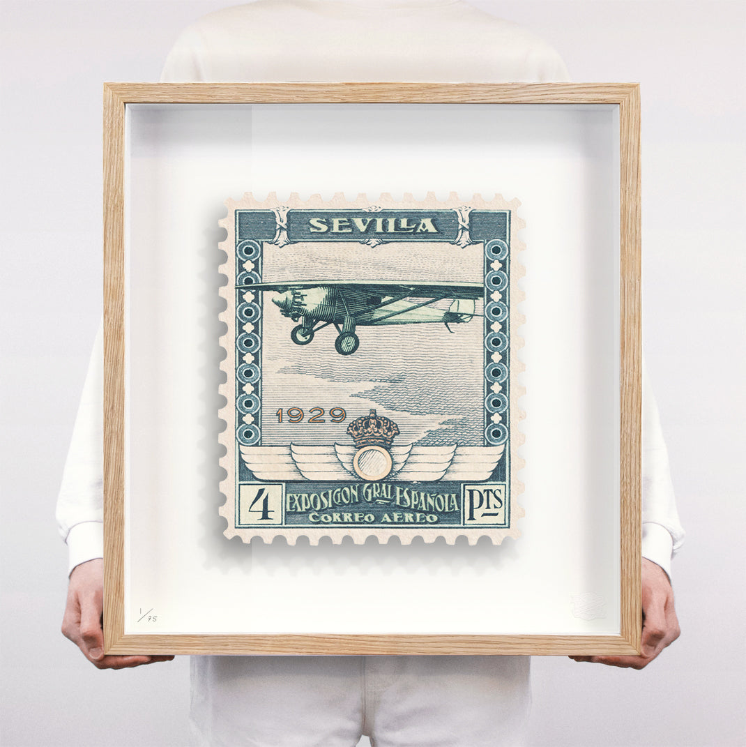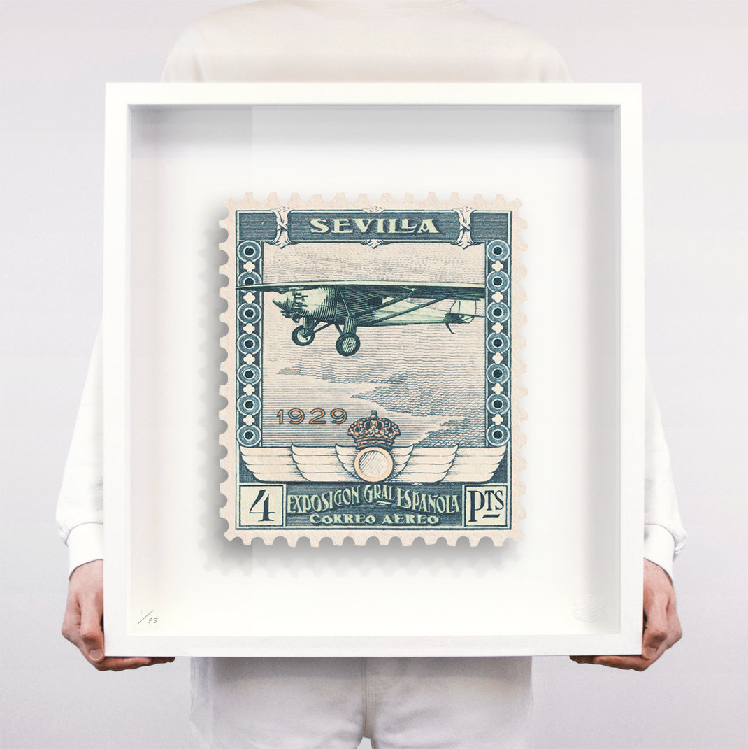 Each artwork by Guy Gee has been digitally reimagined from an original postage stamp. Printed on archival mount board, the artwork is then float mounted and editioned. Finally the stamp is housed in one of the studio’s bespoke made box frames by the team.