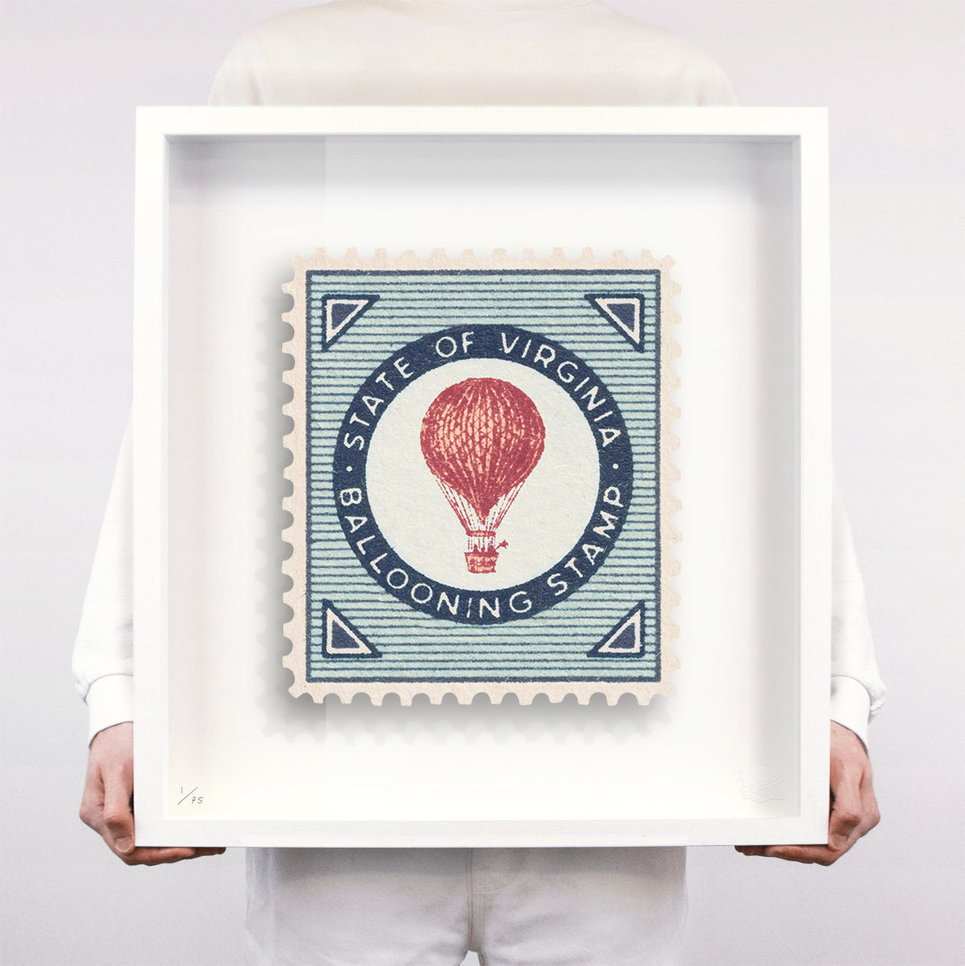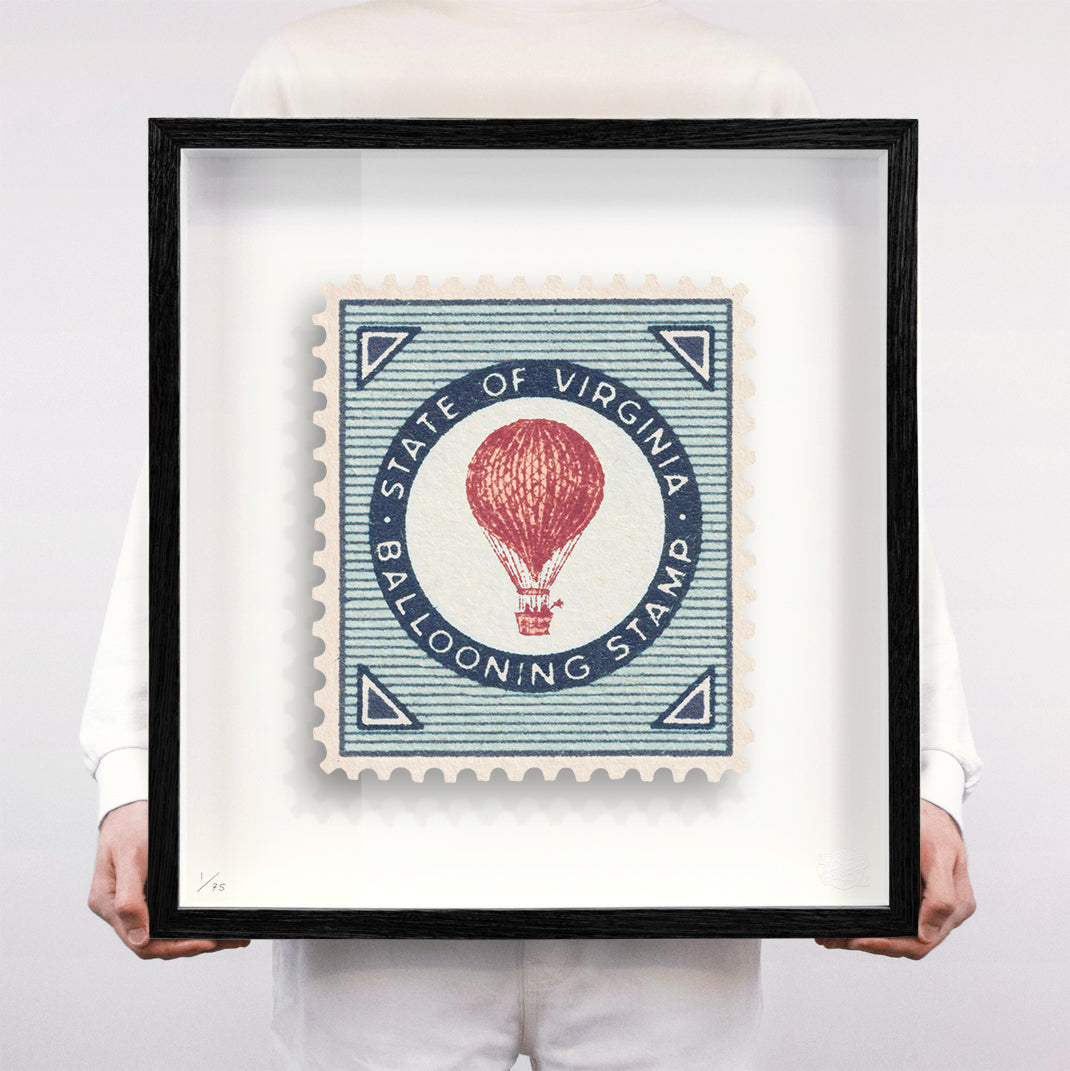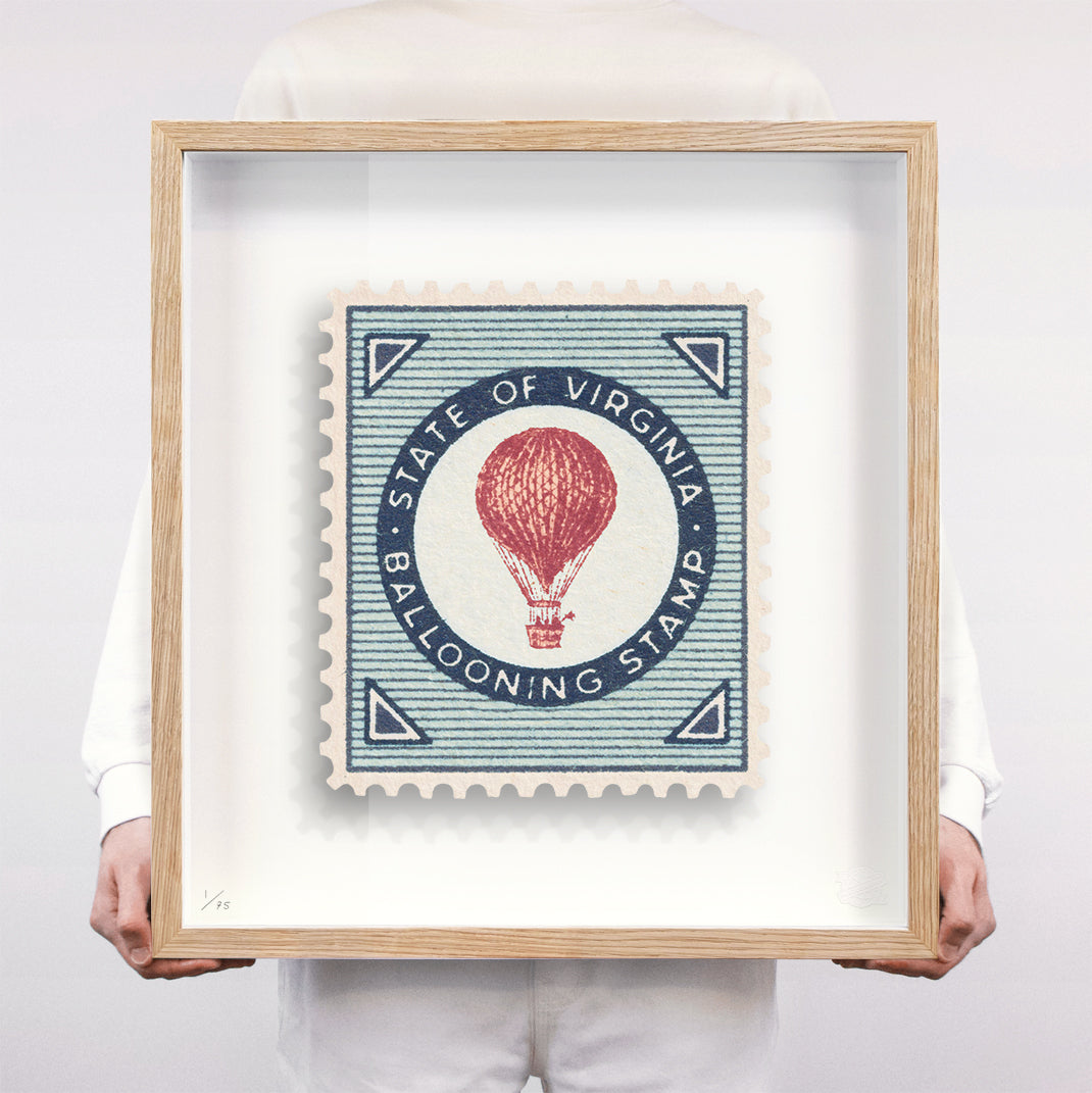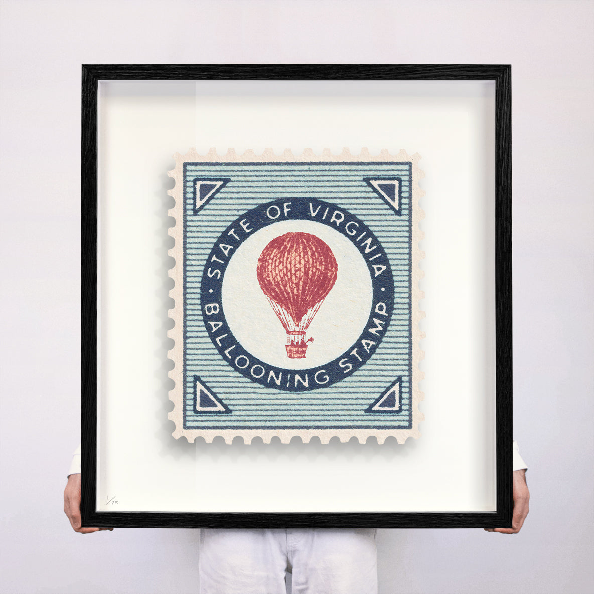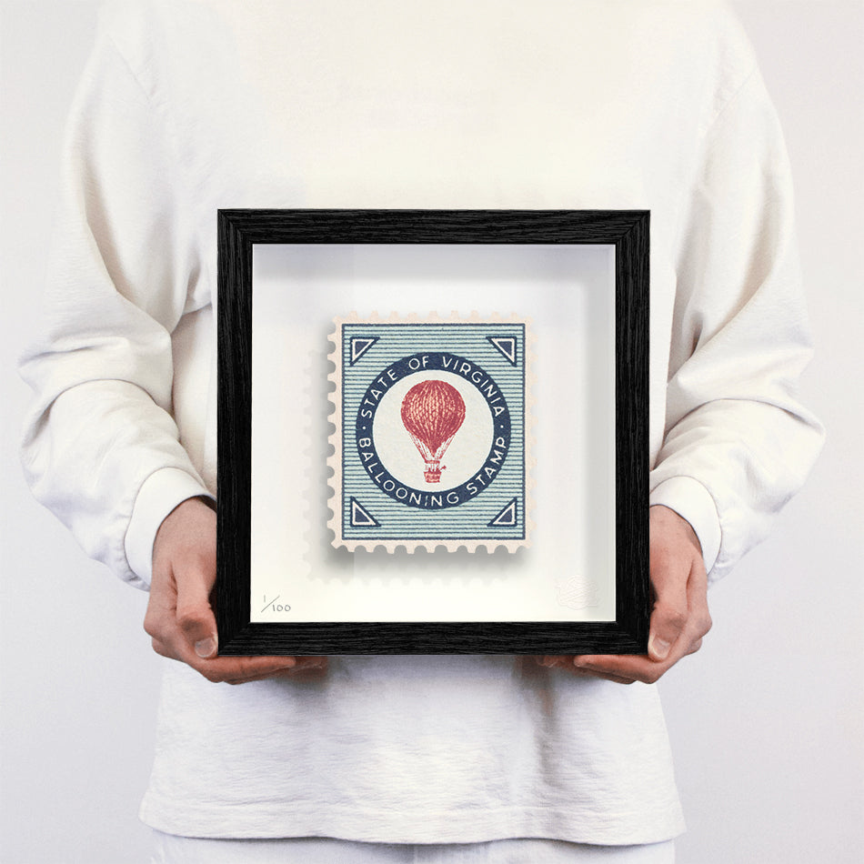 Each artwork by Guy Gee has been digitally reimagined from an original postage stamp. Printed on archival mount board, the artwork is then float mounted and editioned. Finally the stamp is housed in one of the studio’s bespoke made box frames by the team.