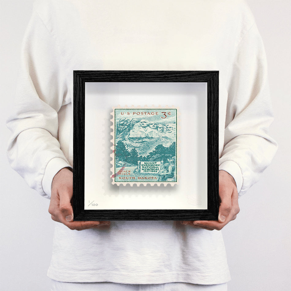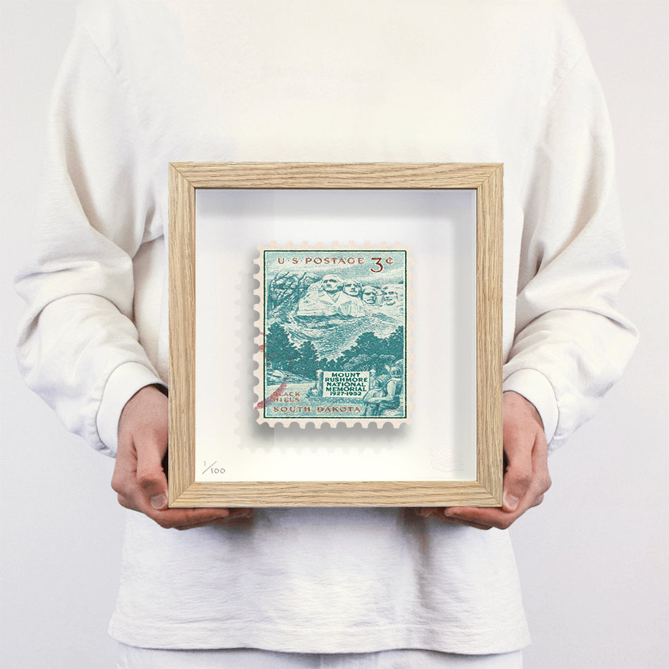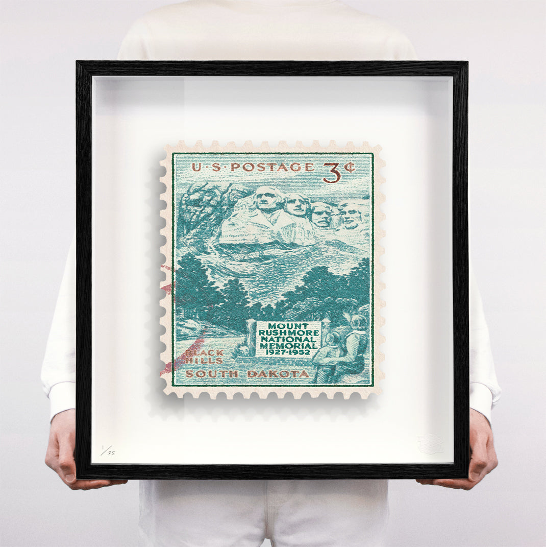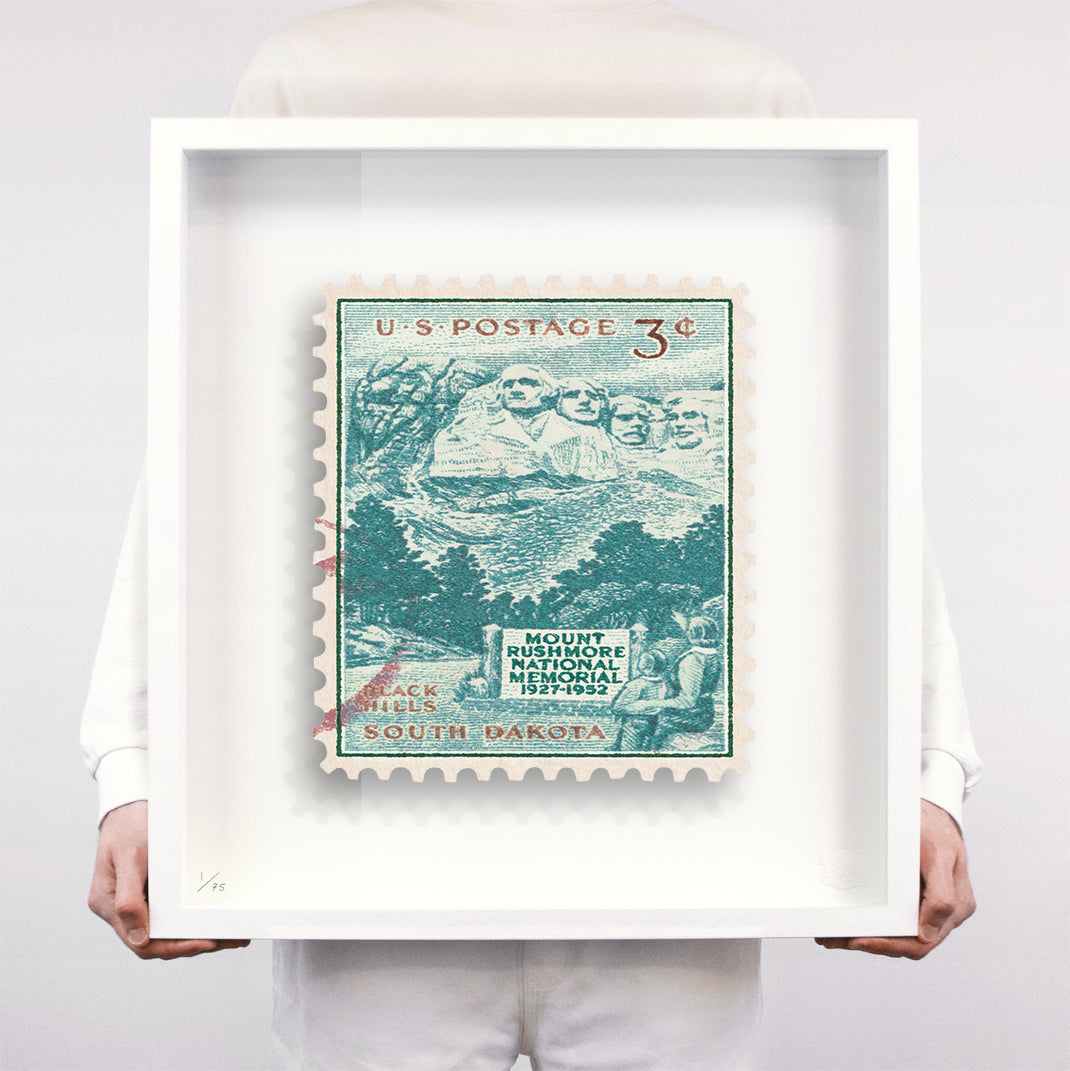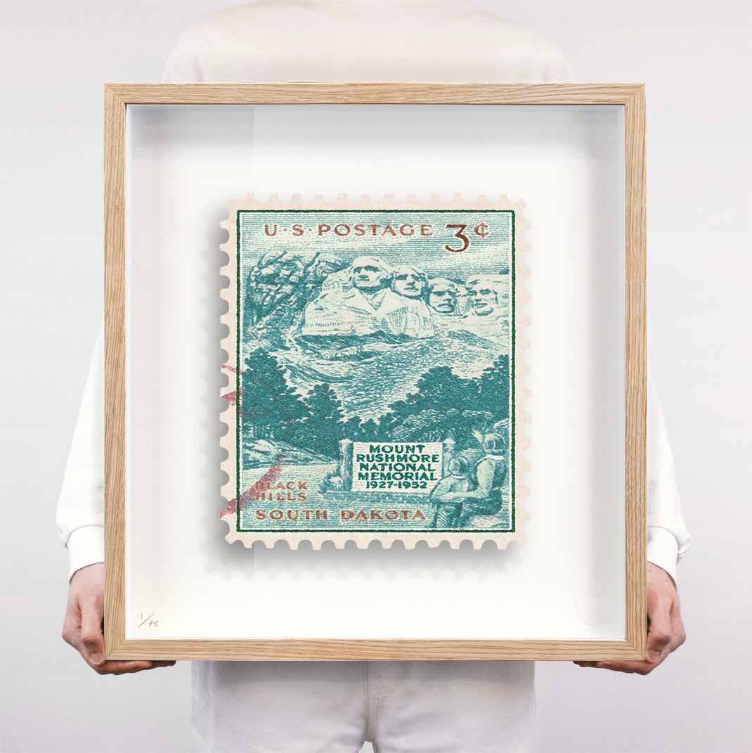 Each artwork by Guy Gee has been digitally reimagined from an original postage stamp. Printed on archival mount board, the artwork is then float mounted and editioned. Finally the stamp is housed in one of the studio’s bespoke made box frames by the team.