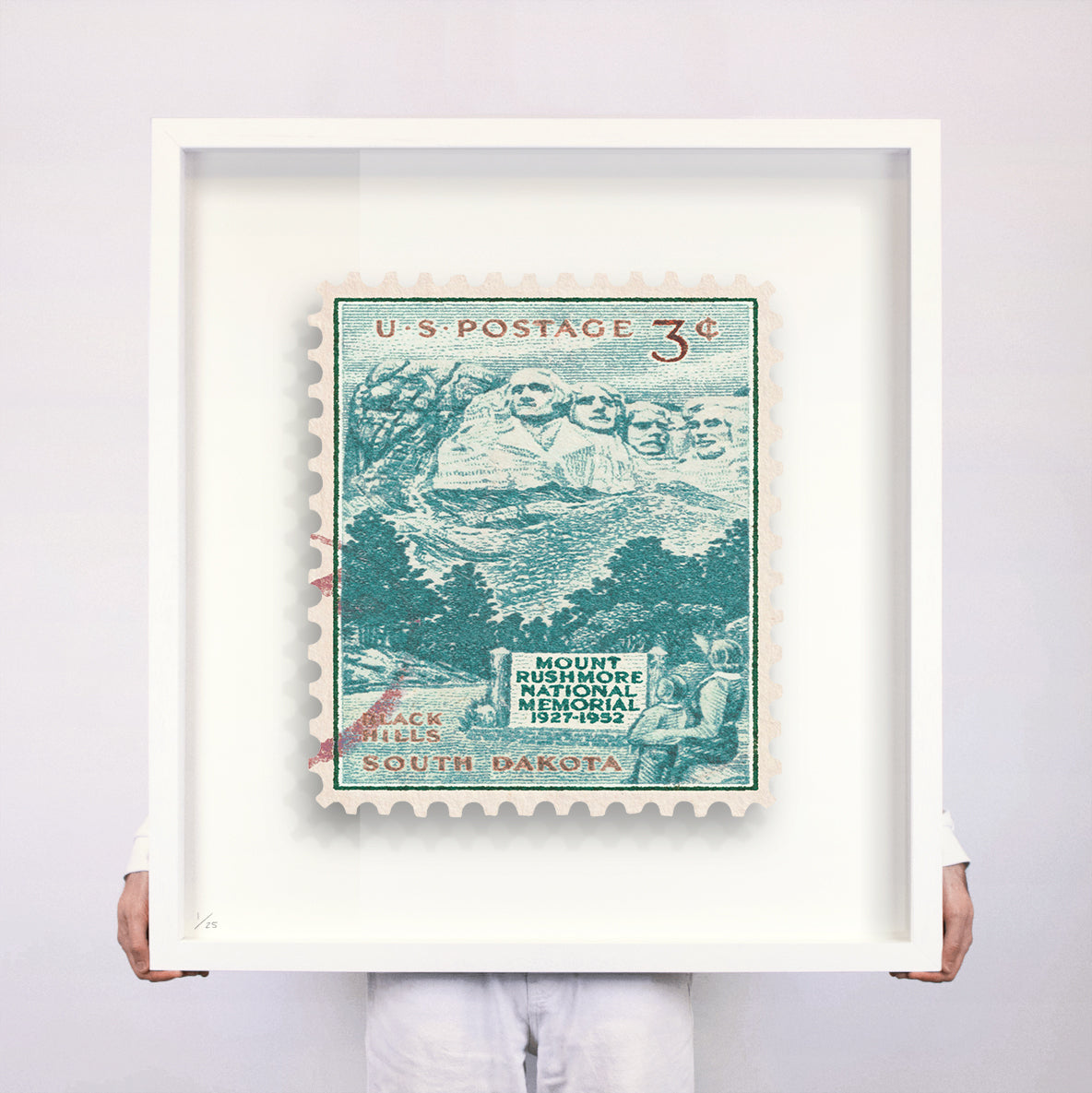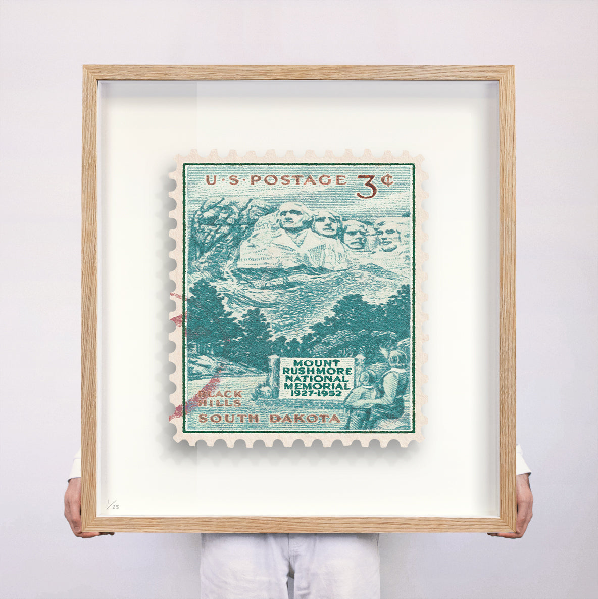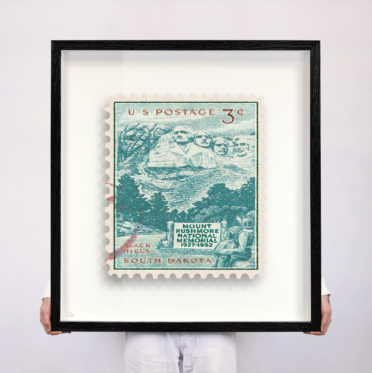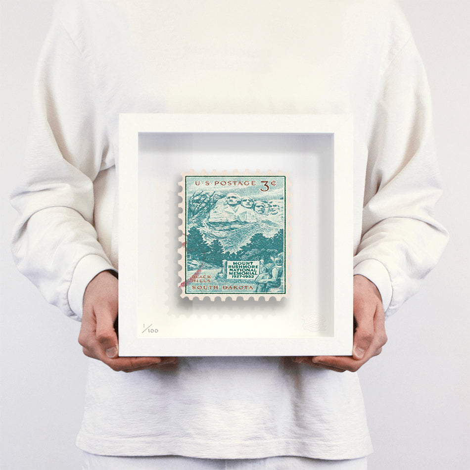 Each artwork by Guy Gee has been digitally reimagined from an original postage stamp. Printed on archival mount board, the artwork is then float mounted and editioned. Finally the stamp is housed in one of the studio’s bespoke made box frames by the team.