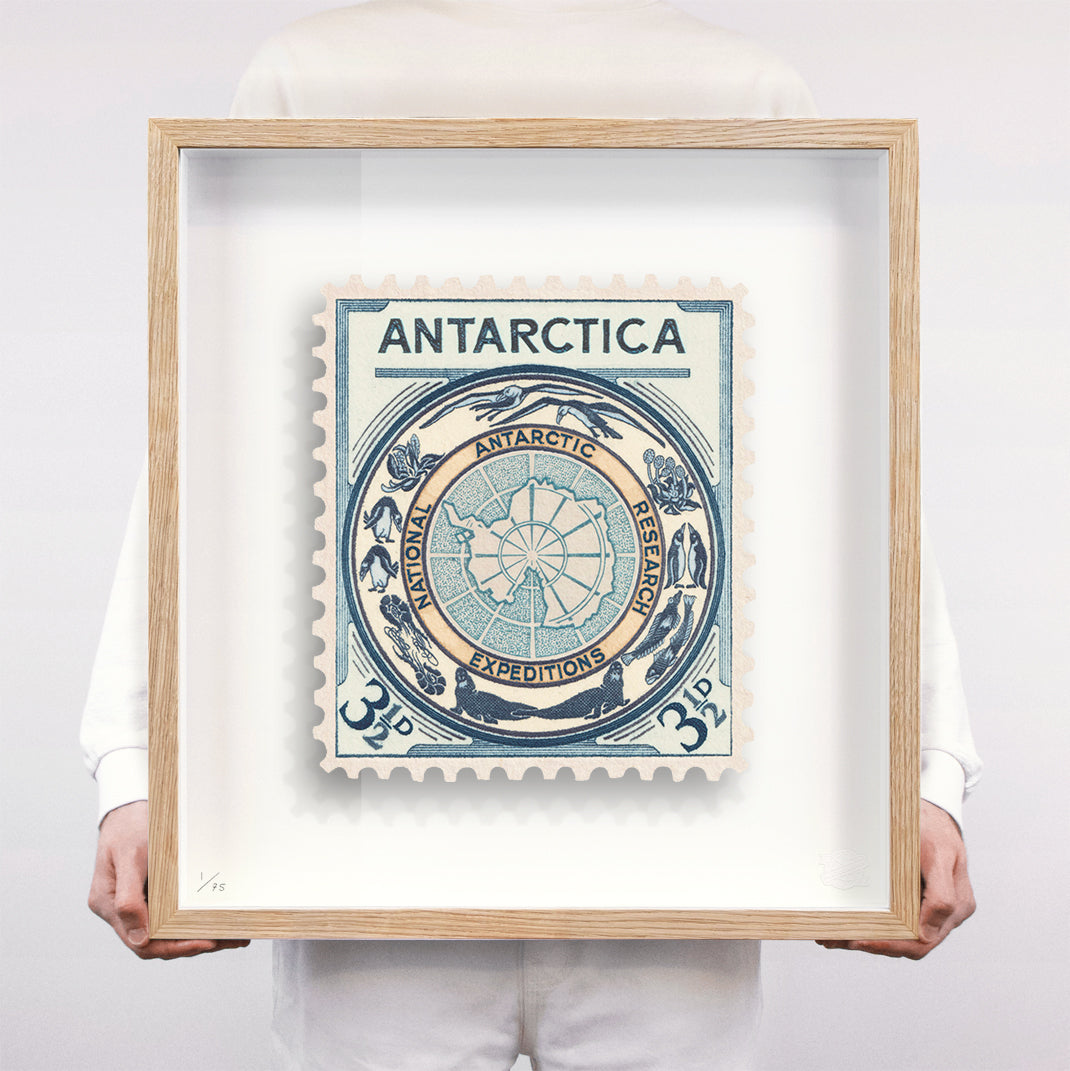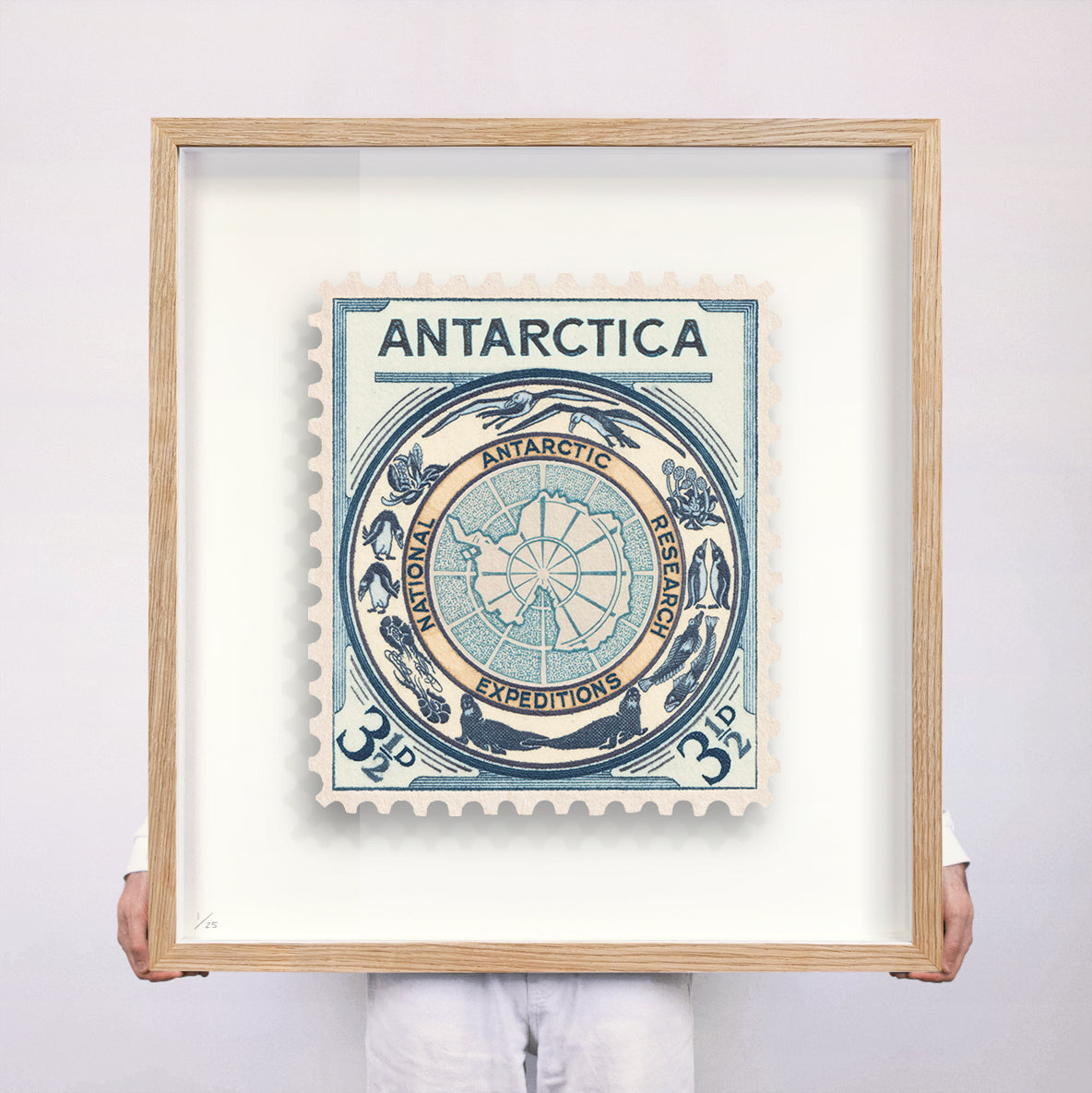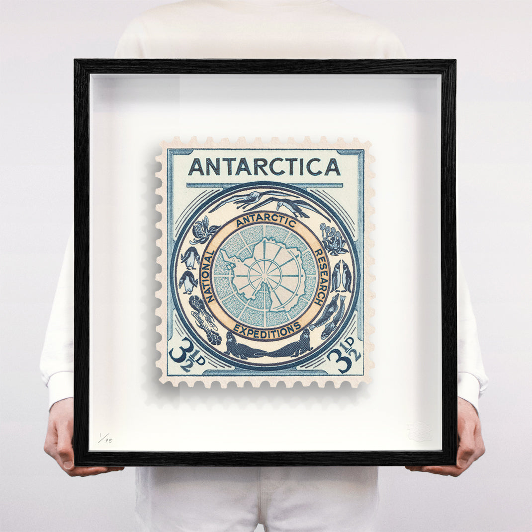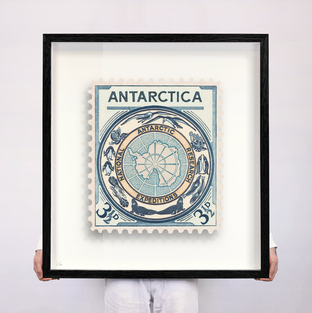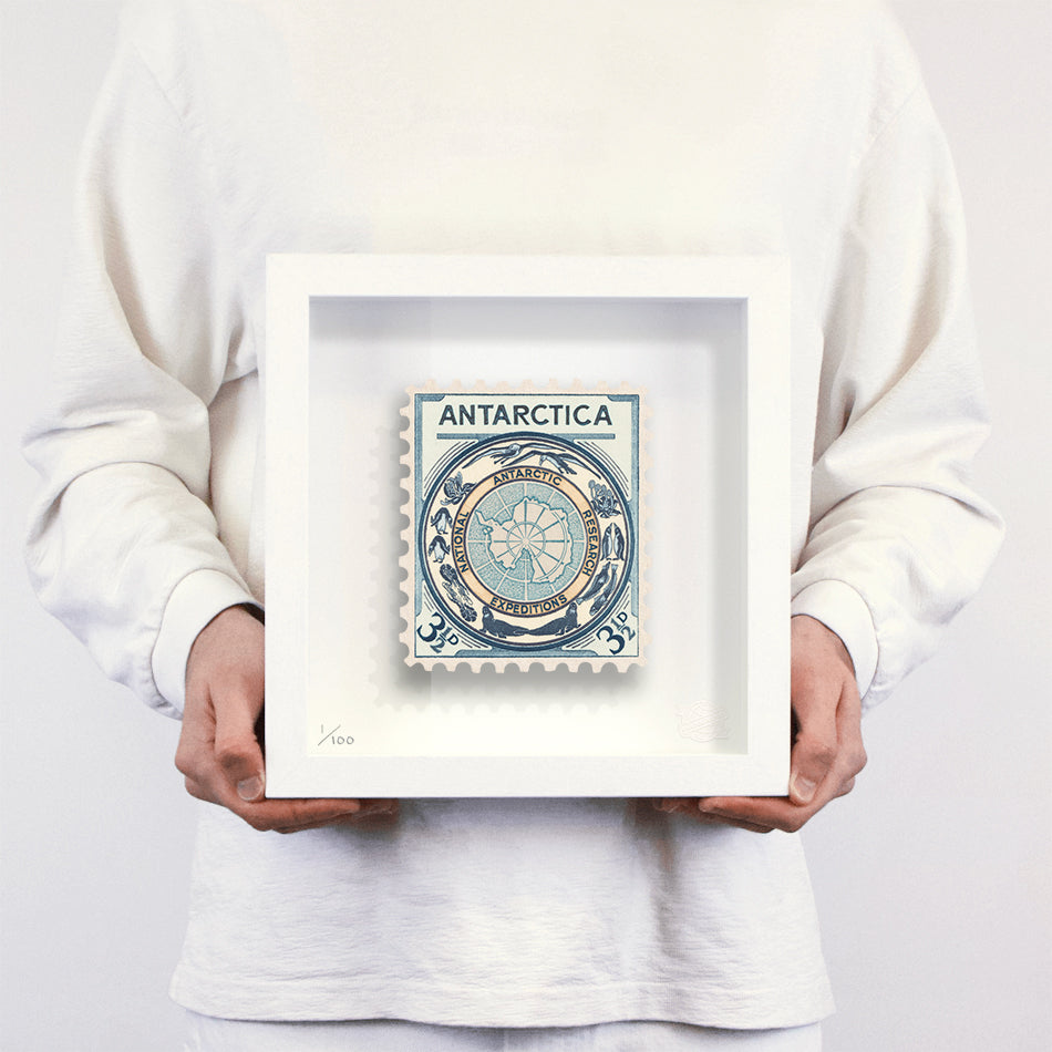 Each artwork by Guy Gee has been digitally reimagined from an original postage stamp. Printed on archival mount board, the artwork is then float mounted and editioned. Finally the stamp is housed in one of the studio’s bespoke made box frames by the team.