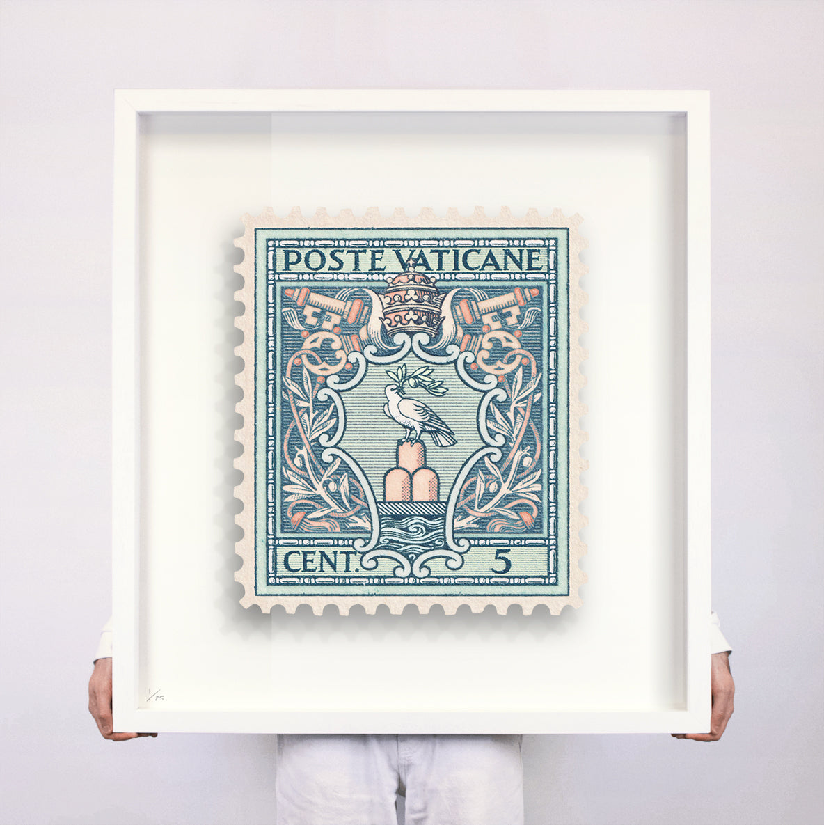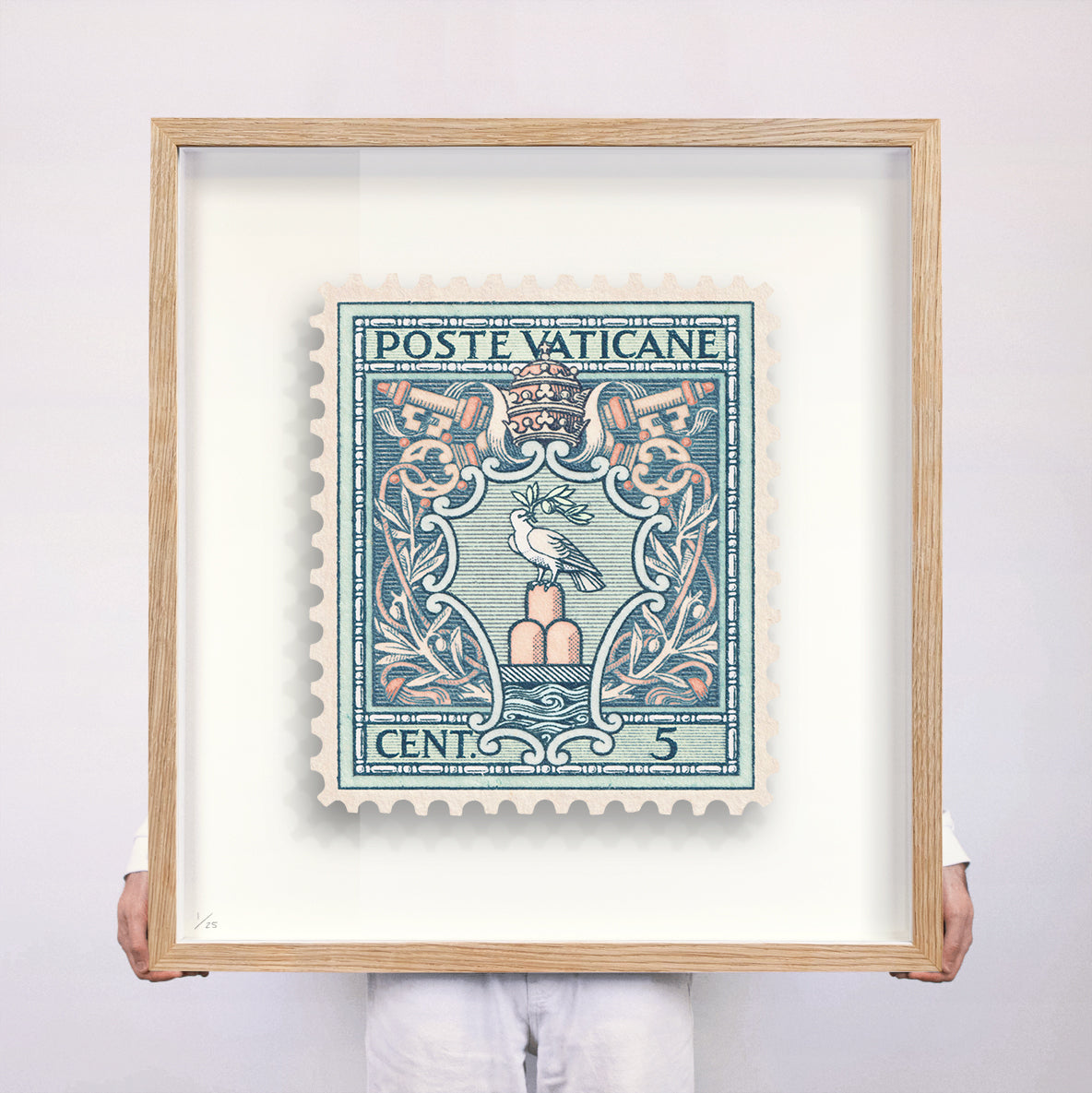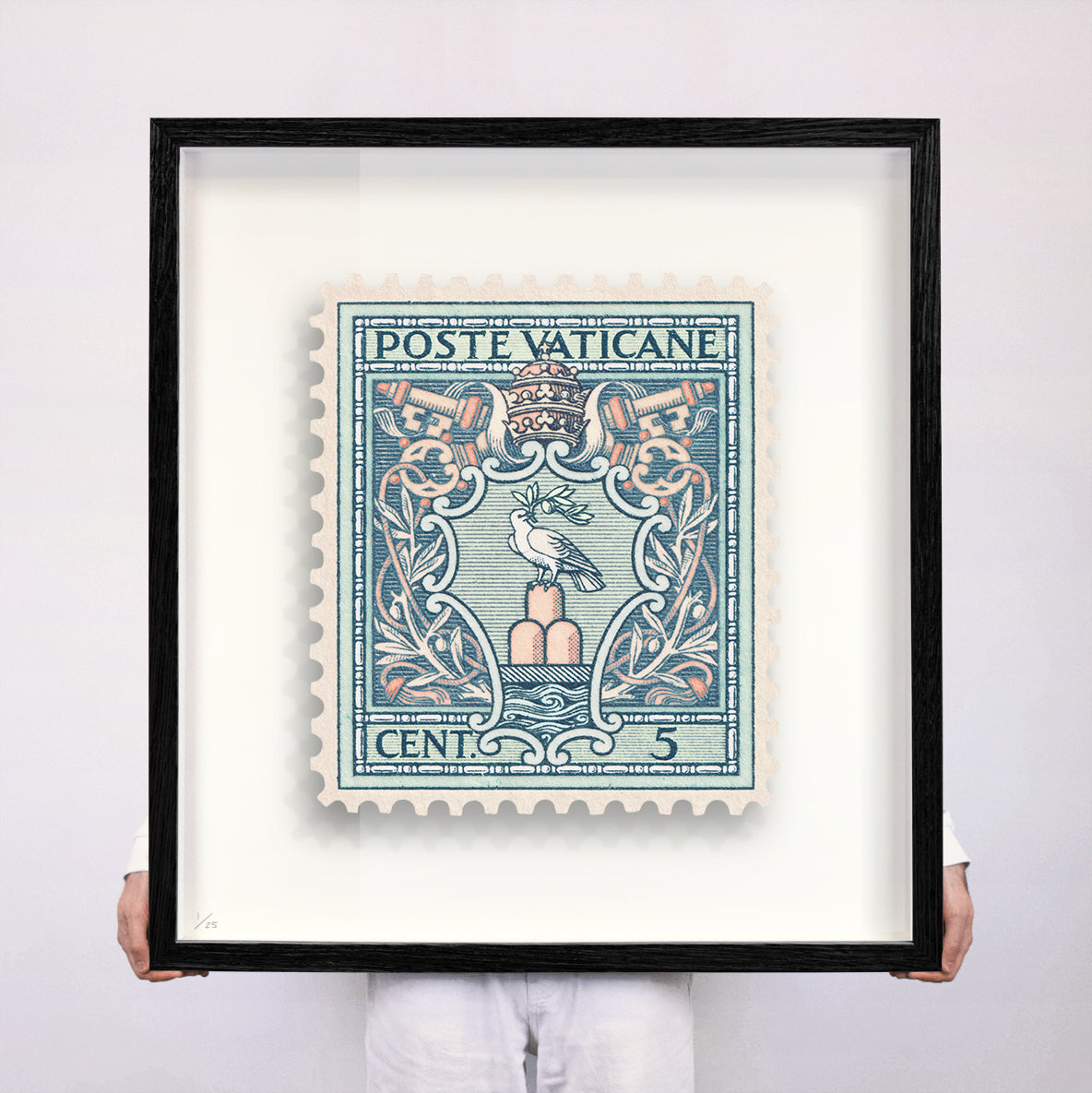 Each artwork by Guy Gee has been digitally reimagined from an original postage stamp. Printed on archival mount board, the artwork is then float mounted and editioned. Finally the stamp is housed in one of the studio’s bespoke made box frames by the team.