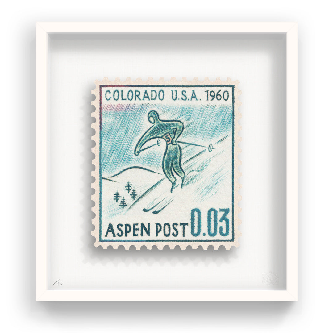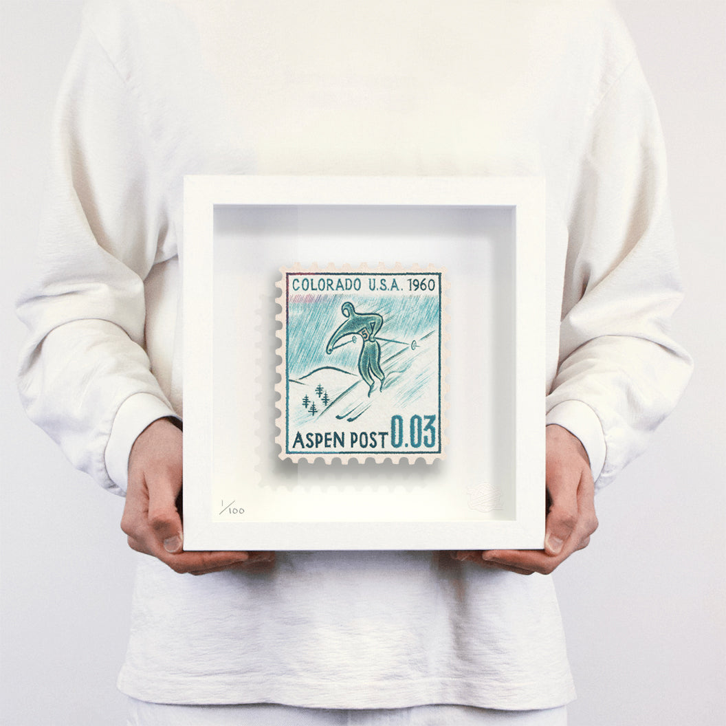 Each artwork by Guy Gee has been digitally reimagined from an original postage stamp. Printed on archival mount board, the artwork is then float mounted and editioned. Finally the stamp is housed in one of the studio’s bespoke made box frames by the team.