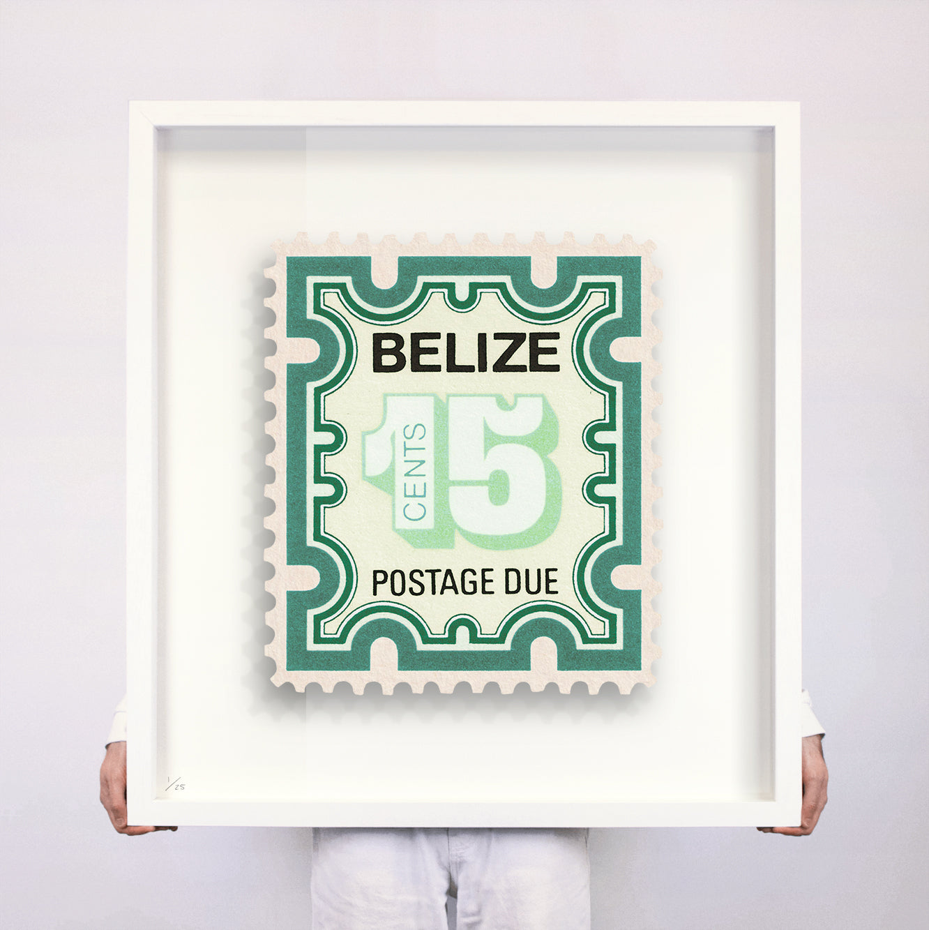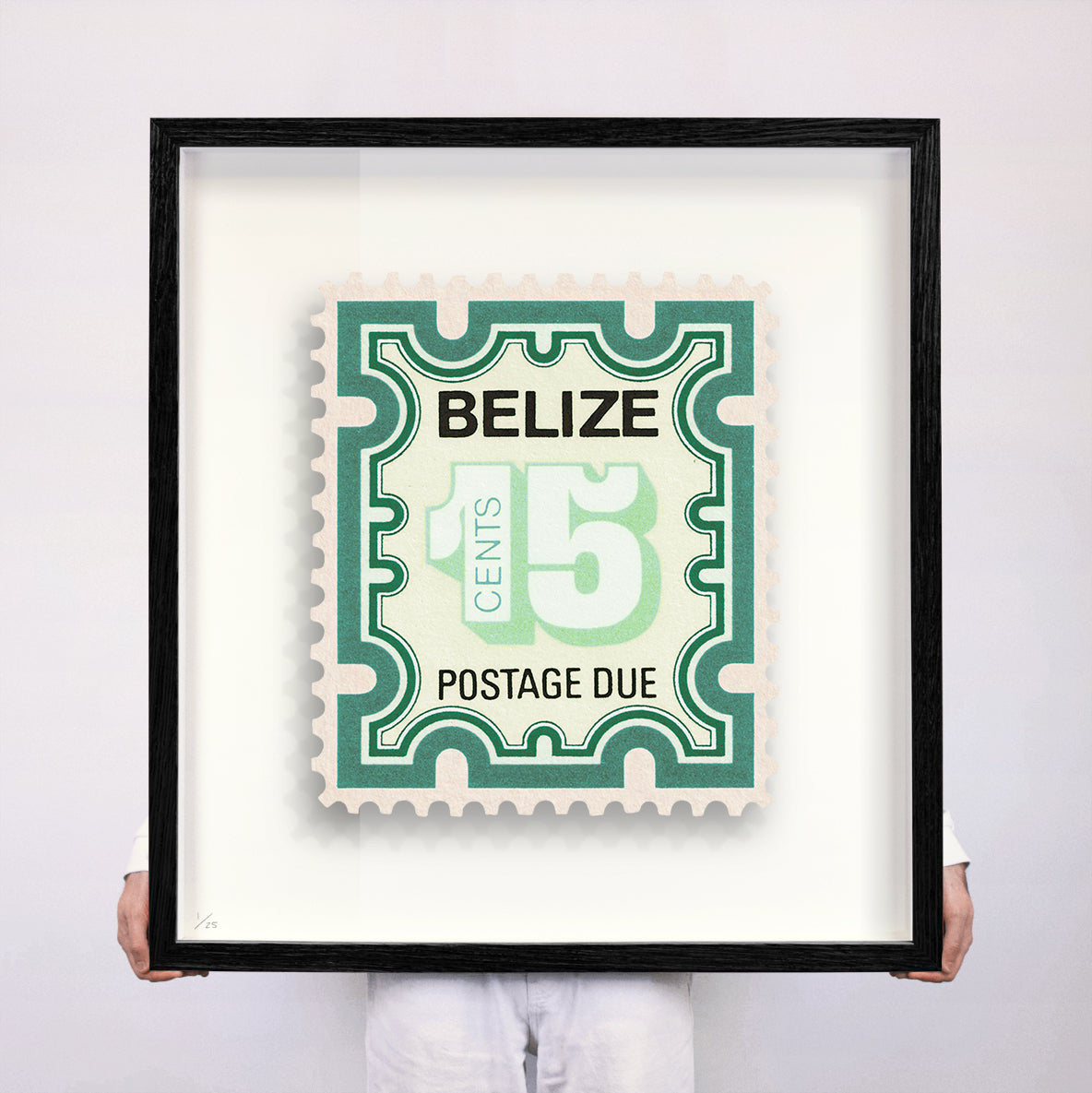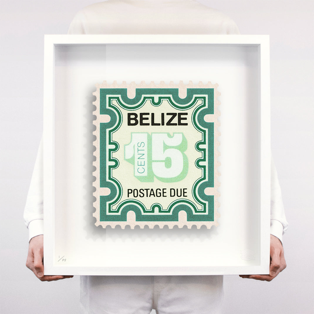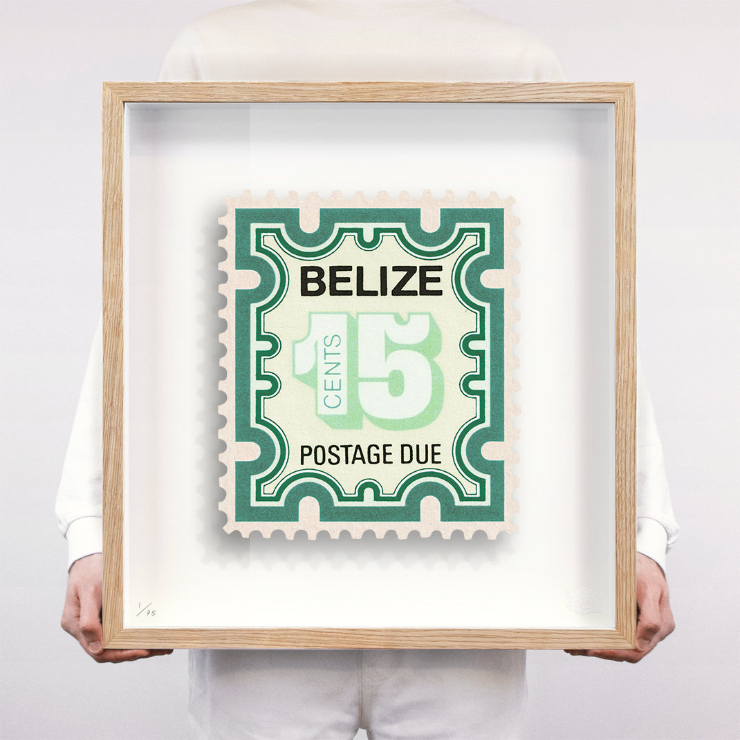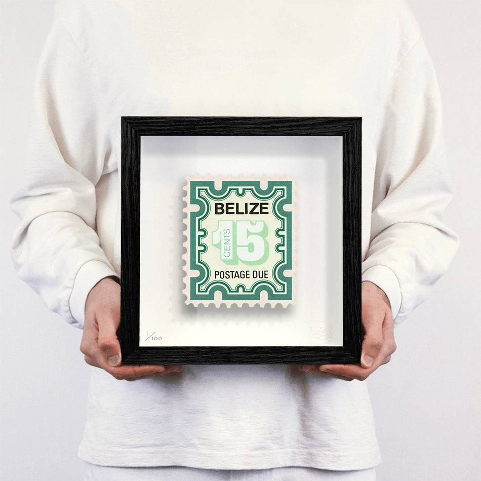 Each artwork by Guy Gee has been digitally reimagined from an original postage stamp. Printed on archival mount board, the artwork is then float mounted and editioned. Finally the stamp is housed in one of the studio’s bespoke made box frames by the team.
