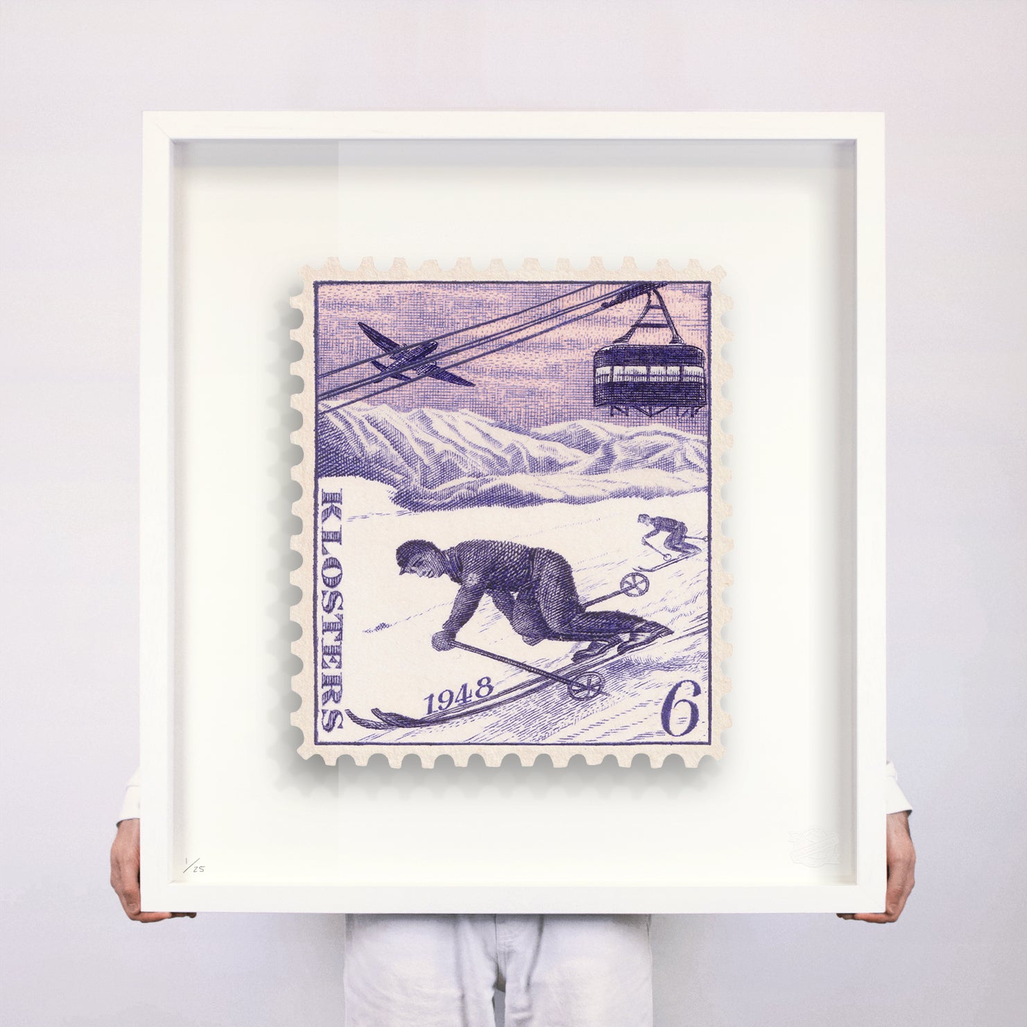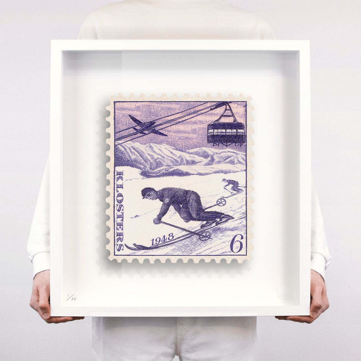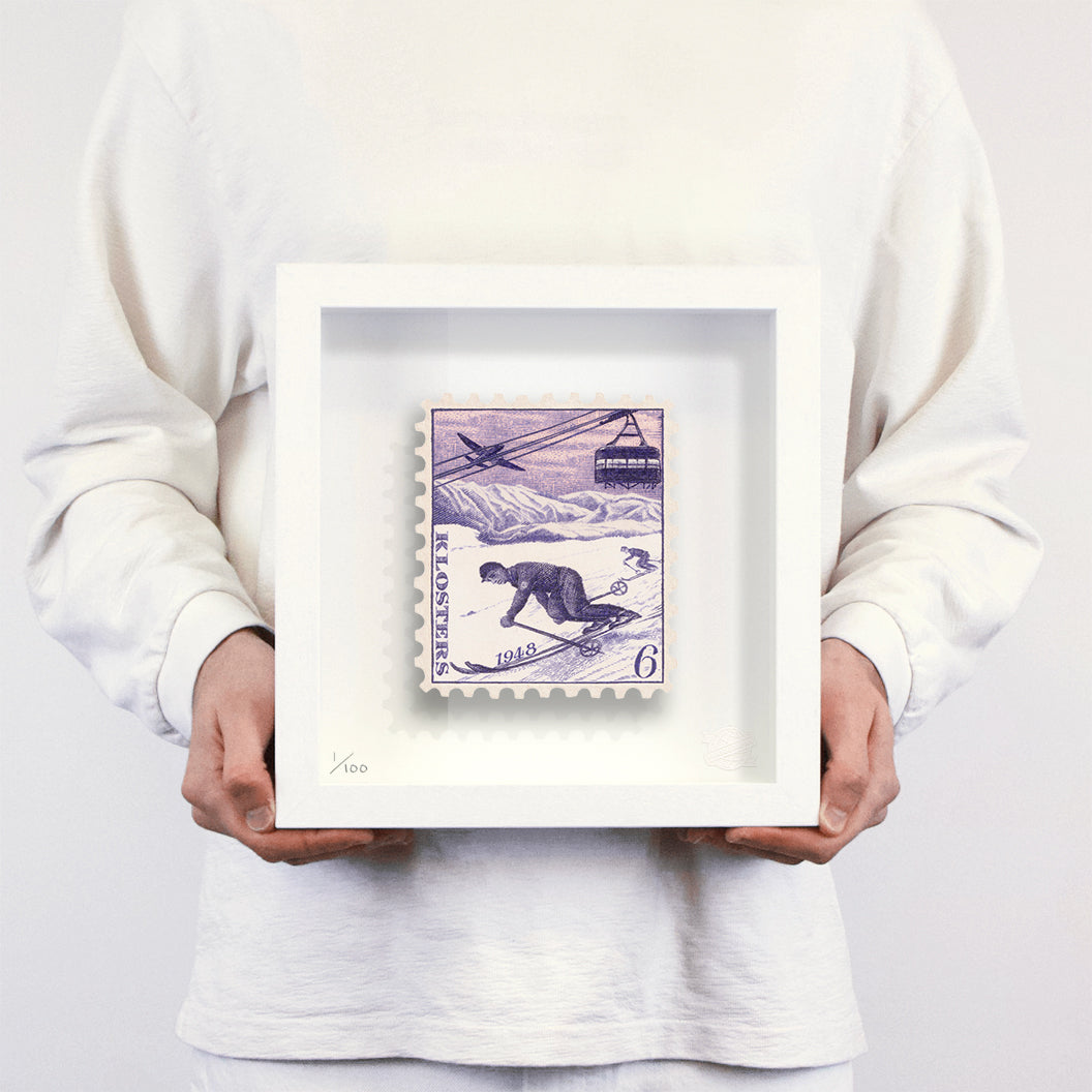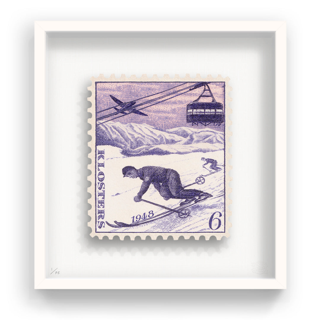 Each artwork by Guy Gee has been digitally reimagined from an original postage stamp. Printed on archival mount board, the artwork is then float mounted and editioned. Finally the stamp is housed in one of the studio’s bespoke made box frames by the team.