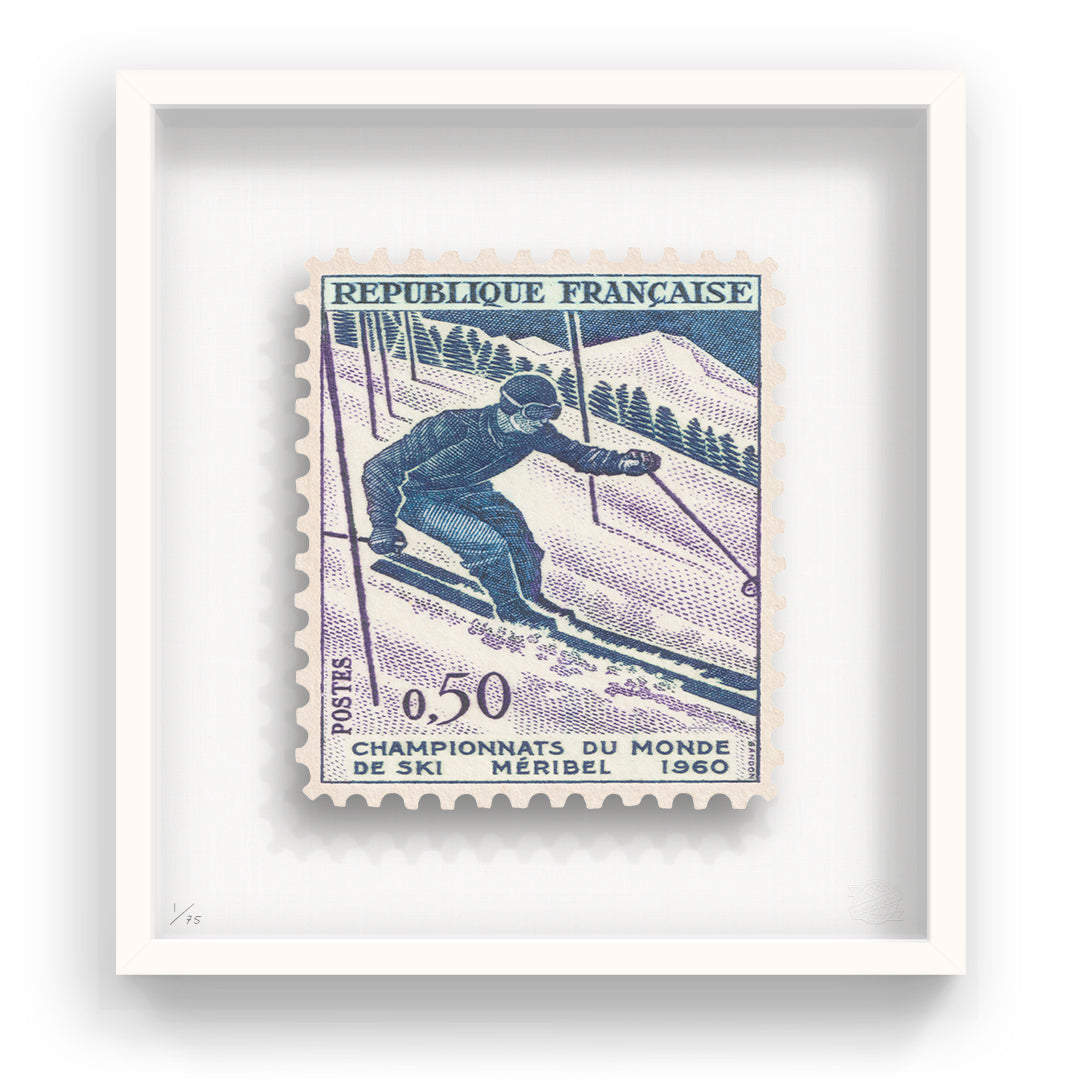 Each artwork by Guy Gee has been digitally reimagined from an original postage stamp. Printed on archival mount board, the artwork is then float mounted and editioned. Finally the stamp is housed in one of the studio’s bespoke made box frames by the team.
