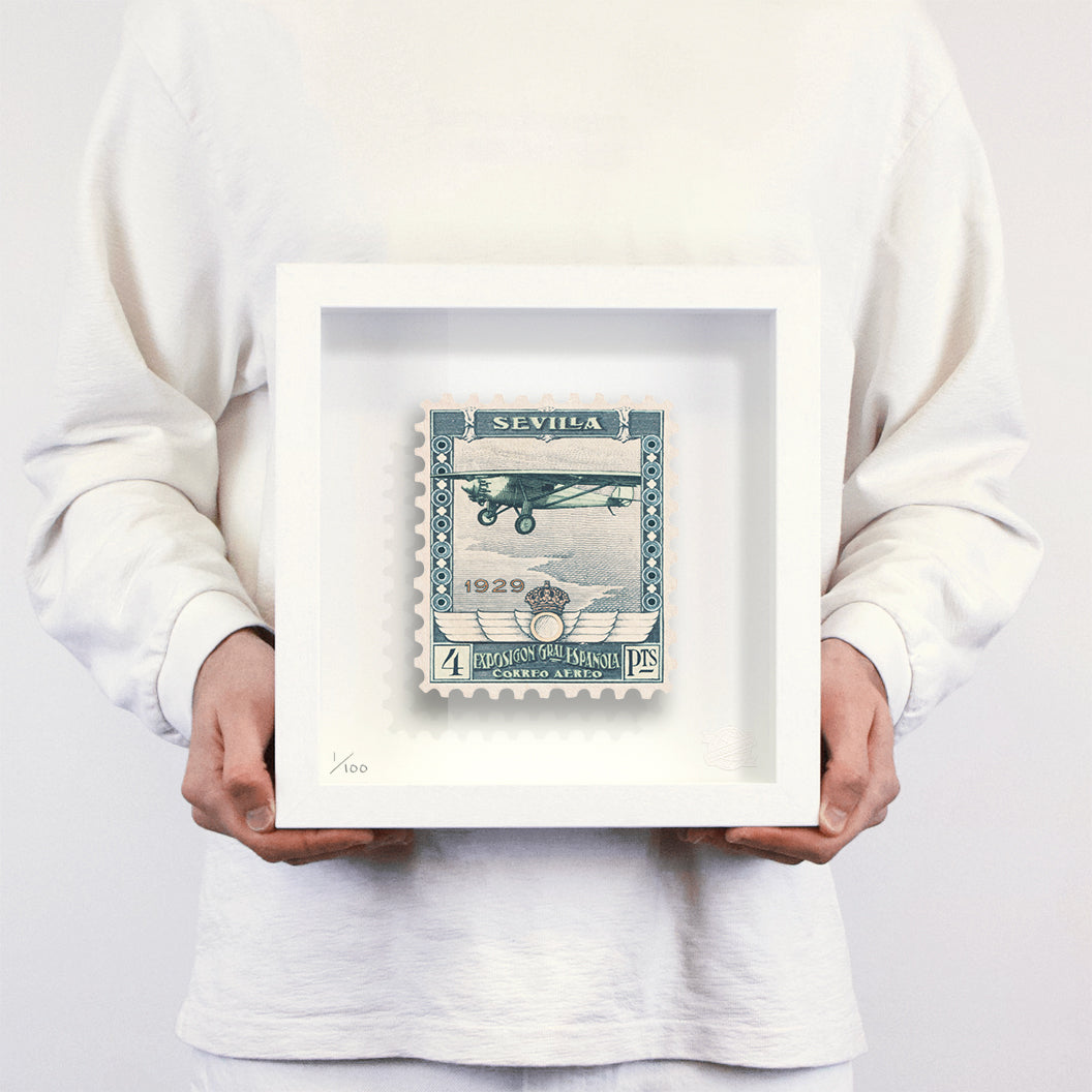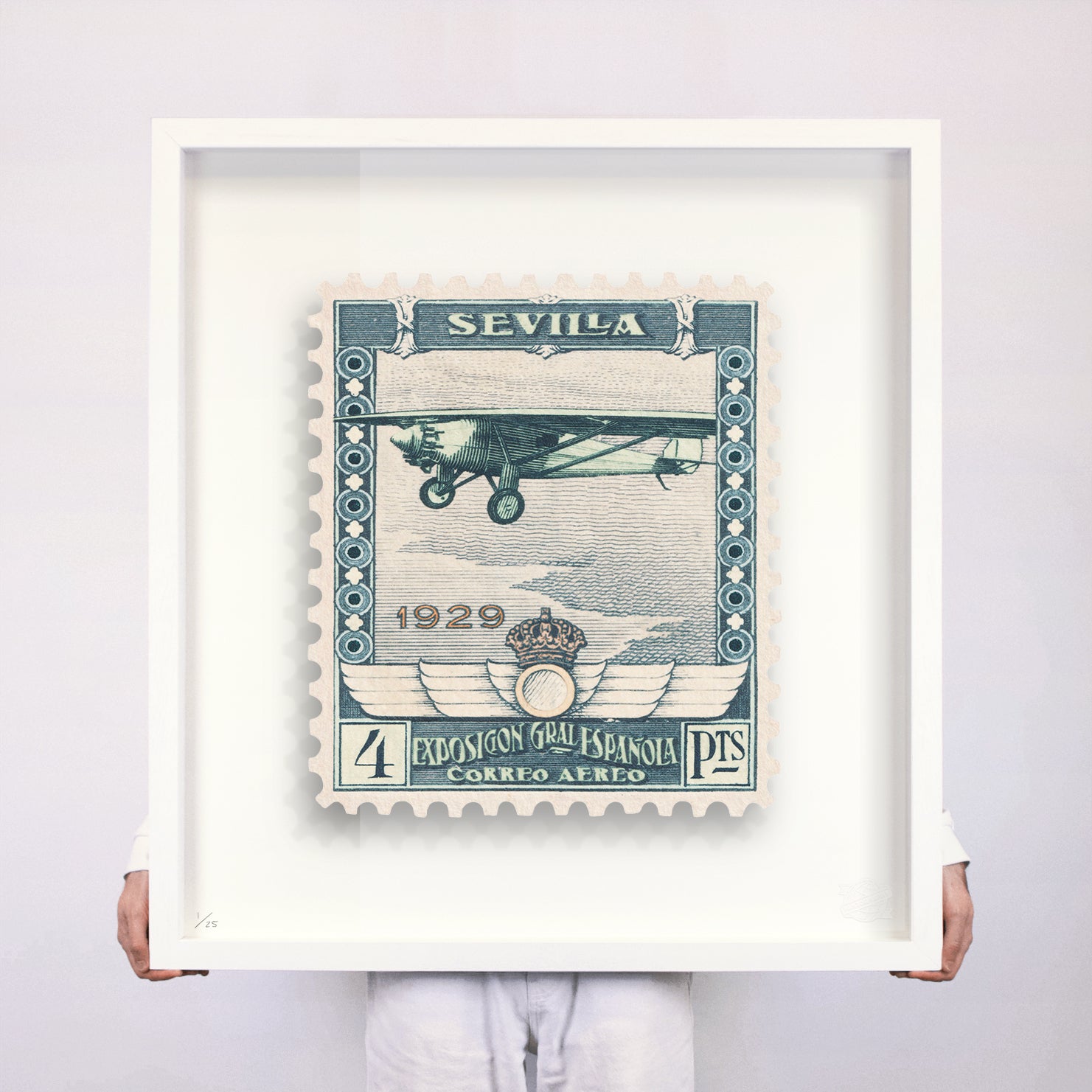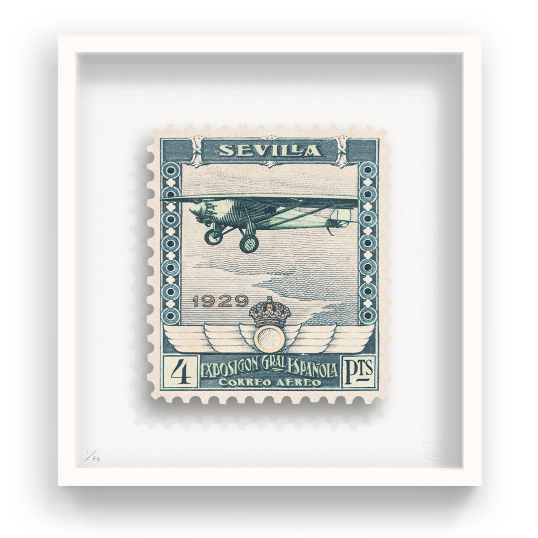 Each artwork by Guy Gee has been digitally reimagined from an original postage stamp. Printed on archival mount board, the artwork is then float mounted and editioned. Finally the stamp is housed in one of the studio’s bespoke made box frames by the team.
