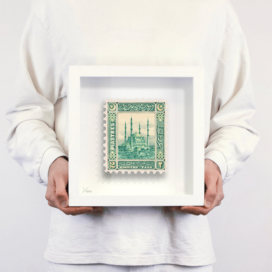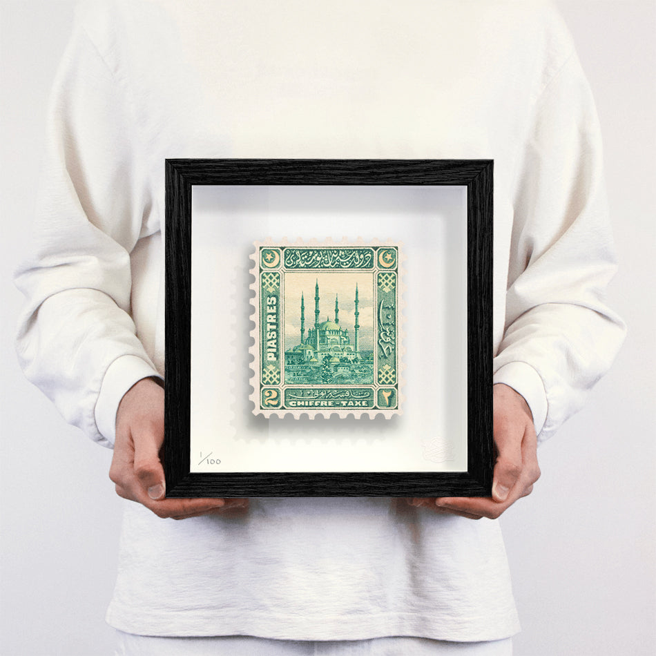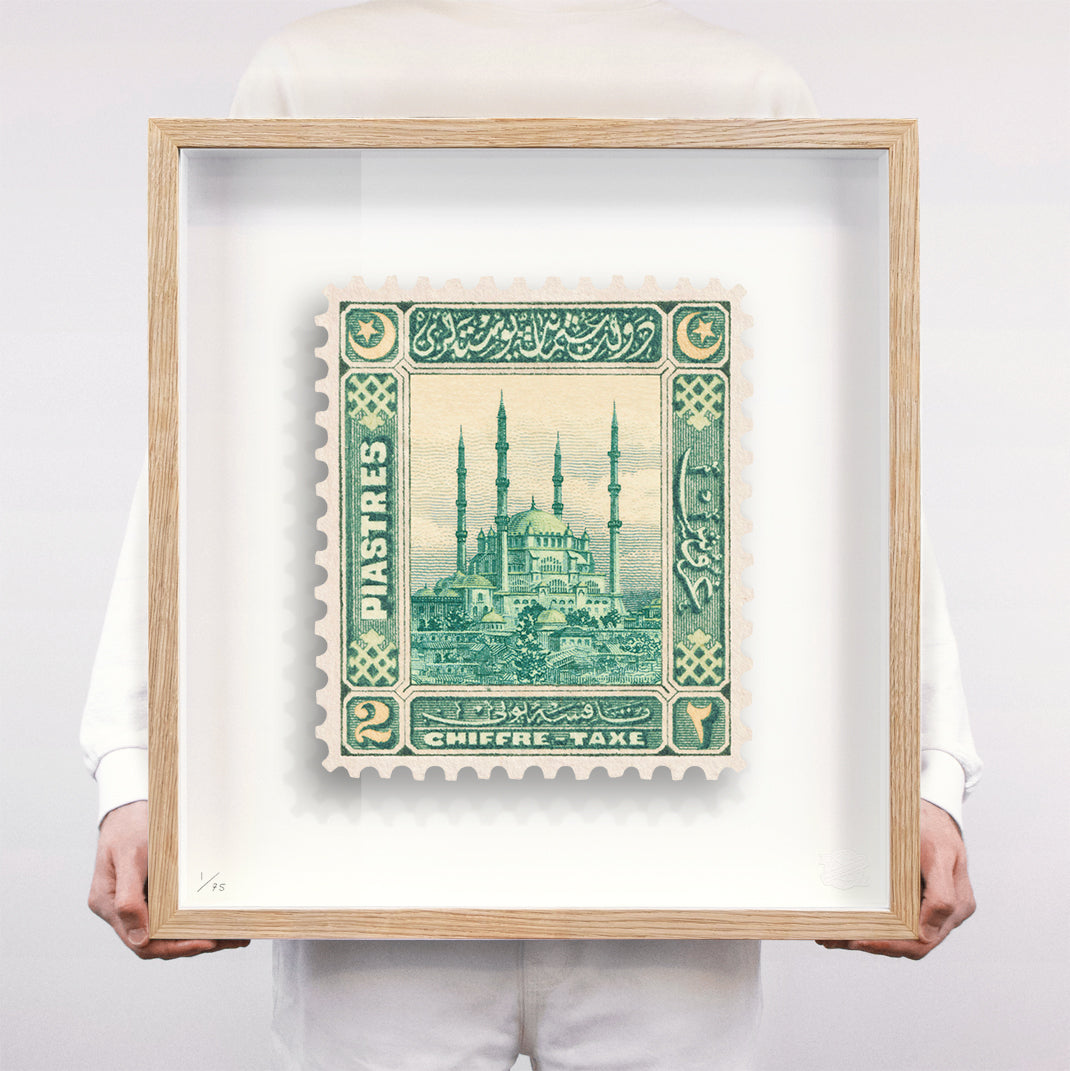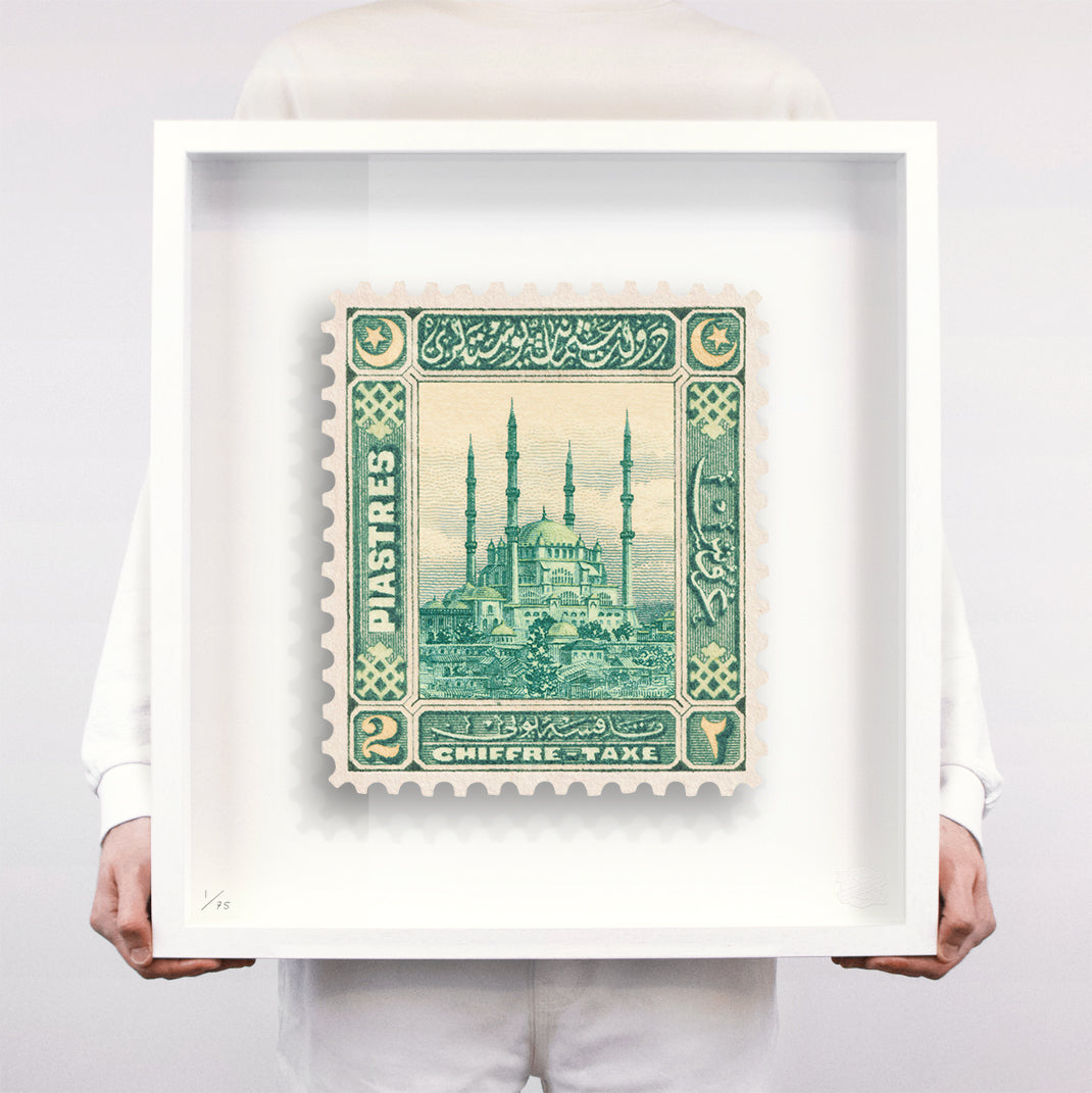 Each artwork by Guy Gee has been digitally reimagined from an original postage stamp. Printed on archival mount board, the artwork is then float mounted and editioned. Finally the stamp is housed in one of the studio’s bespoke made box frames by the team.