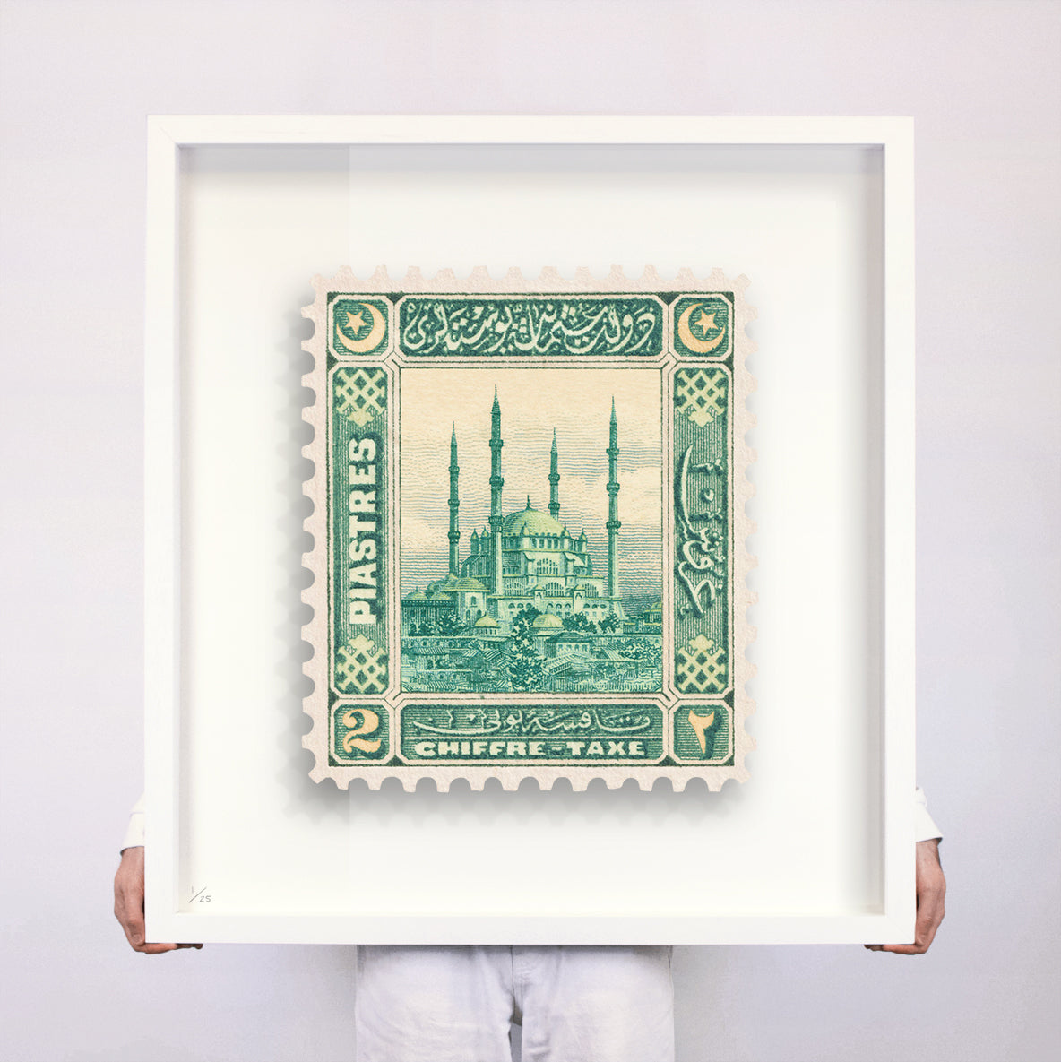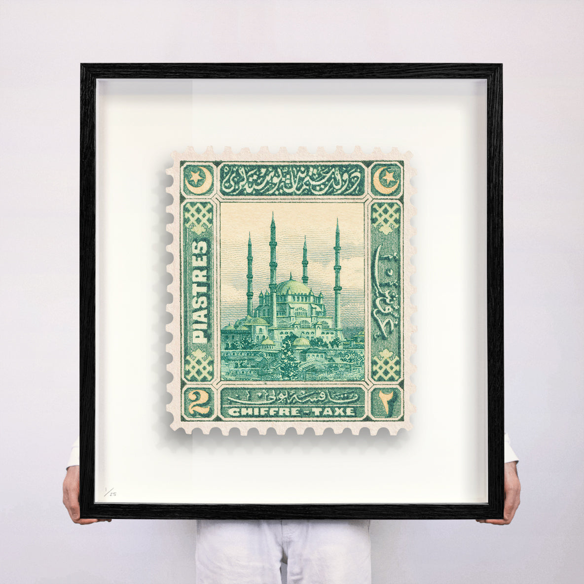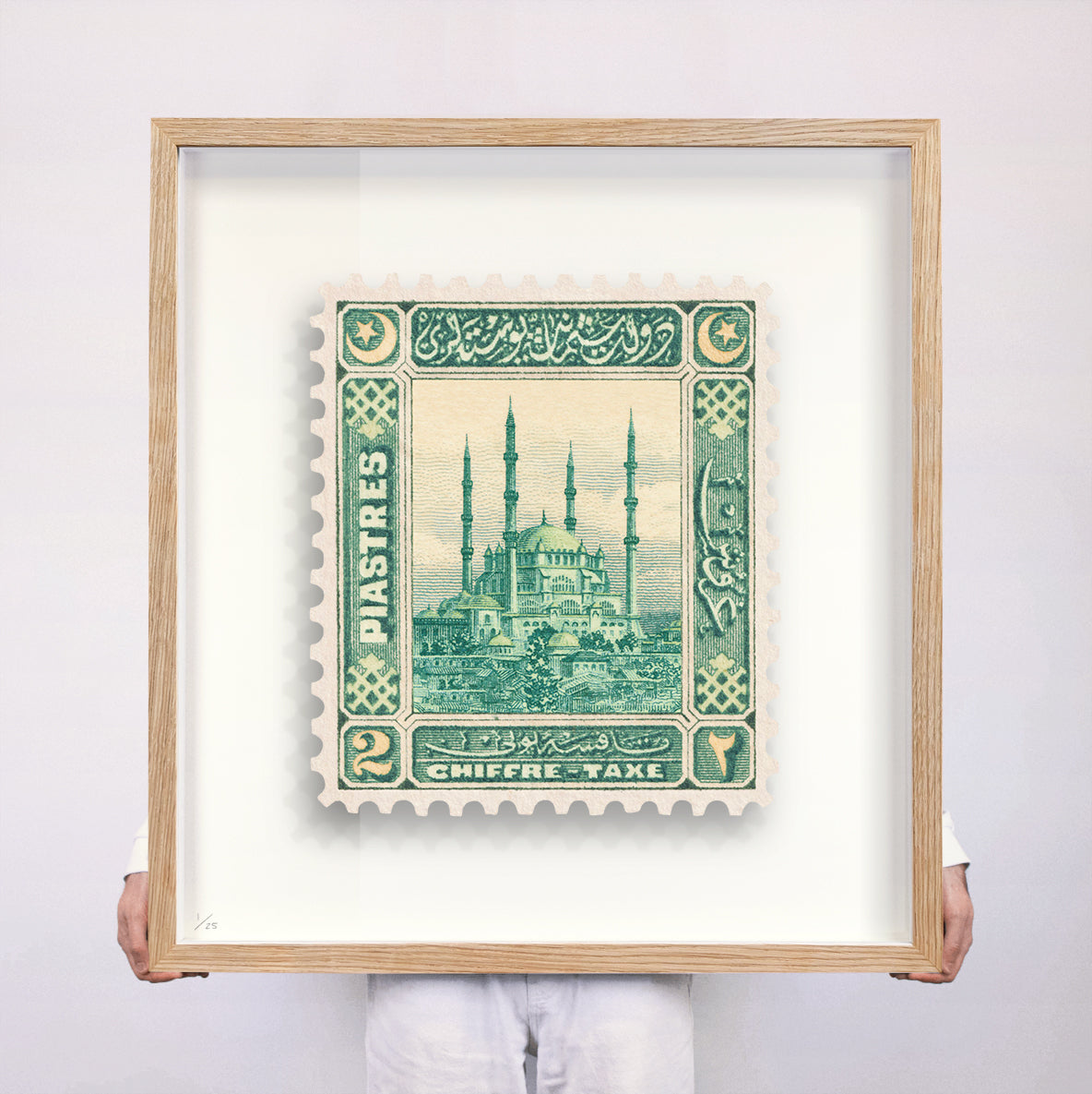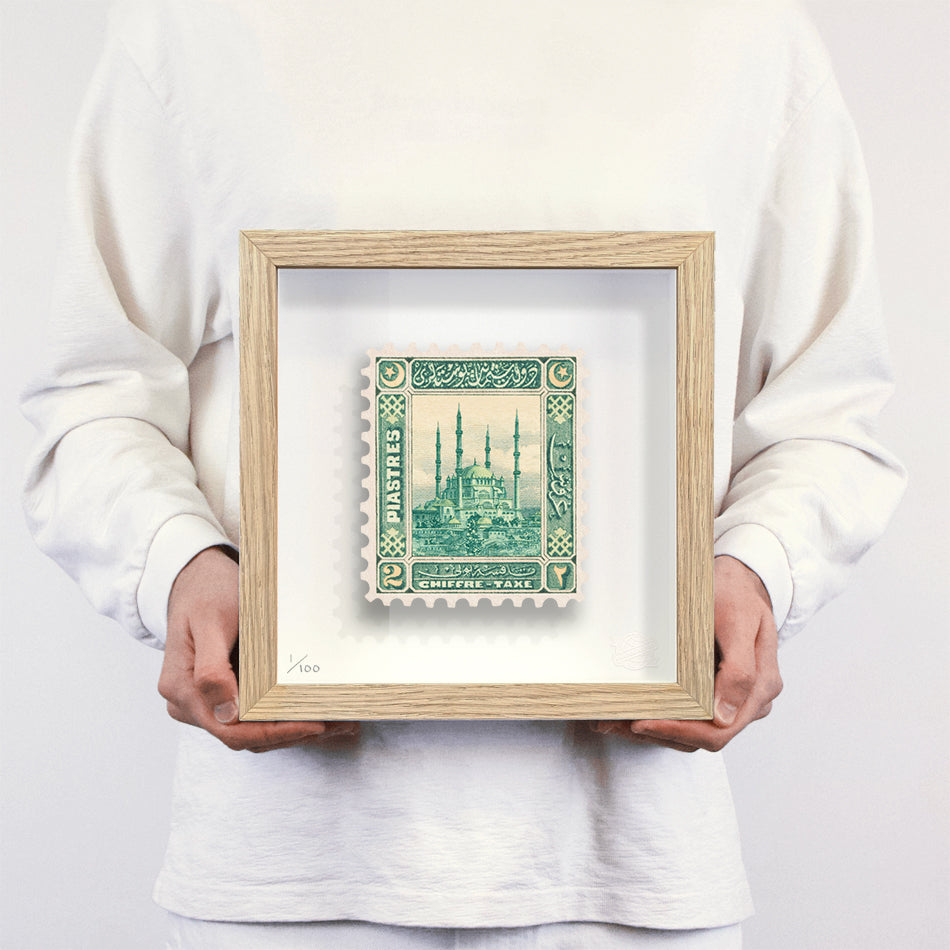 Each artwork by Guy Gee has been digitally reimagined from an original postage stamp. Printed on archival mount board, the artwork is then float mounted and editioned. Finally the stamp is housed in one of the studio’s bespoke made box frames by the team.