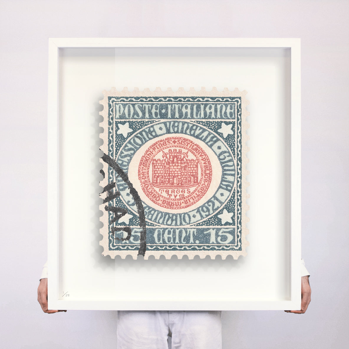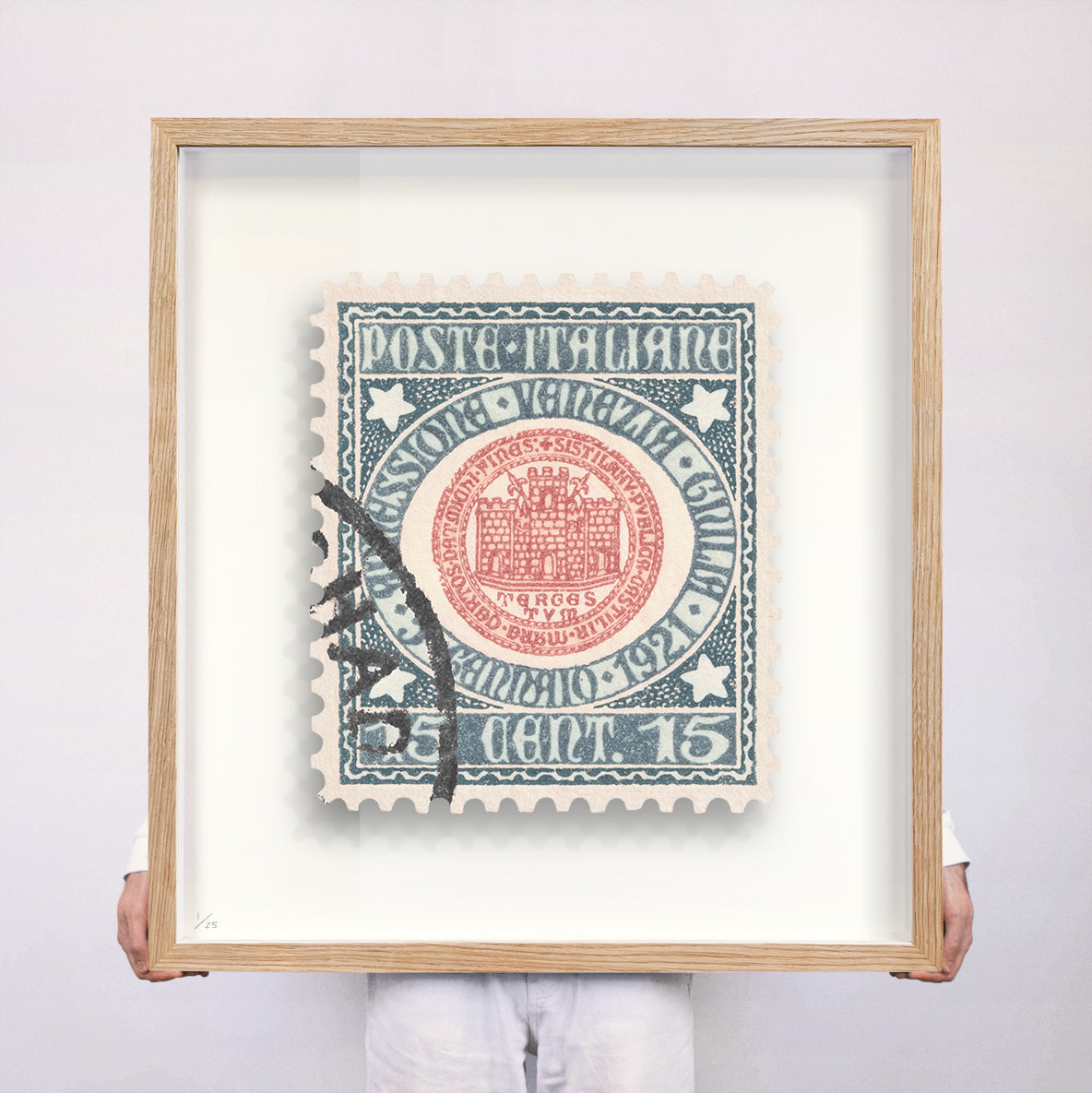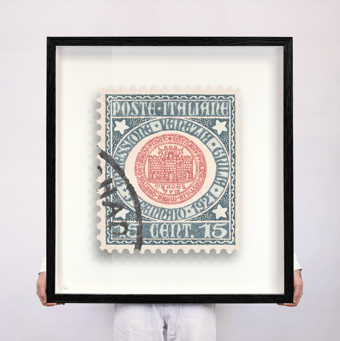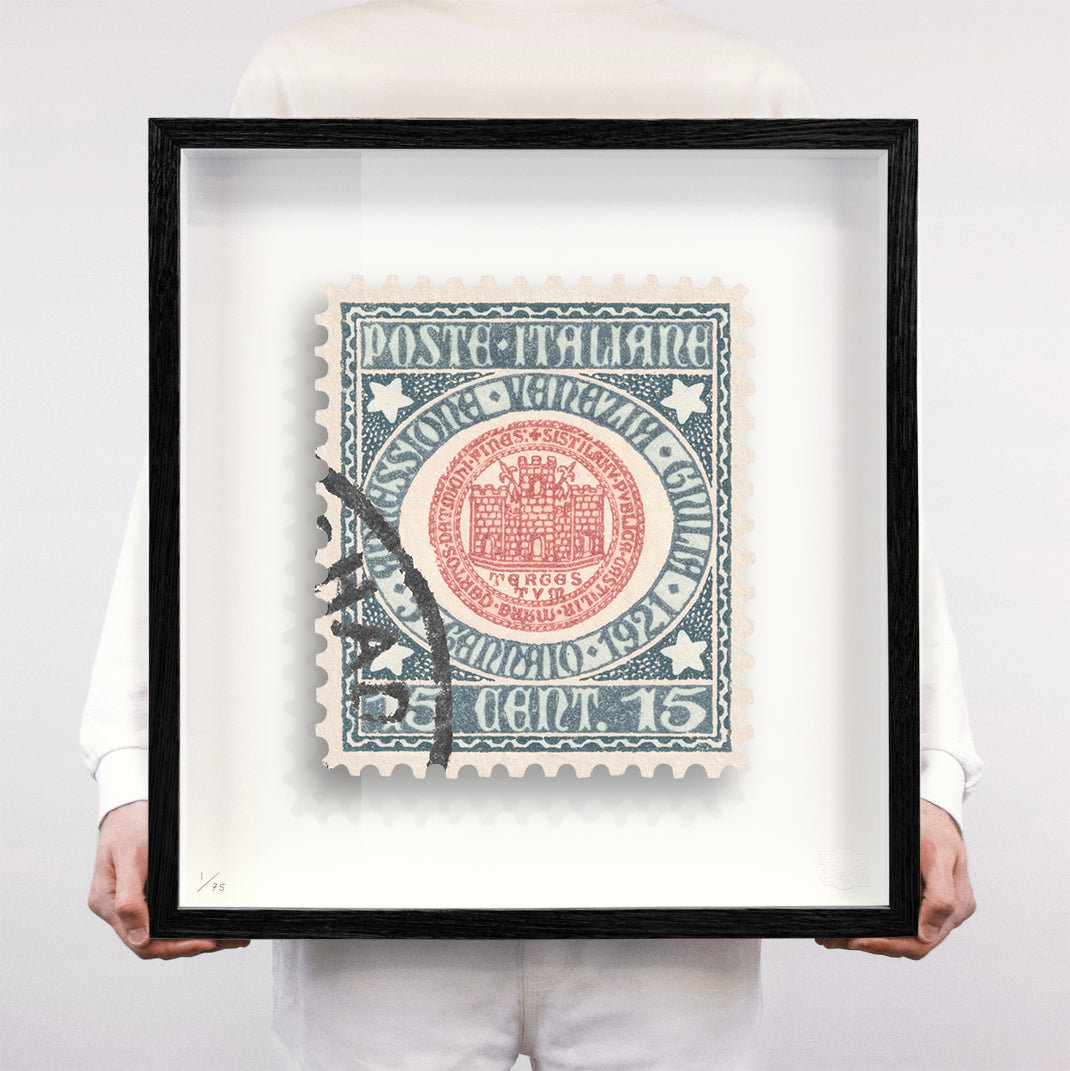 Each artwork by Guy Gee has been digitally reimagined from an original postage stamp. Printed on archival mount board, the artwork is then float mounted and editioned. Finally the stamp is housed in one of the studio’s bespoke made box frames by the team.