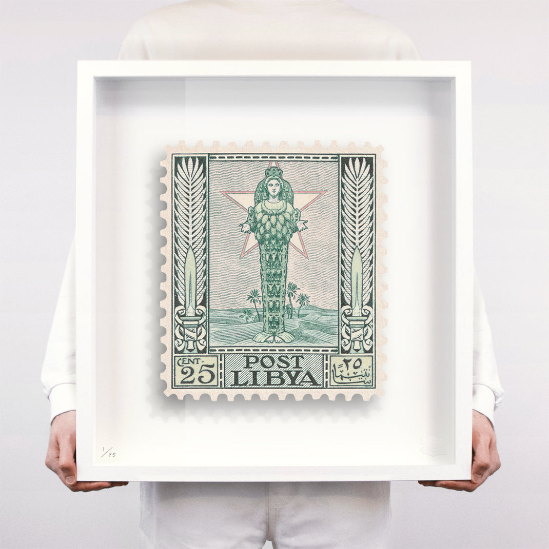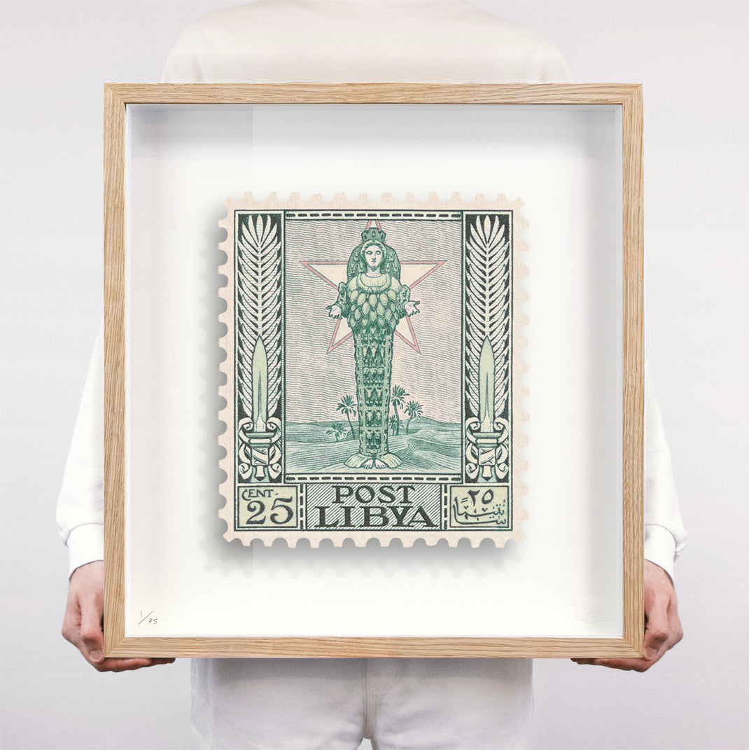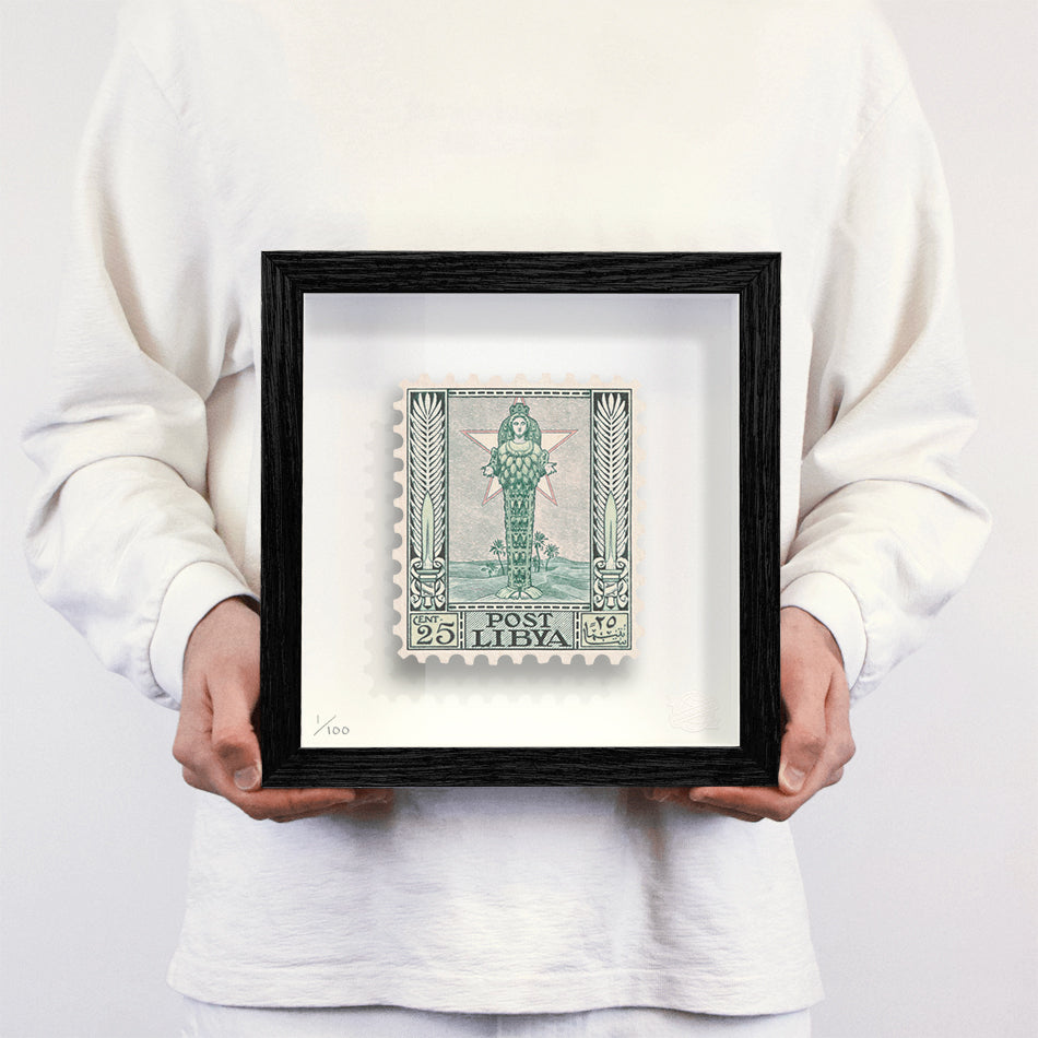 Each artwork by Guy Gee has been digitally reimagined from an original postage stamp. Printed on archival mount board, the artwork is then float mounted and editioned. Finally the stamp is housed in one of the studio’s bespoke made box frames by the team.