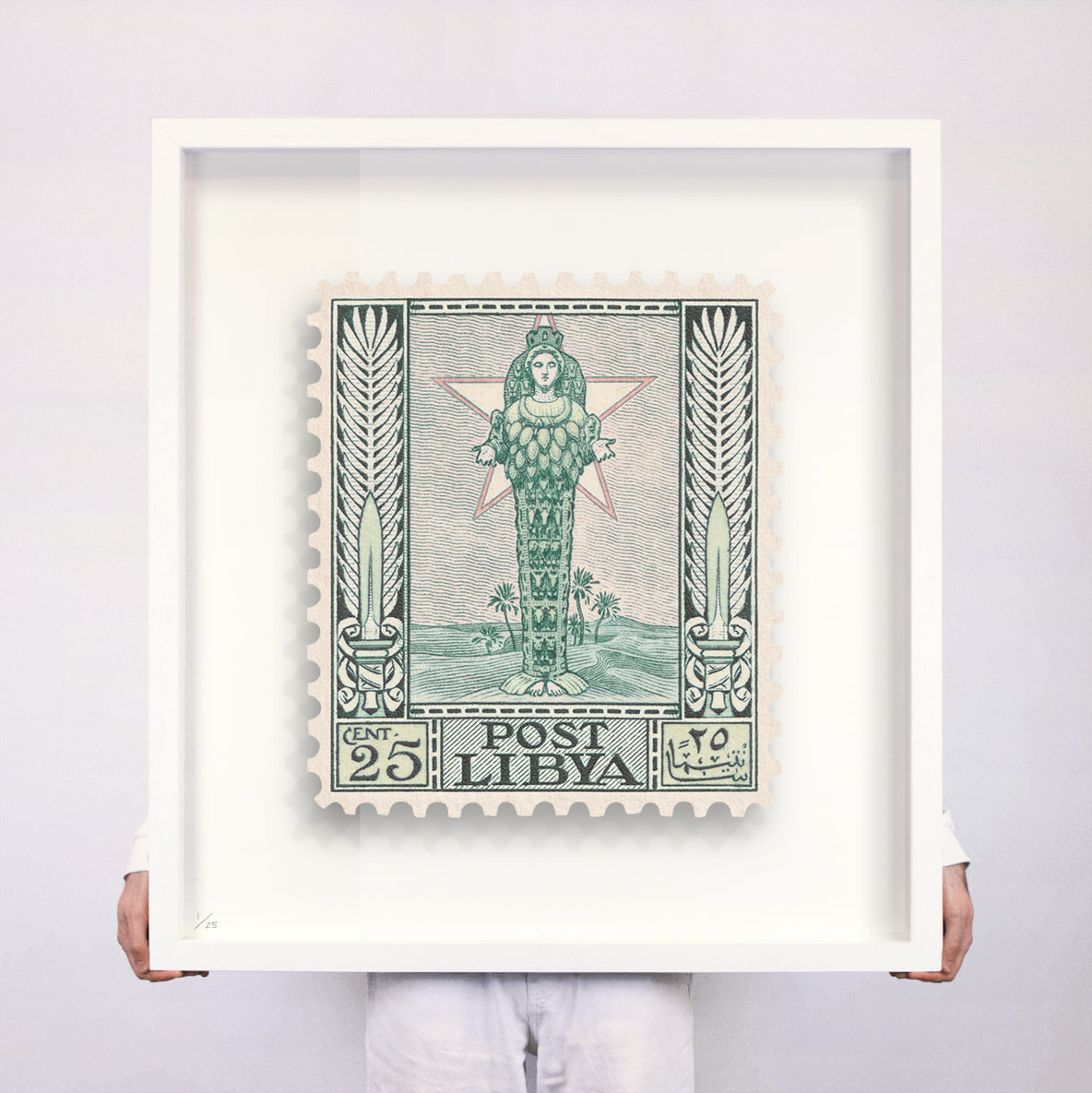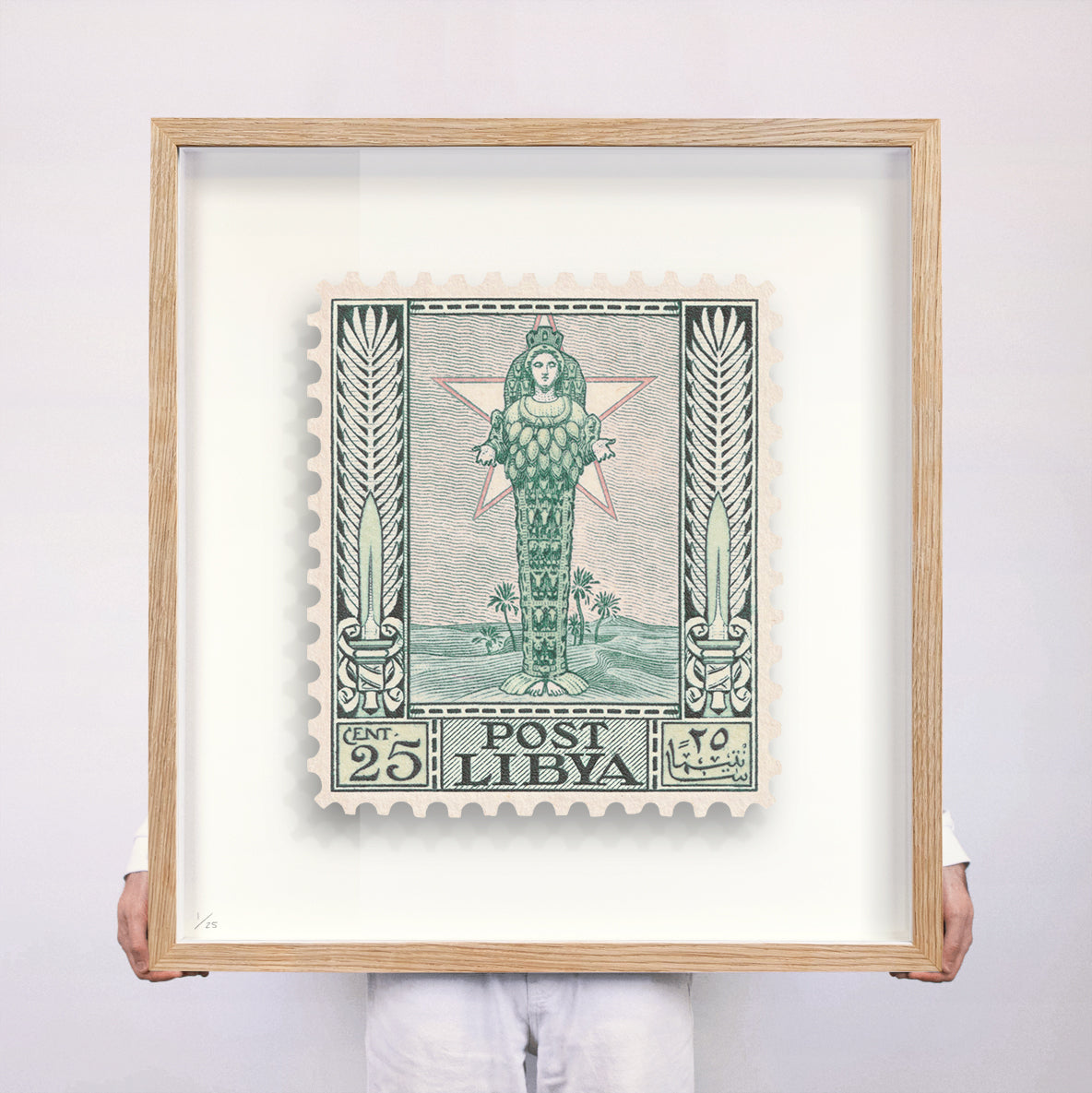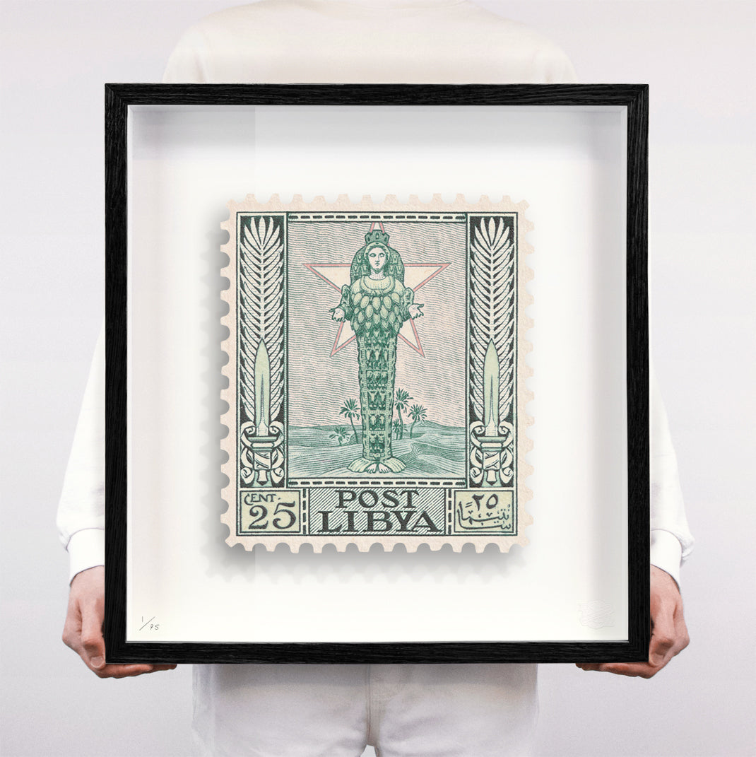 Each artwork by Guy Gee has been digitally reimagined from an original postage stamp. Printed on archival mount board, the artwork is then float mounted and editioned. Finally the stamp is housed in one of the studio’s bespoke made box frames by the team.