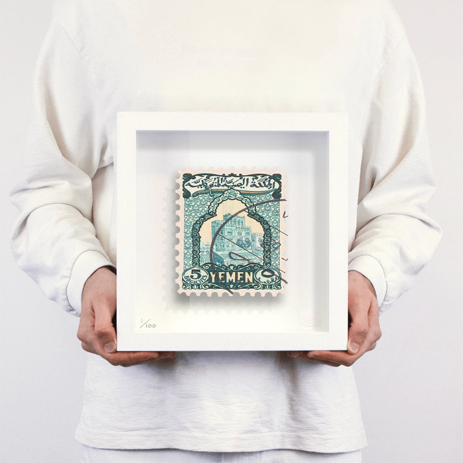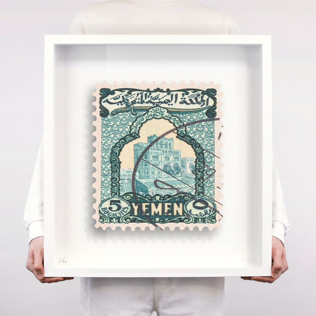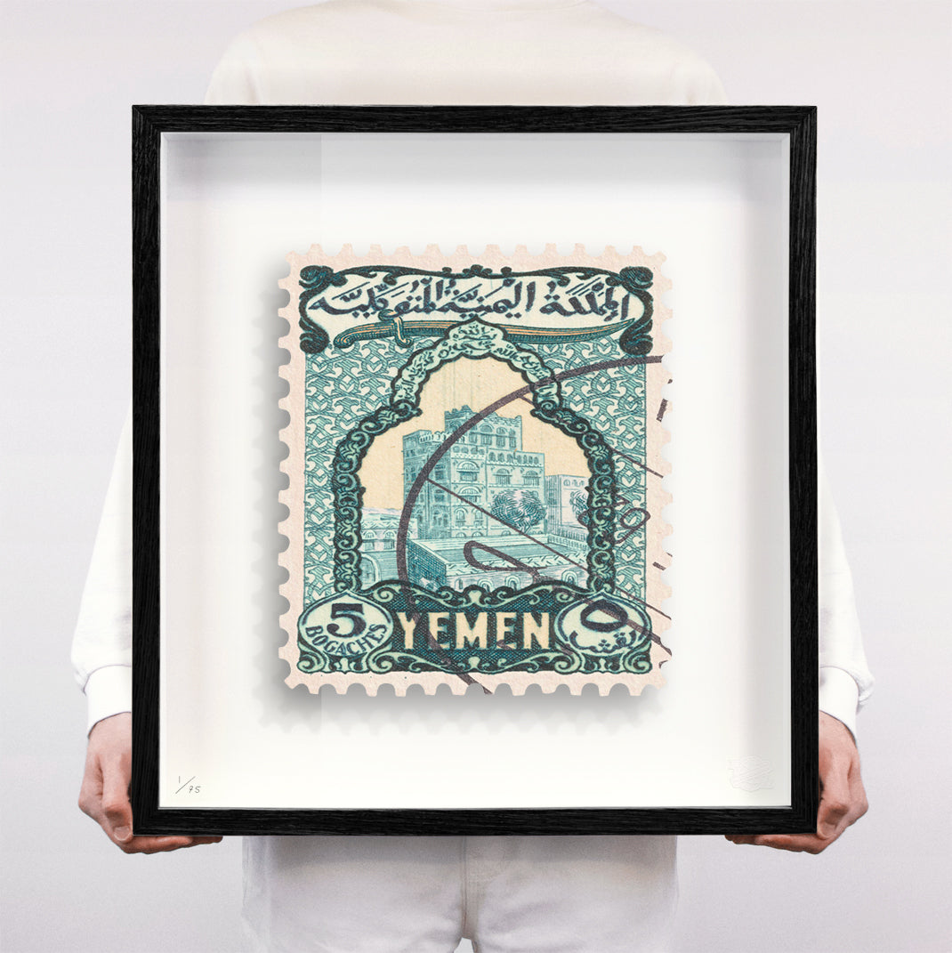 Each artwork by Guy Gee has been digitally reimagined from an original postage stamp. Printed on archival mount board, the artwork is then float mounted and editioned. Finally the stamp is housed in one of the studio’s bespoke made box frames by the team.