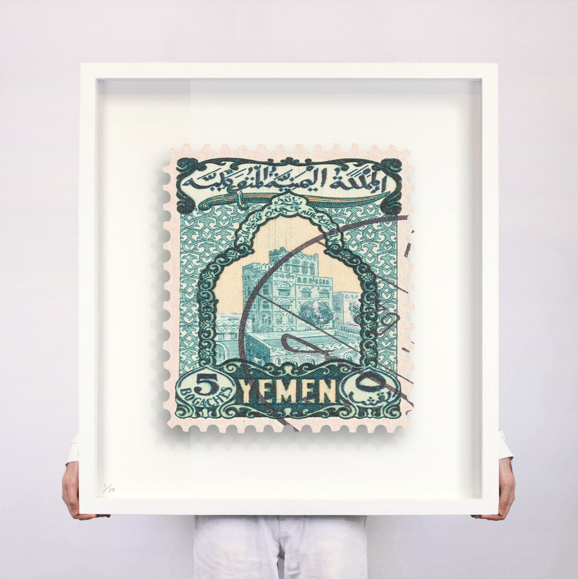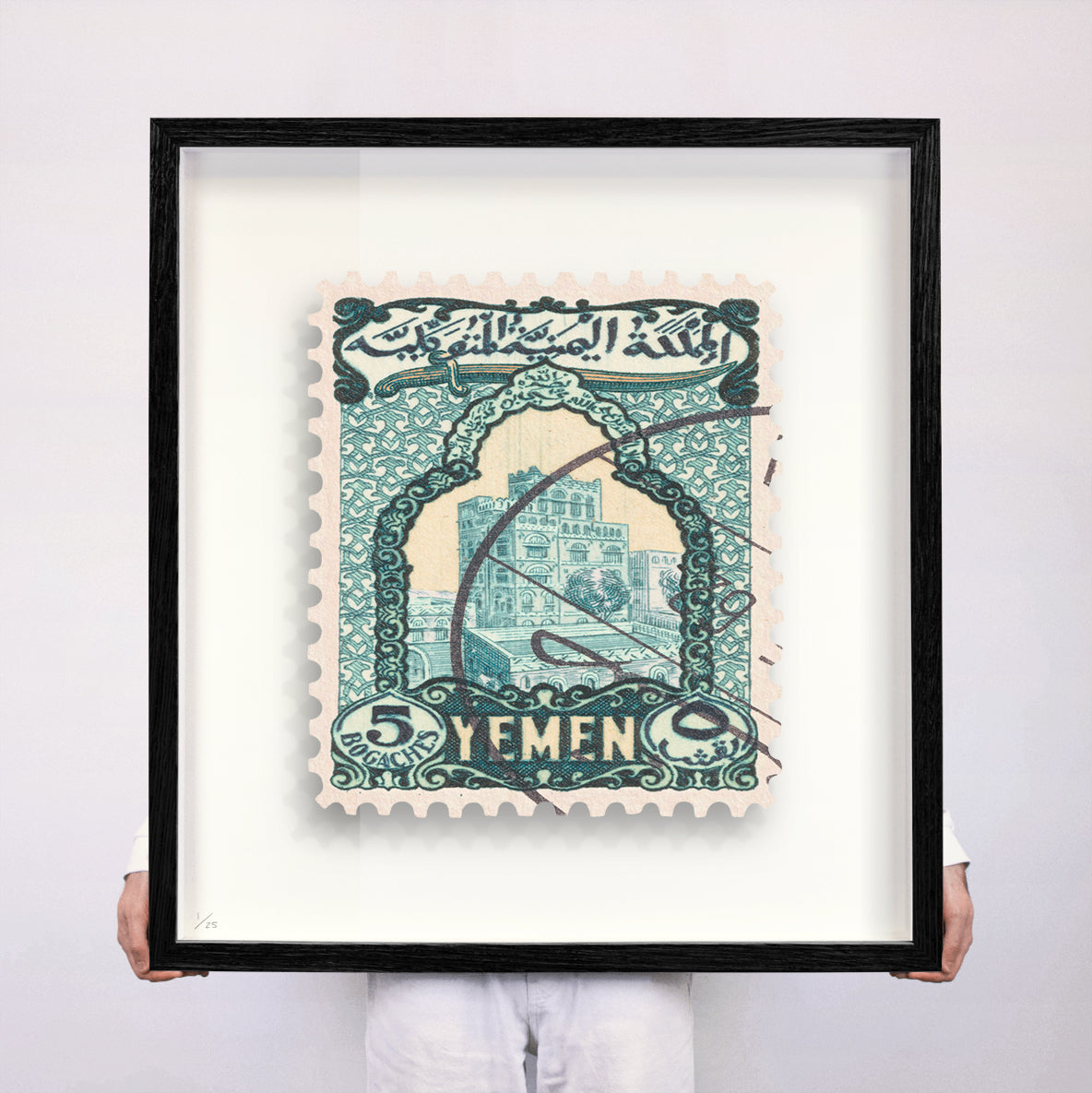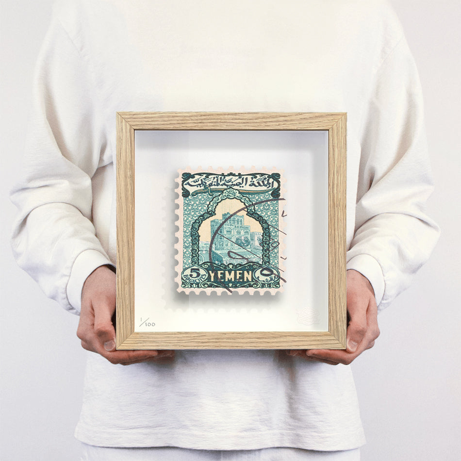 Each artwork by Guy Gee has been digitally reimagined from an original postage stamp. Printed on archival mount board, the artwork is then float mounted and editioned. Finally the stamp is housed in one of the studio’s bespoke made box frames by the team.