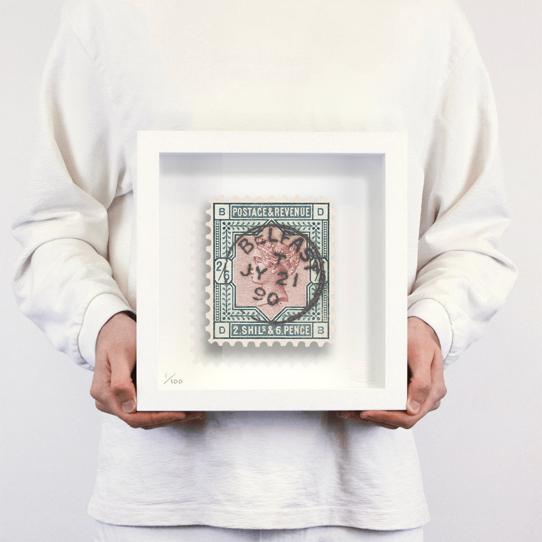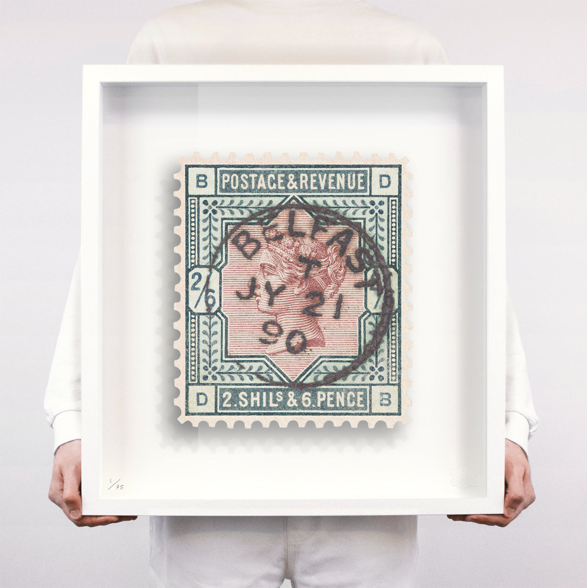 Each artwork by Guy Gee has been digitally reimagined from an original postage stamp. Printed on archival mount board, the artwork is then float mounted and editioned. Finally the stamp is housed in one of the studio’s bespoke made box frames by the team.