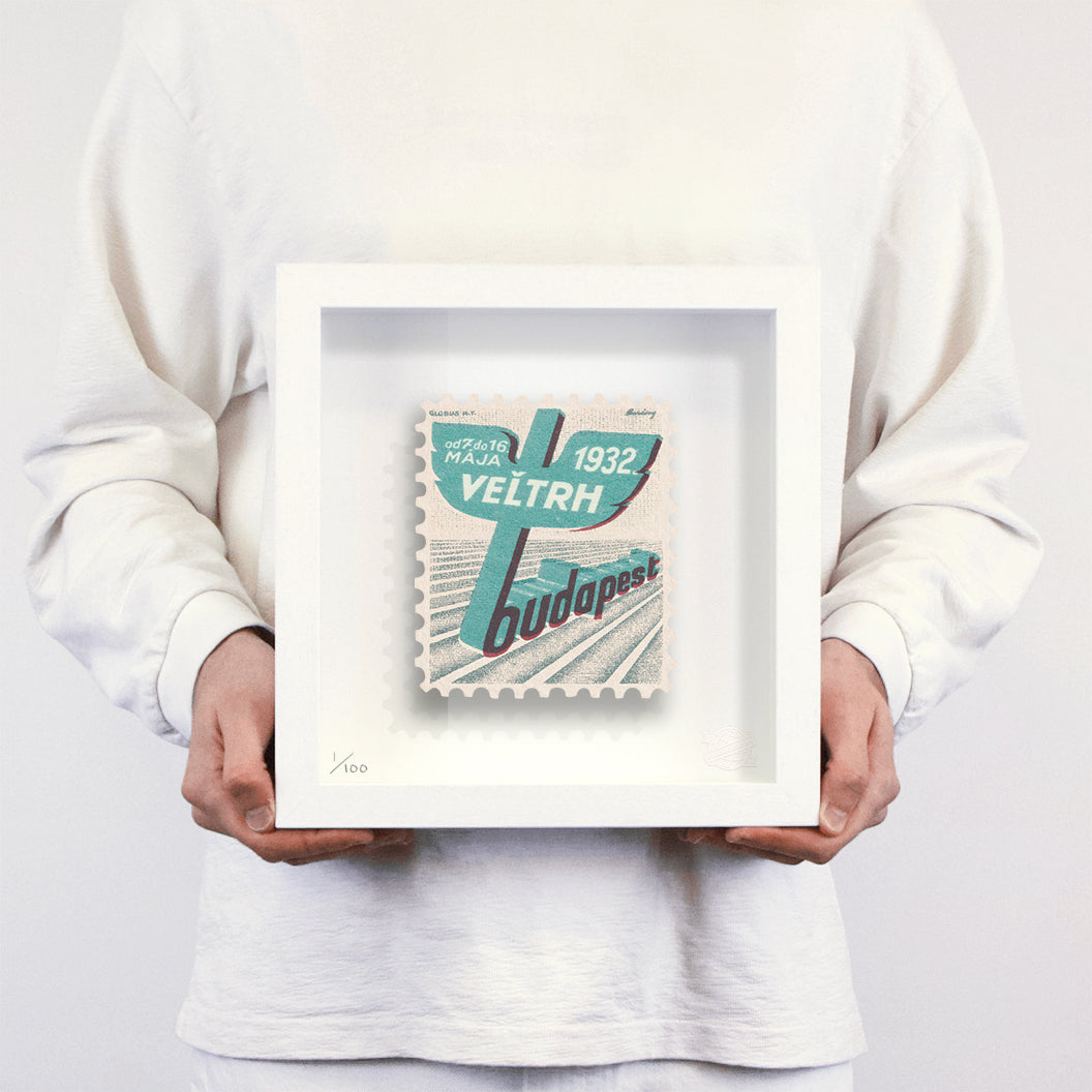 Each artwork by Guy Gee has been digitally reimagined from an original postage stamp. Printed on archival mount board, the artwork is then float mounted and editioned. Finally the stamp is housed in one of the studio’s bespoke made box frames by the team.