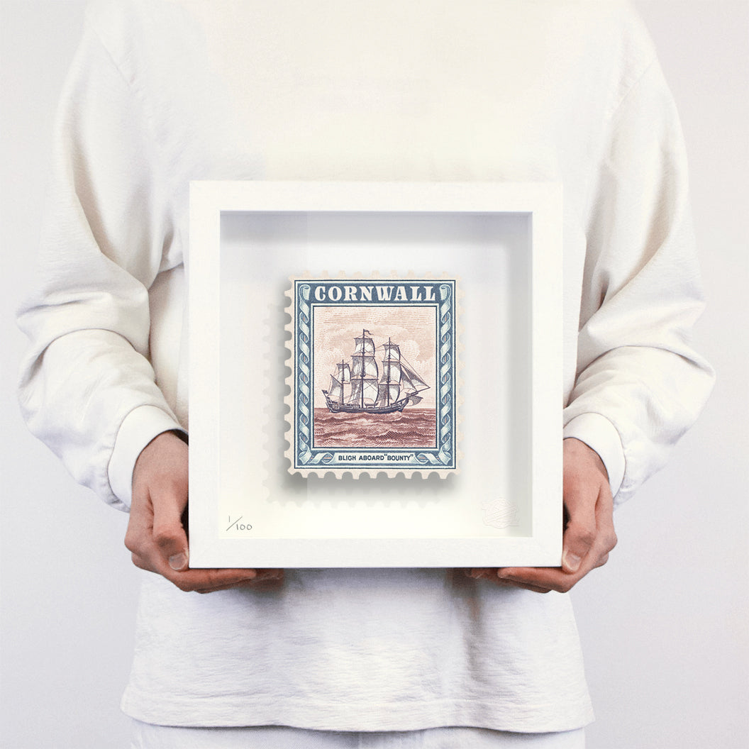 Each artwork by Guy Gee has been digitally reimagined from an original postage stamp. Printed on archival mount board, the artwork is then float mounted and editioned. Finally the stamp is housed in one of the studio’s bespoke made box frames by the team.