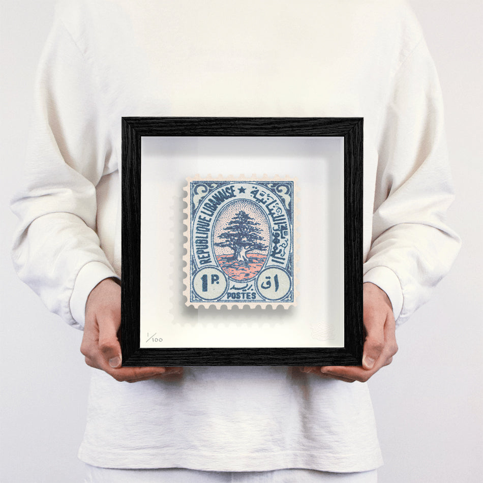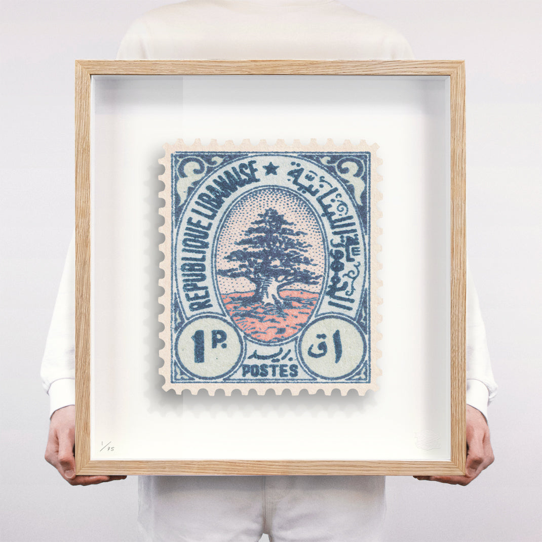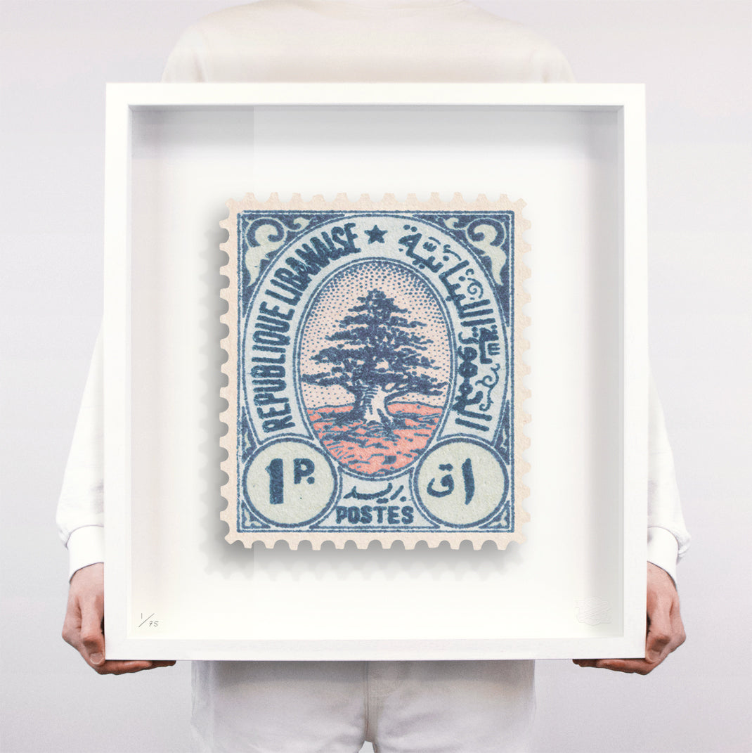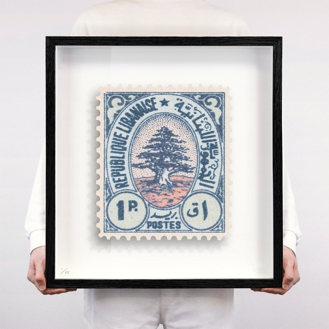 Each artwork by Guy Gee has been digitally reimagined from an original postage stamp. Printed on archival mount board, the artwork is then float mounted and editioned. Finally the stamp is housed in one of the studio’s bespoke made box frames by the team.