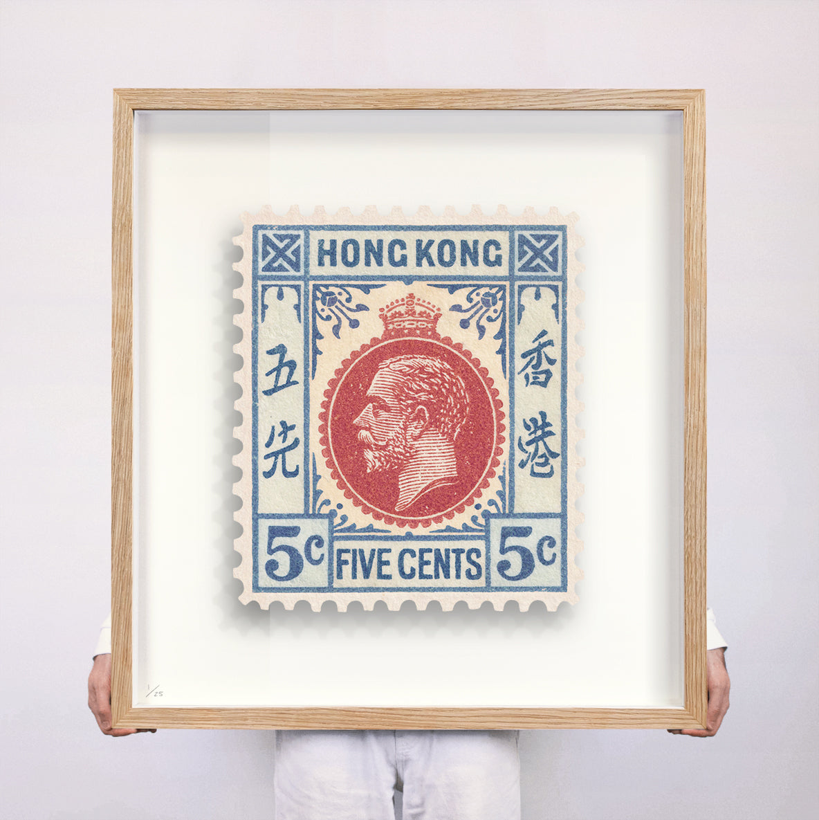 Each artwork by Guy Gee has been digitally reimagined from an original postage stamp. Printed on archival mount board, the artwork is then float mounted and editioned. Finally the stamp is housed in one of the studio’s bespoke made box frames by the team.