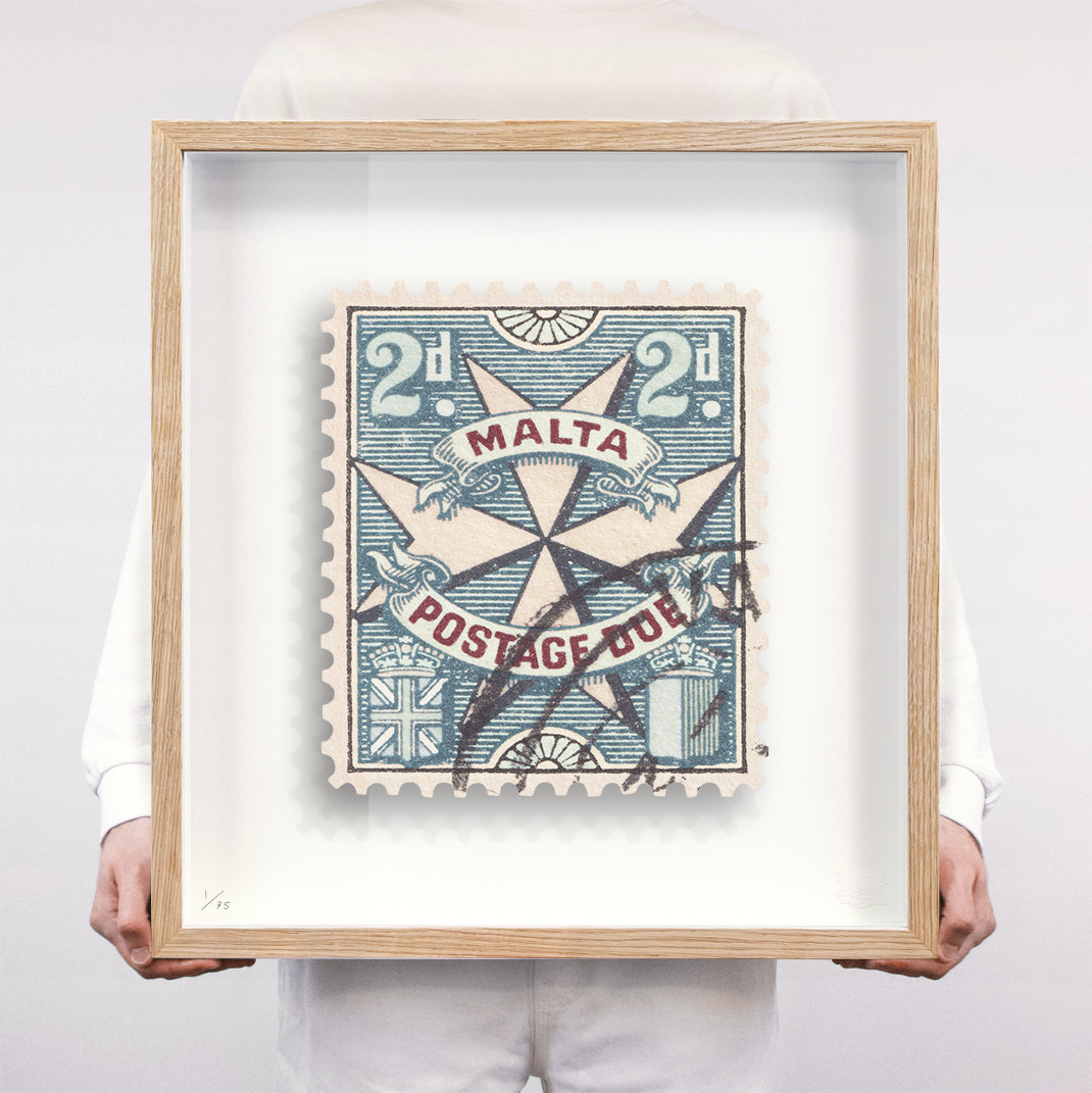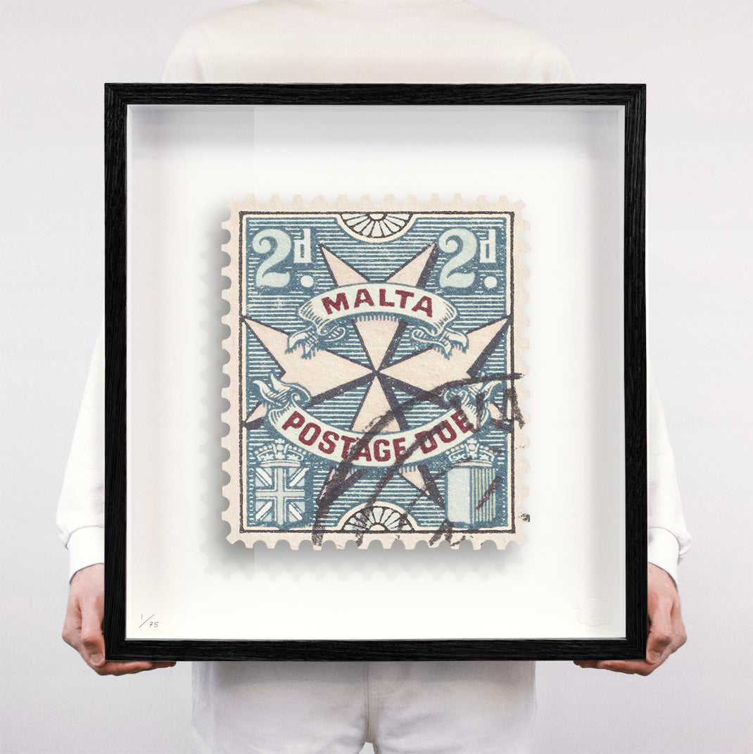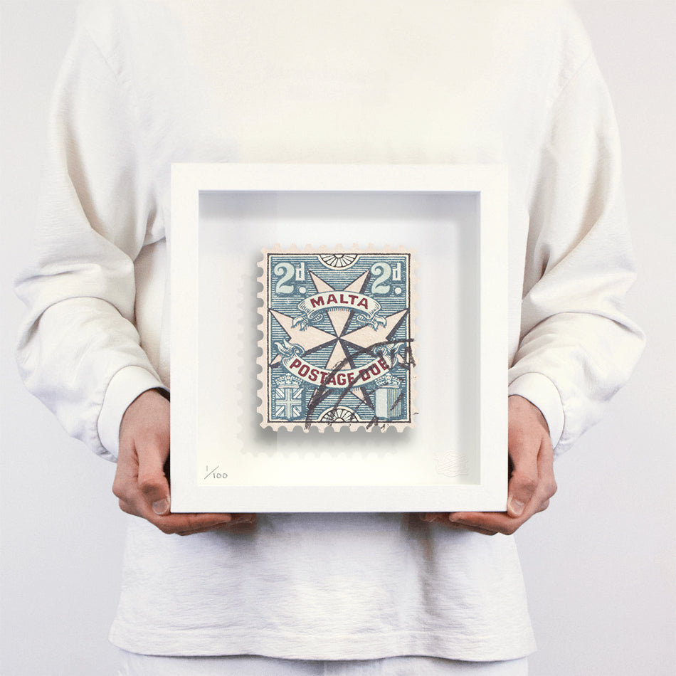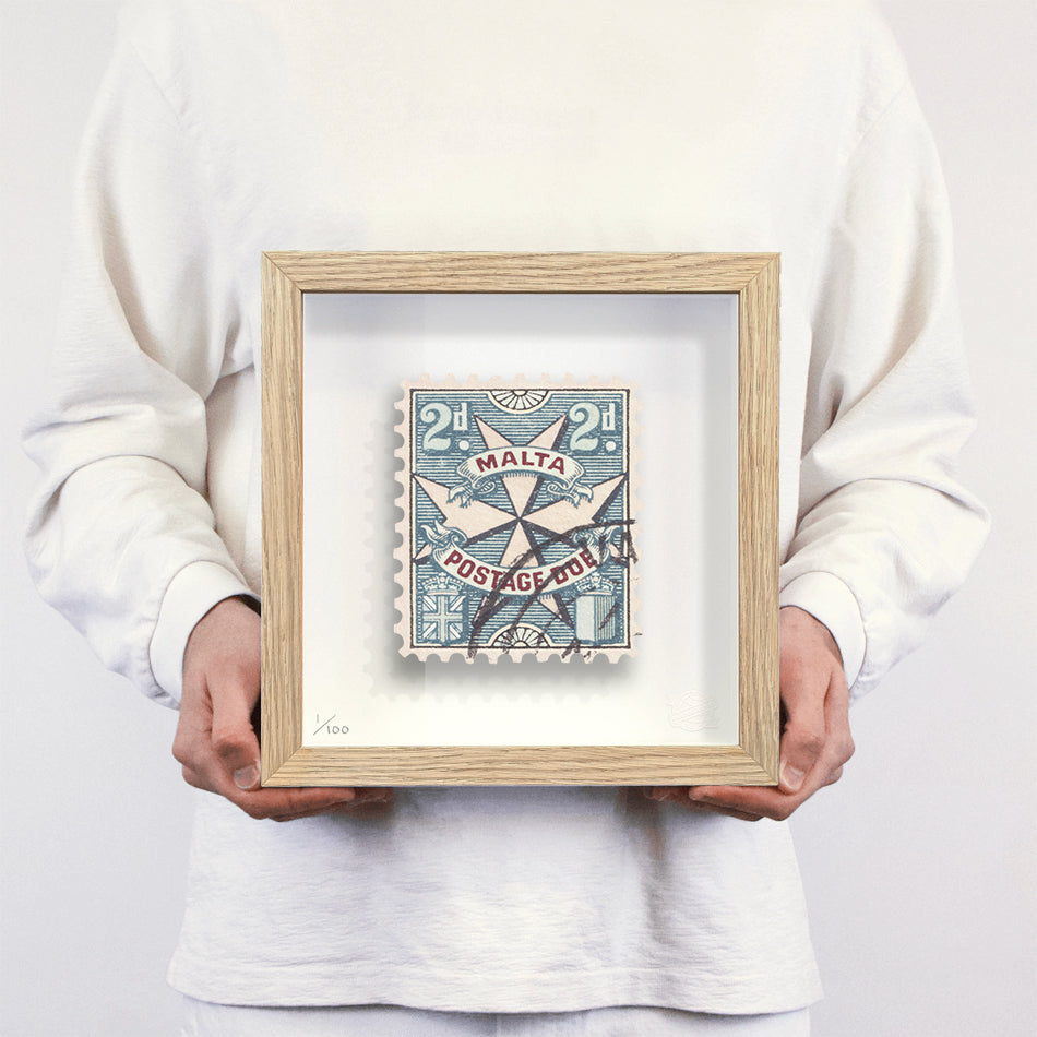 Each artwork by Guy Gee has been digitally reimagined from an original postage stamp. Printed on archival mount board, the artwork is then float mounted and editioned. Finally the stamp is housed in one of the studio’s bespoke made box frames by the team.