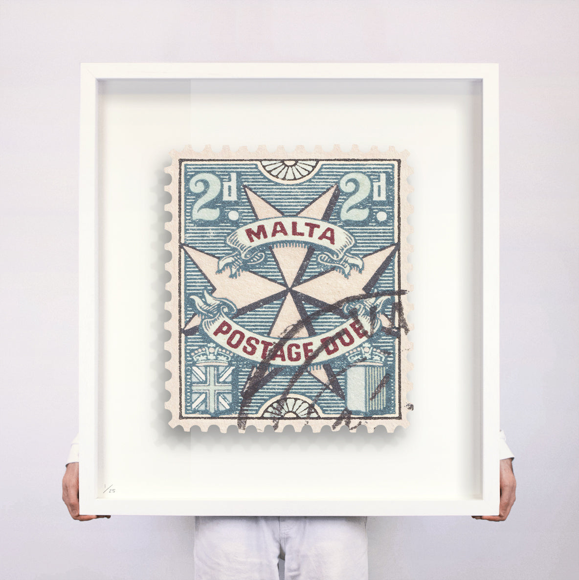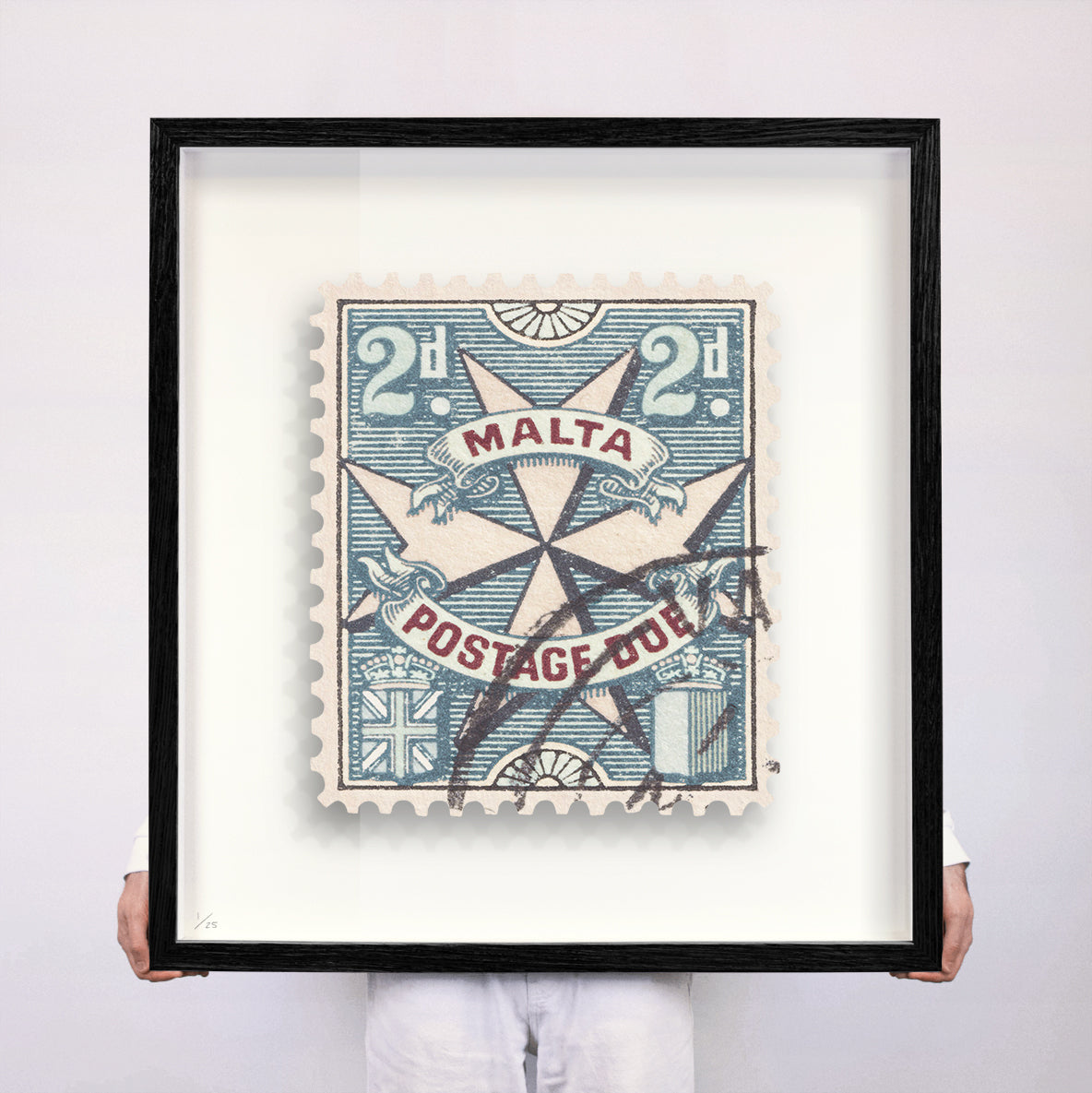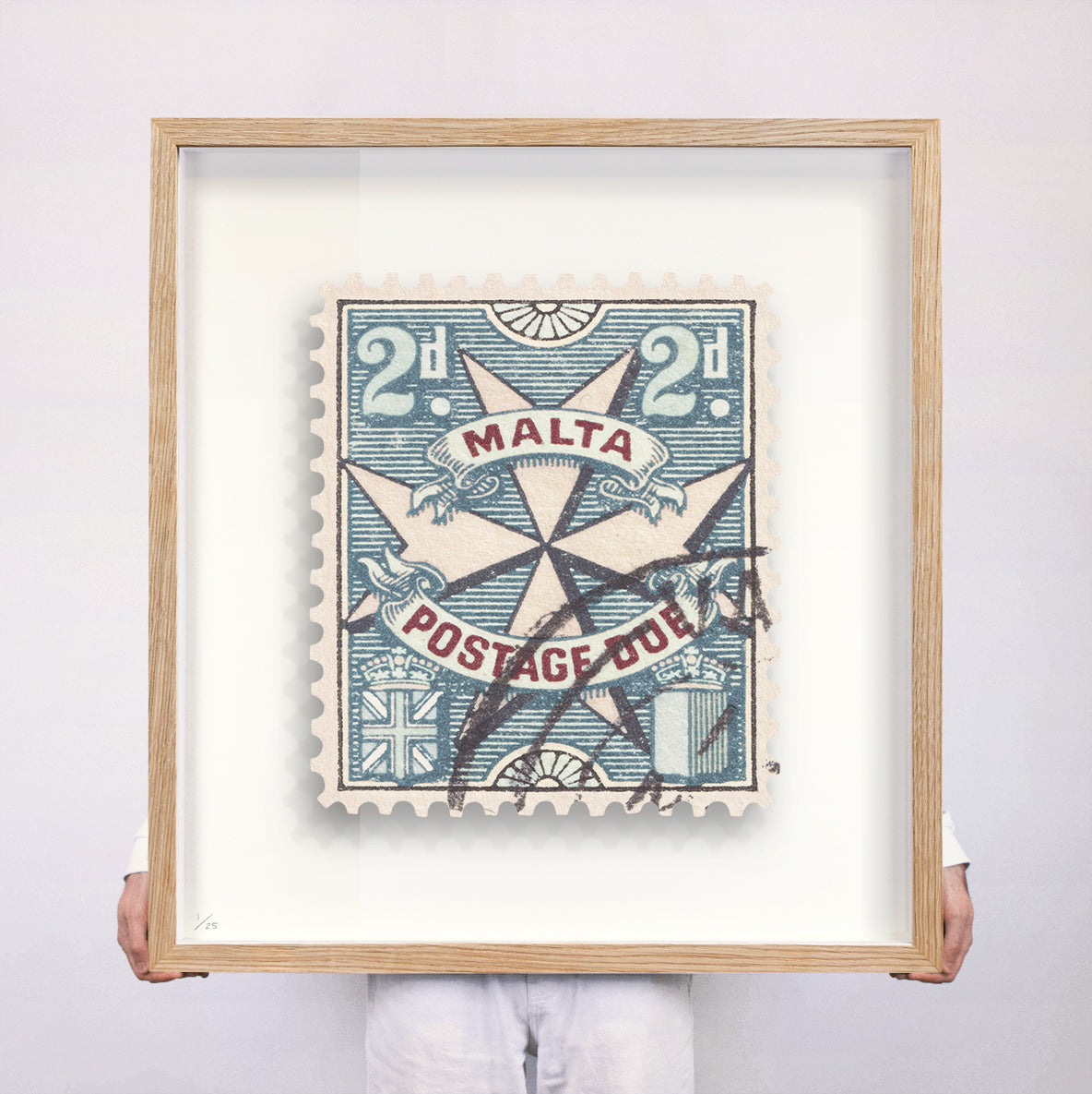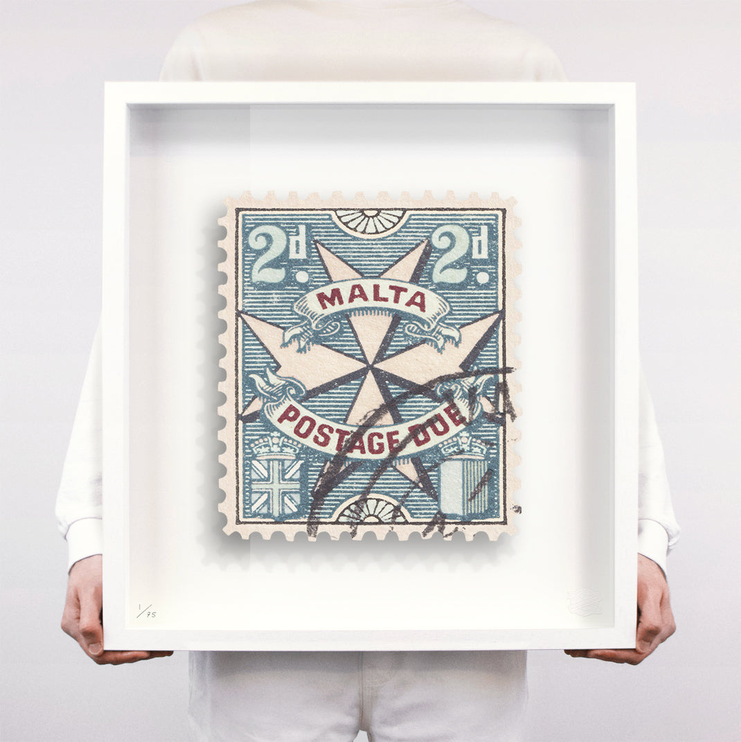 Each artwork by Guy Gee has been digitally reimagined from an original postage stamp. Printed on archival mount board, the artwork is then float mounted and editioned. Finally the stamp is housed in one of the studio’s bespoke made box frames by the team.