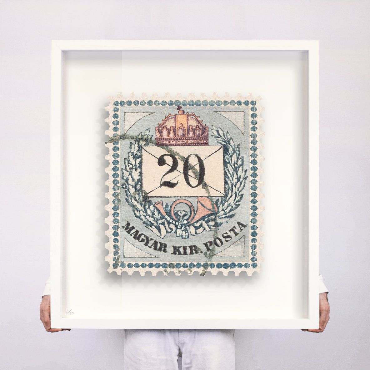 Each artwork by Guy Gee has been digitally reimagined from an original postage stamp. Printed on archival mount board, the artwork is then float mounted and editioned. Finally the stamp is housed in one of the studio’s bespoke made box frames by the team.